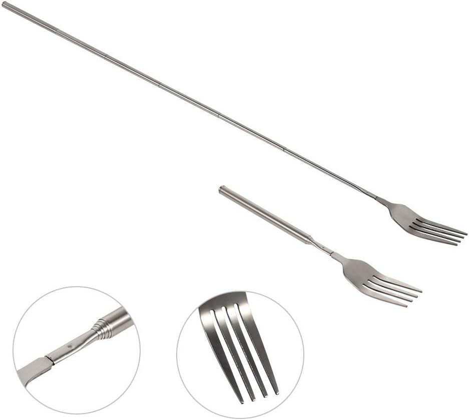 • 【Регулируема】 Телескопичната вилица може да се регулира от 22,1 ~ 64,6 см / 8,7 ~ 25,4 инча, а разтегателният ѝ дизайн може да отговори на различните ви нужди. Можете да използвате дългата вилица за торти или всичко друго, от което се нуждаете в ежедневието.