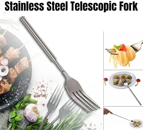 Телескопична вилица Tyenaza, 8,7 ~ 25,4 инча разтегателна вилица с дълга дръжка, дълга прибираща се вилица от неръждаема стомана за печене, грил, вечеря, плодове, десерт