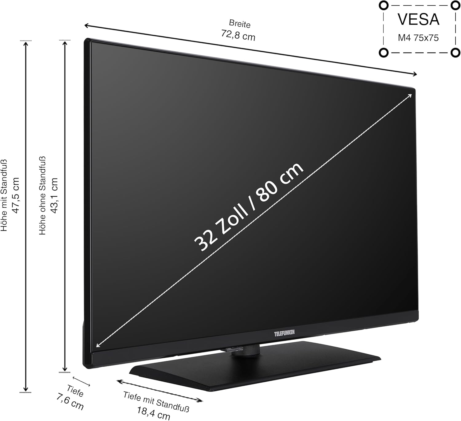 Телевизор TELEFUNKEN XF32N750M, 32-инчов Full HD LED телевизор с диагонал на екрана 80 см и вграден троен тунер, черен