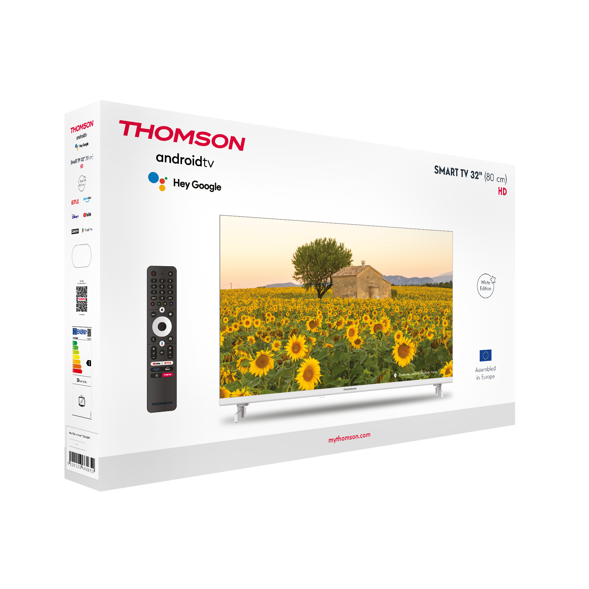 Телевизор Thomson 32HA2S13W, 32" (80 см) HD Ready Direct LED, Тунер DVB-C/S2/T2, Android Смарт ТВ, Гласов контрол, Бял