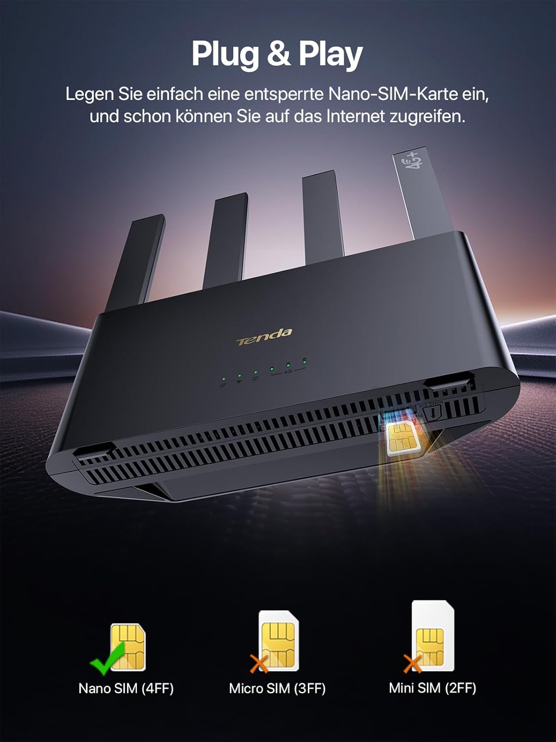 • [Plug & Play] Не се изисква конфигурация - съвместим с множество SIM карти от различни производители. Просто поставете nano SIM карта и се насладете на кабелен или безжичен интернет веднага.