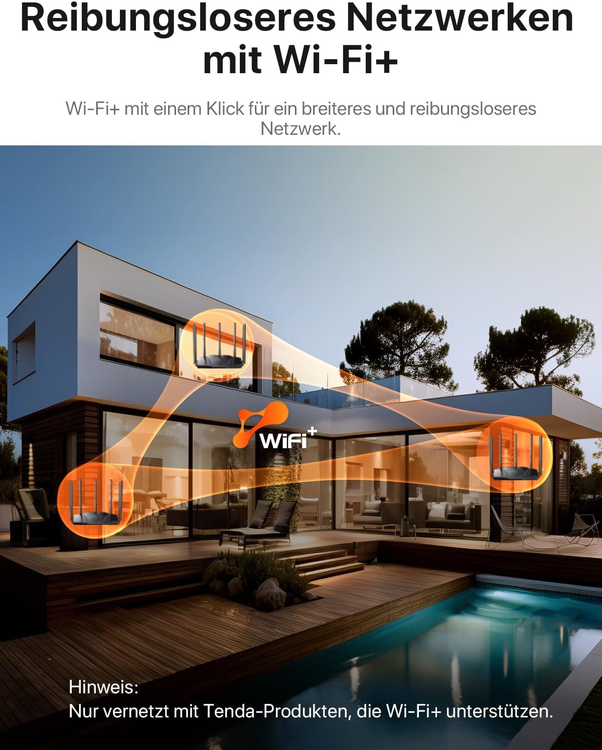 • 【Интелигентно управление чрез приложението Tenda WiFi】Tenda APP, управлявайте домашната си мрежа и устройства по всяко време; анти-плъзгане, оптимизация на каналите, регулиране на силата на каналите, откриване на сигурност, управление на облака, родителски контрол и редица други функции, конфигурирани с едно щракване чрез приложението, по всяко време и навсякъде, лесни за игра.