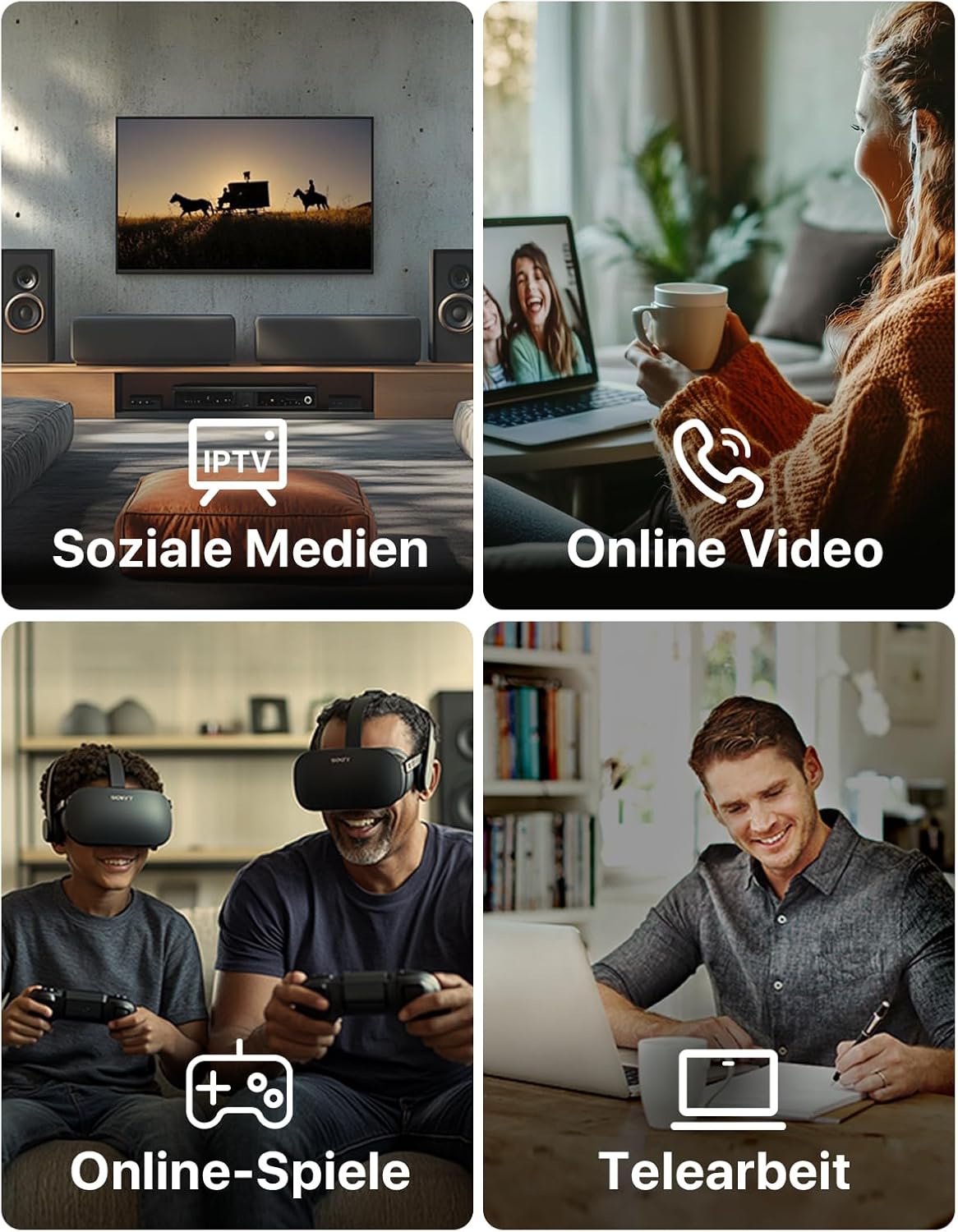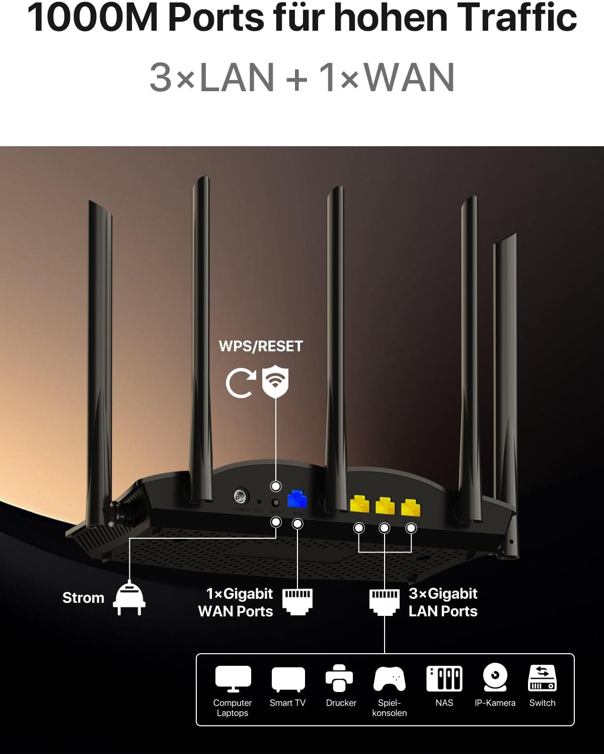 • 【Висока скорост】 Технологията WiFi Router 6 от най-ново поколение, теоретичната скорост може да достигне до 3000 Mbps (2402 Mbps в 5 GHz честотна лента и 574 Mbps в 2,4 GHz честотна лента). Насладете се на плавно 4K видео стрийминг и непрекъснати онлайн игри.