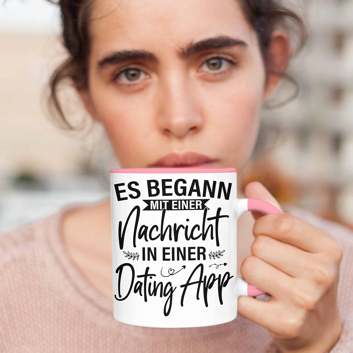 Тенденция - Всичко започна със съобщение в приложение за запознанства. Подарък за чаша за Свети Валентин за него, за нея, за двойки. Подаръци за годишнина от гадже, за приятелка, за приятелка (розов).