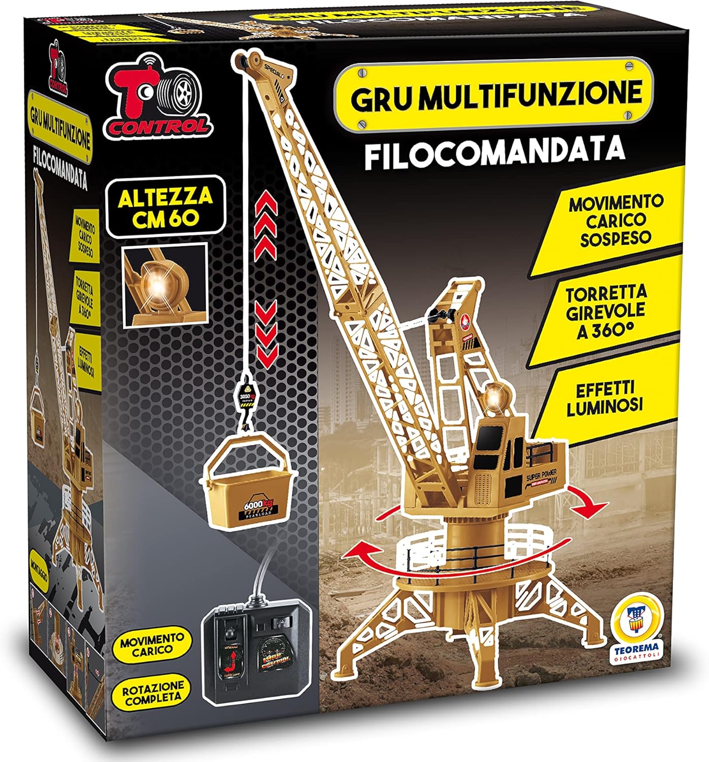Become the head of the construction site with the wire-controlled multifunctional crane from Teorema Giocattoli This impressive 60 cm high toy crane has been developed for the little builders and engineers of tomorrow and transforms any room into an active and dynamic construction site and provides hours of constructive and intelligent fun. Take full control of each operation thanks to the convenient cable control. With its 4 functions, the remote control allows every movement accurately: rotate the cab 360 degrees to monitor the entire job site, and move the hook up and down to attach, lift and store materials exactly where you need them. The easy control also makes this remote control crane perfect for younger children who soon learn to maneuver it like a pro. Realism is at the heart of the game. The full rotation of the tower and the signal light activated during movement make the experience incredibly immersive. This children's play crane is the perfect central element to create stories and adventures by interacting with trucks, excavators and other construction site vehicles (not included). Action is at the heart of fun. Use the included hook and cargo basket to lift sand, small building blocks or other toys by transporting them from one place to another on the construction site. This feature is not only fun, but also helps children understand the principles of cause and effect and develop fine motor skills and problem-solving skills by planning their complex construction work. Sturdy, sturdy and built from high-quality materials to withstand even the most intense working days, this crane is an educational game that stimulates imagination, logic and coordination. It combines fun and learning and becomes the heart of any work vehicle collection and a powerful ally for growth. Give your child the thrill of building great things with the Teorema crane!