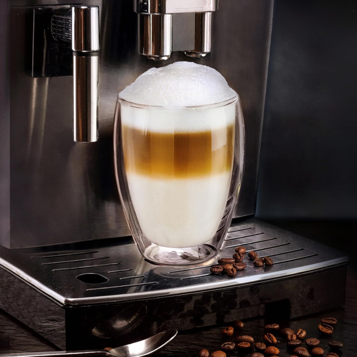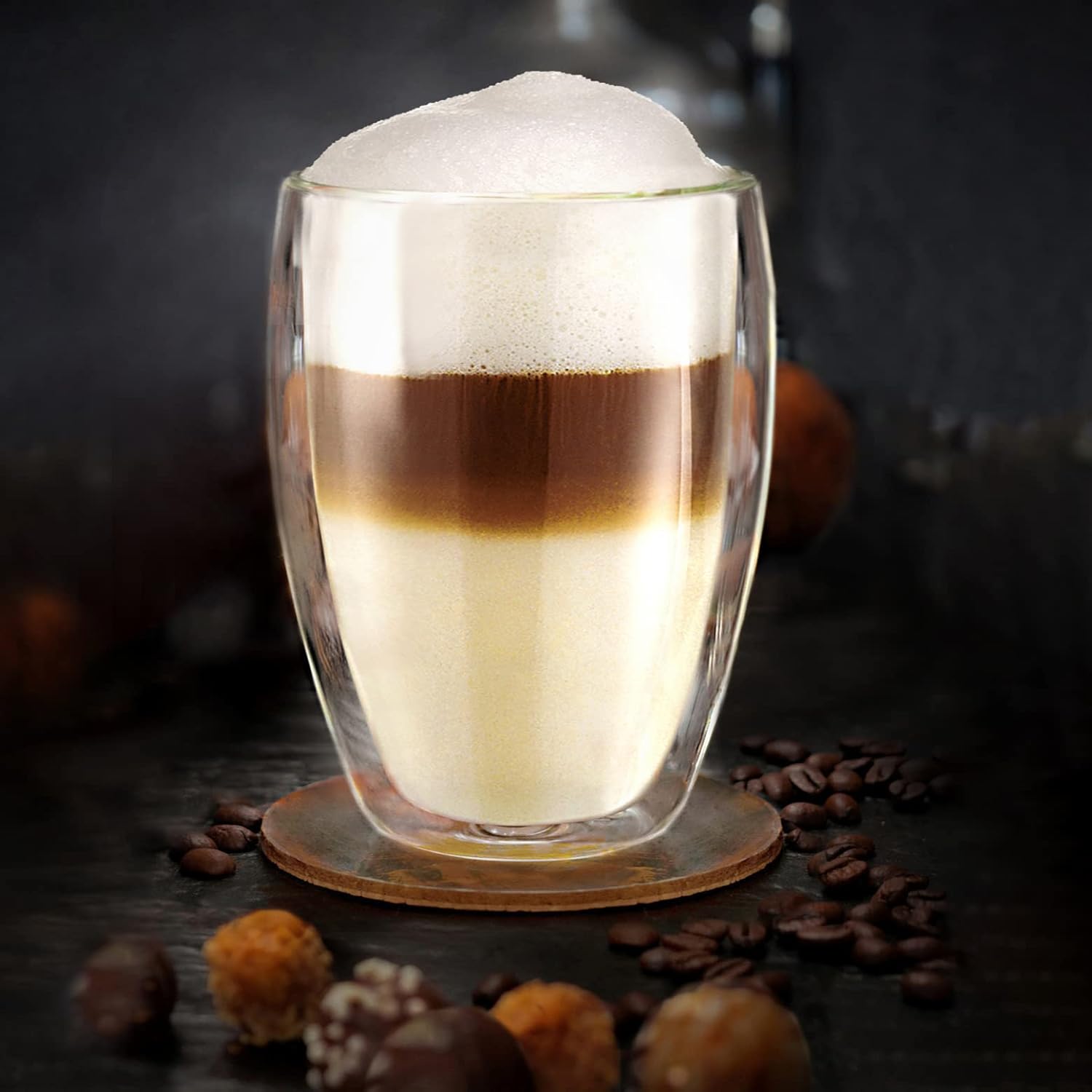 • ОФЕРТА: 2 x 400 мл чаши за капучино или лате макиато с двойни стени, изработени от висококачествено боросиликатно стъкло, което запазва топлите напитки топли, а студените напитки студени за по-дълго време. Двустенният дизайн осигурява и постоянно равномерна температура от външната страна на чашата, така че изгарянето на пръстите ви е нещо от миналото.