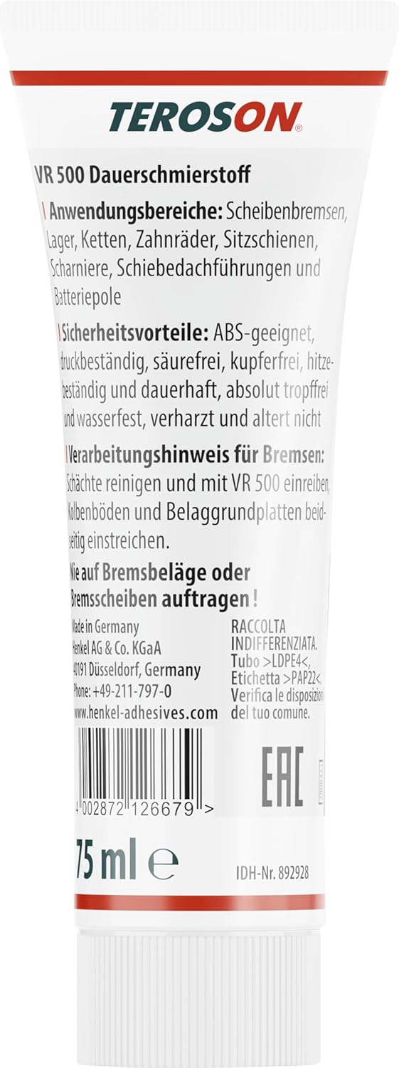 Teroson VR 500 - Надеждна смазка срещу скърцащи спирачки.