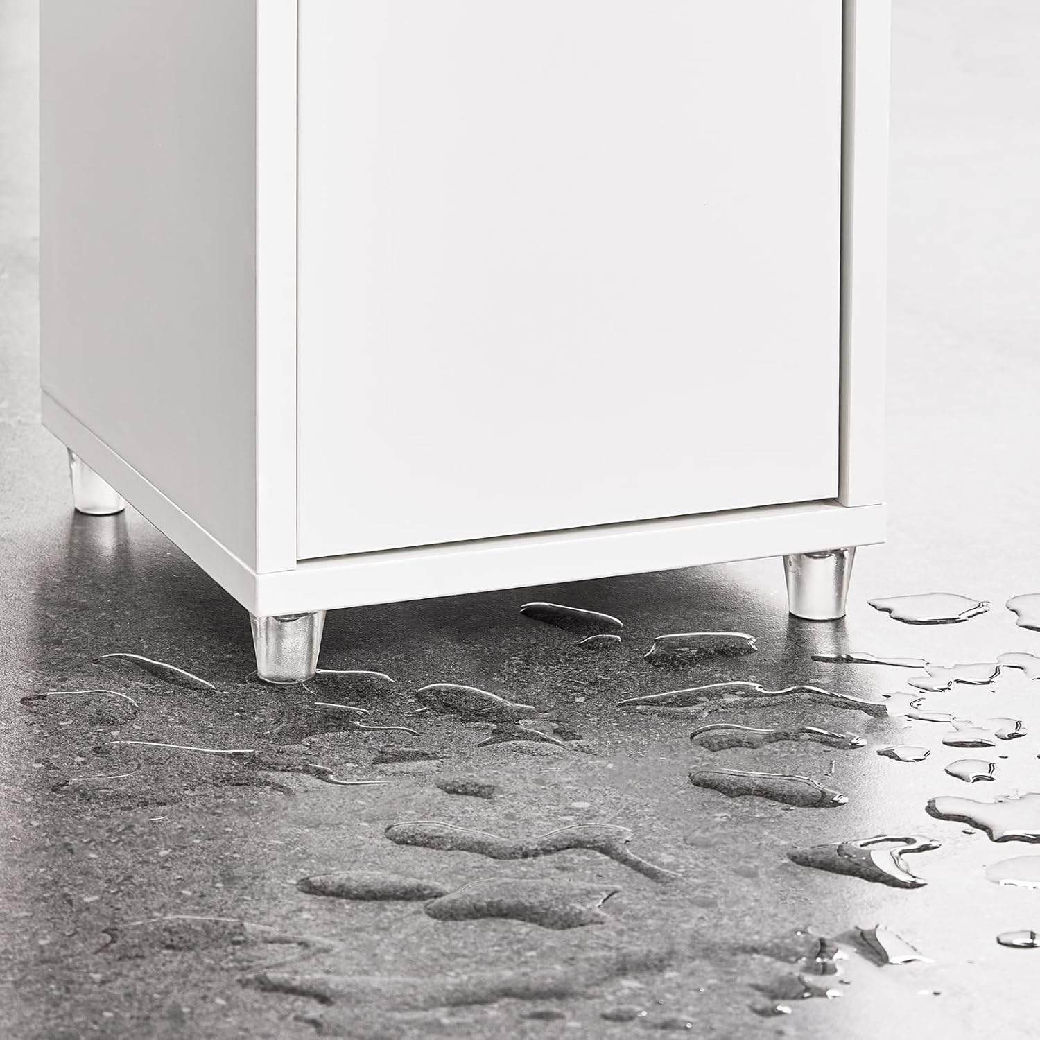 • [Водоустойчив първокласен материал]: Шкафът за баня е изработен от издръжлив MDF E1 с висококачествено боядисване - в комбинация с водоустойчиви подложки за крака, той осигурява оптимална защита срещу влага в банята.