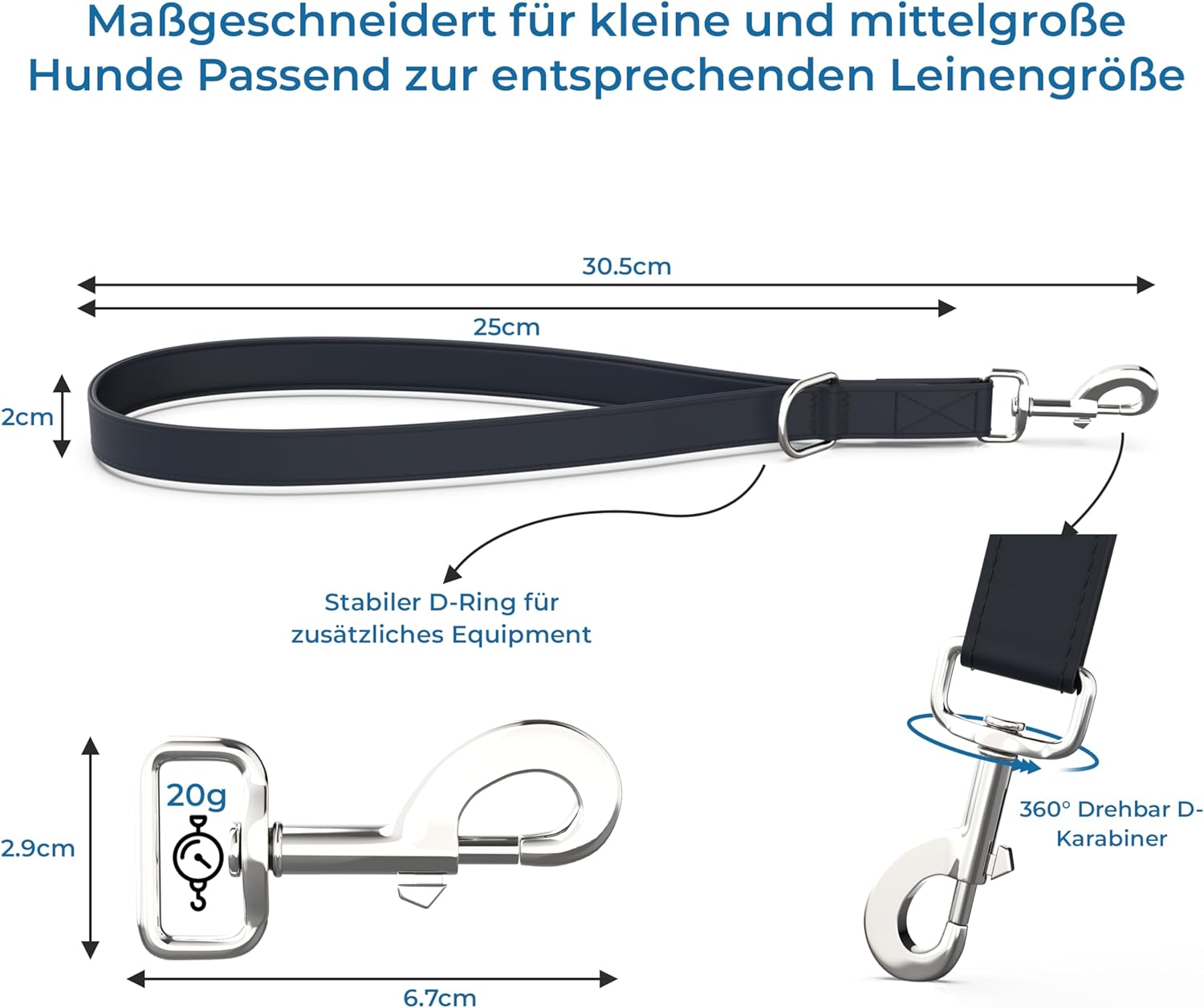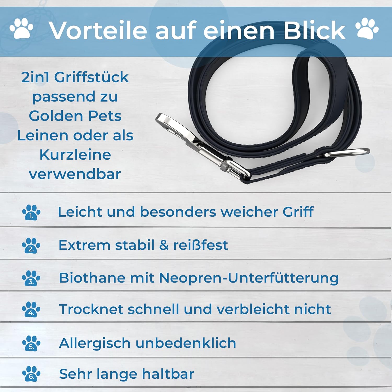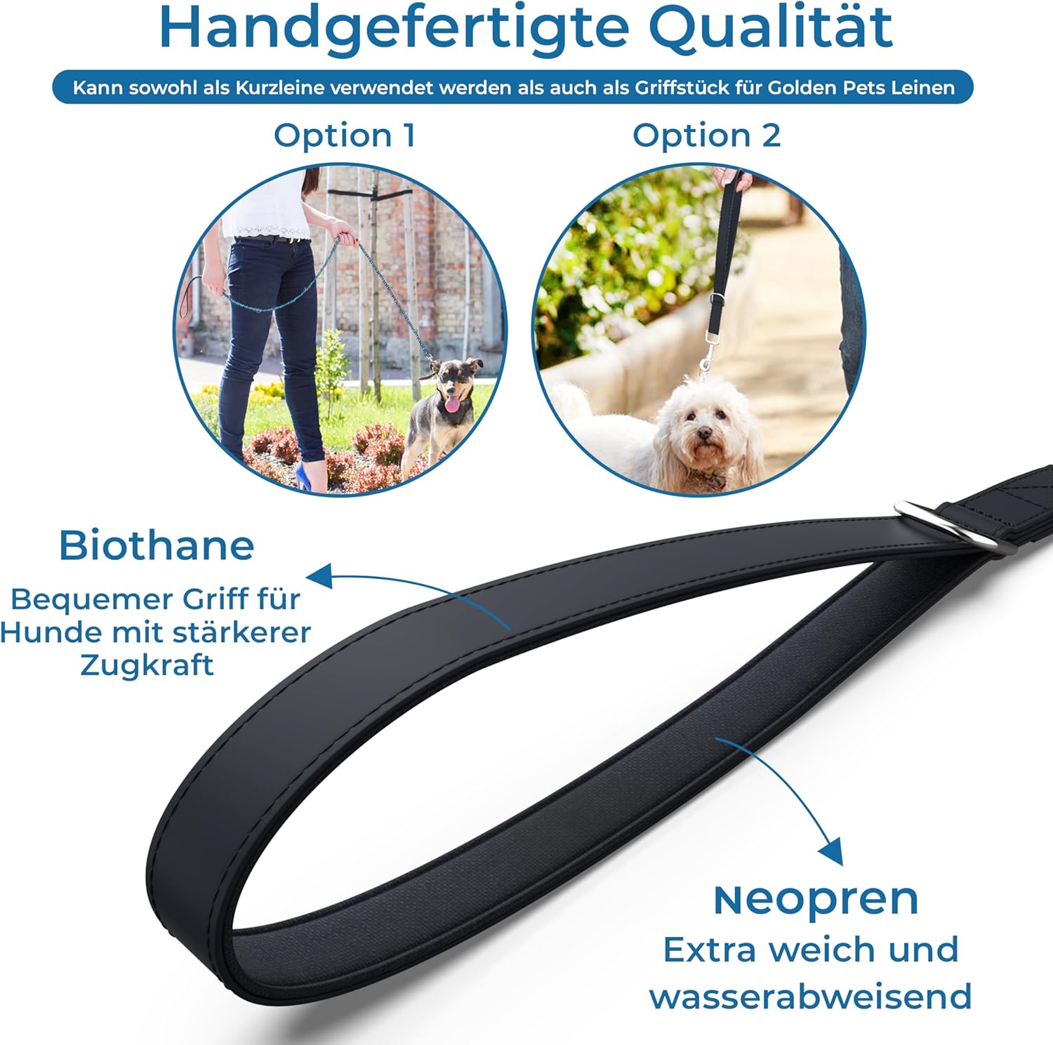 Тестова бележка: Много добър – Къс повод за куче 31 см | Устойчив на атмосферни влияния, изработен от биотан и неопренова подложка | Дръжка за повод за кучета Golden Pets | Къс повод за кучета за малки - големи кучета