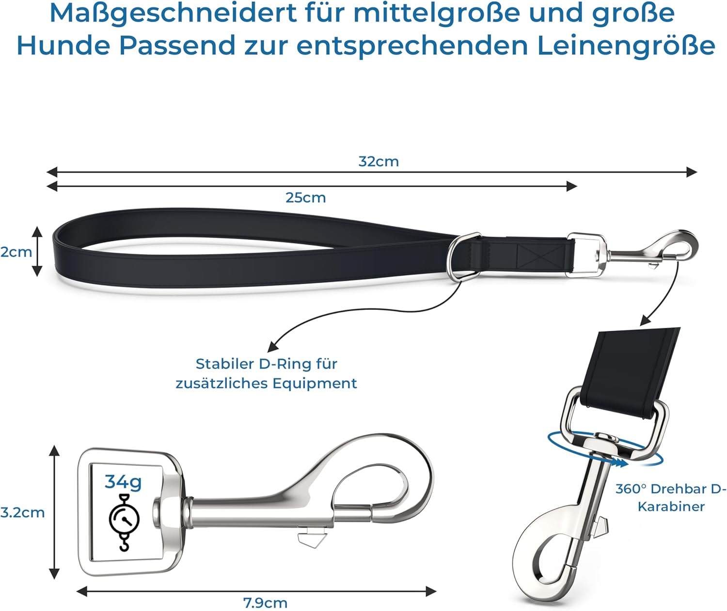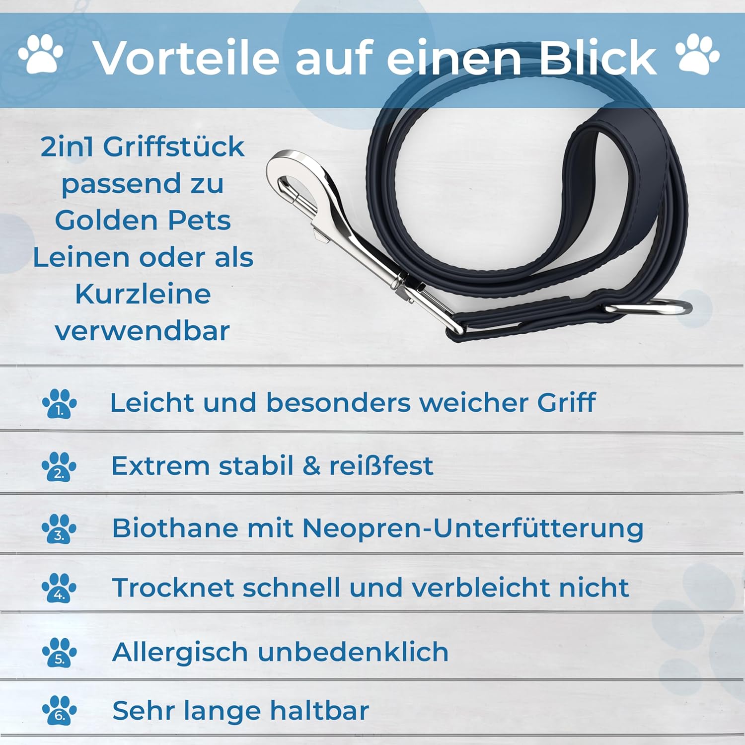 Тестова бележка: Много добър – Къс повод за куче 32 см | Устойчив на атмосферни влияния, изработен от биотан и неопренова подложка | Дръжка за повод за кучета Golden Pets | Къс повод за кучета за малки - големи кучета