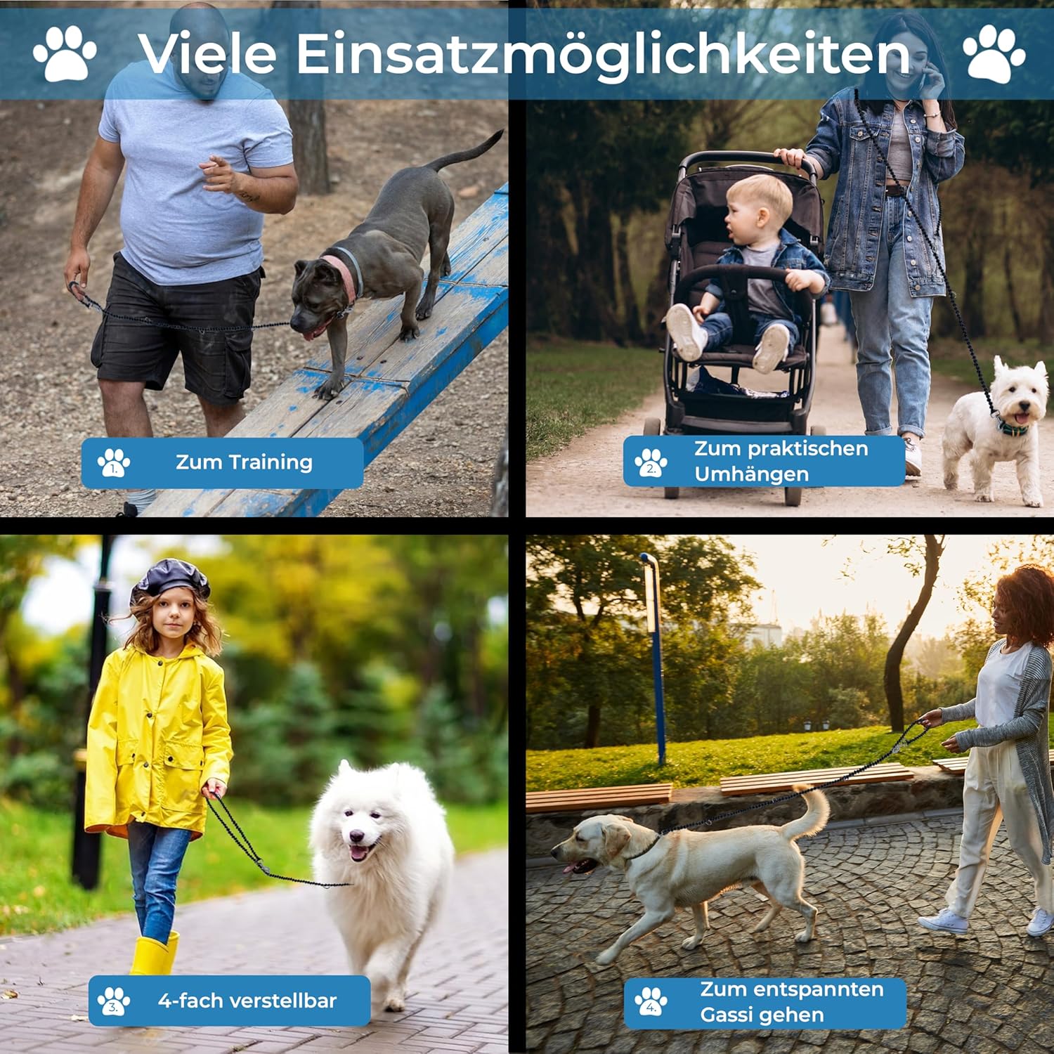 Тестова бележка: много добър светлоотразителен повод за куче, 3 м, регулируем, устойчив на атмосферни влияния и разкъсване до 250 кг, повод от паракорд, повод за през рамо, за малки и големи кучета