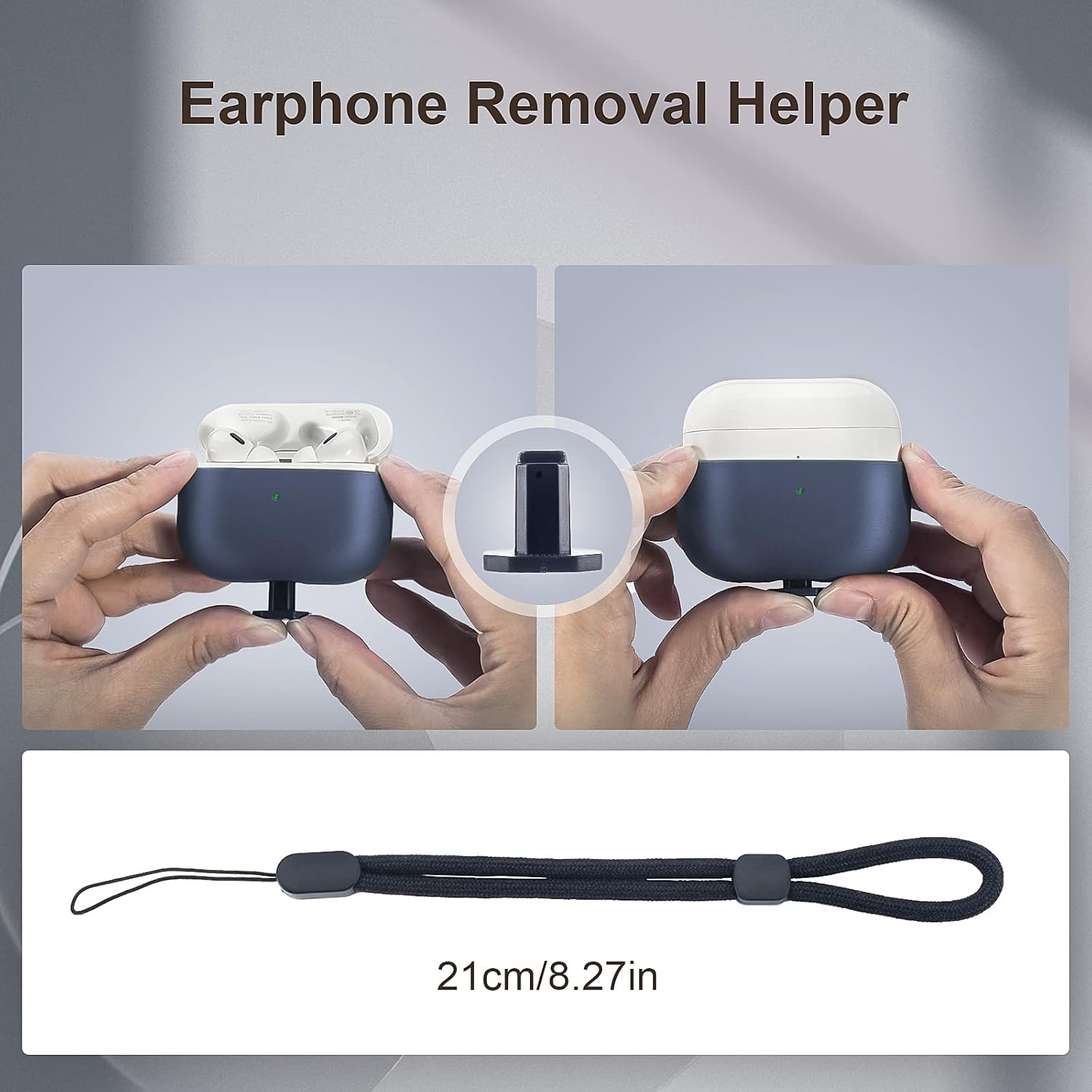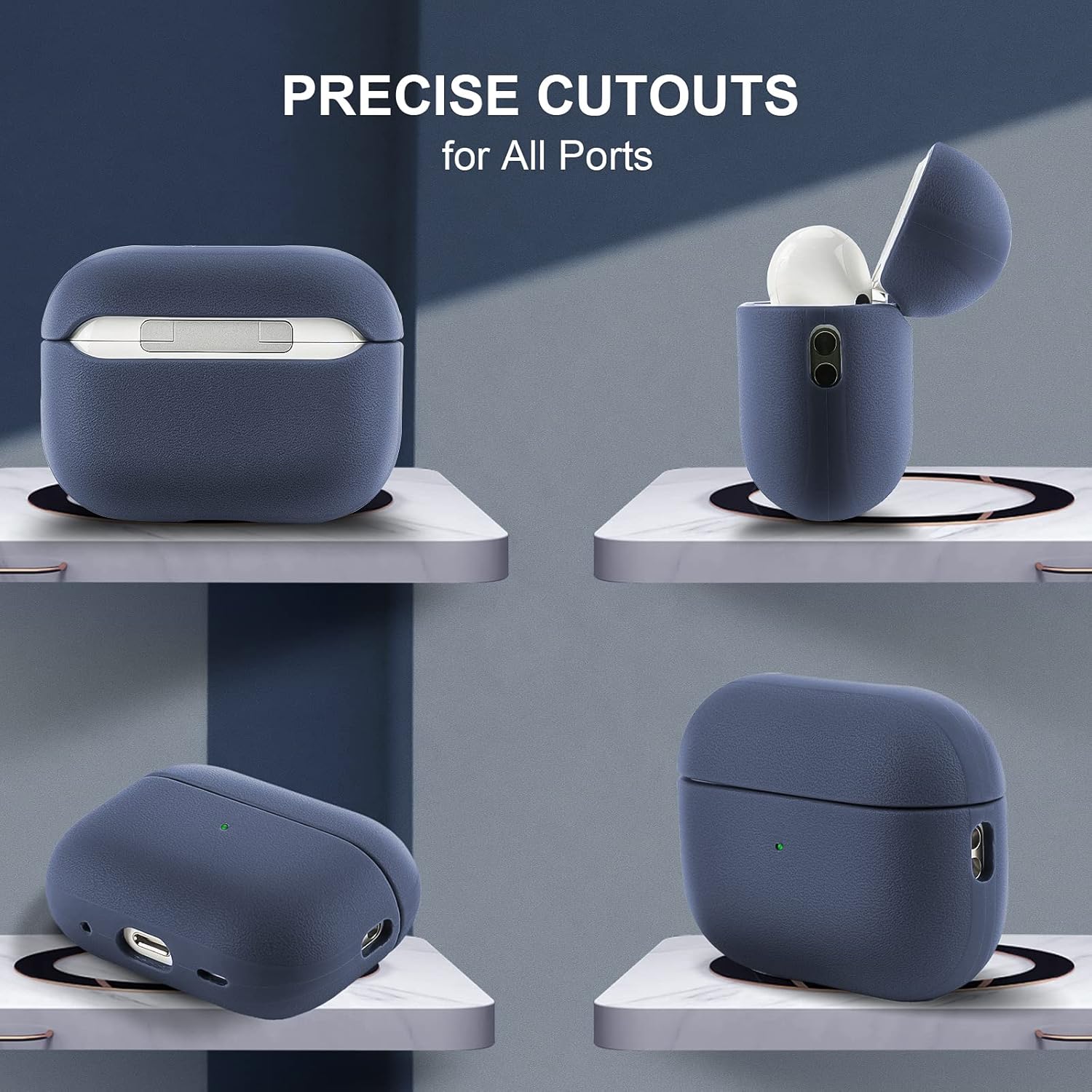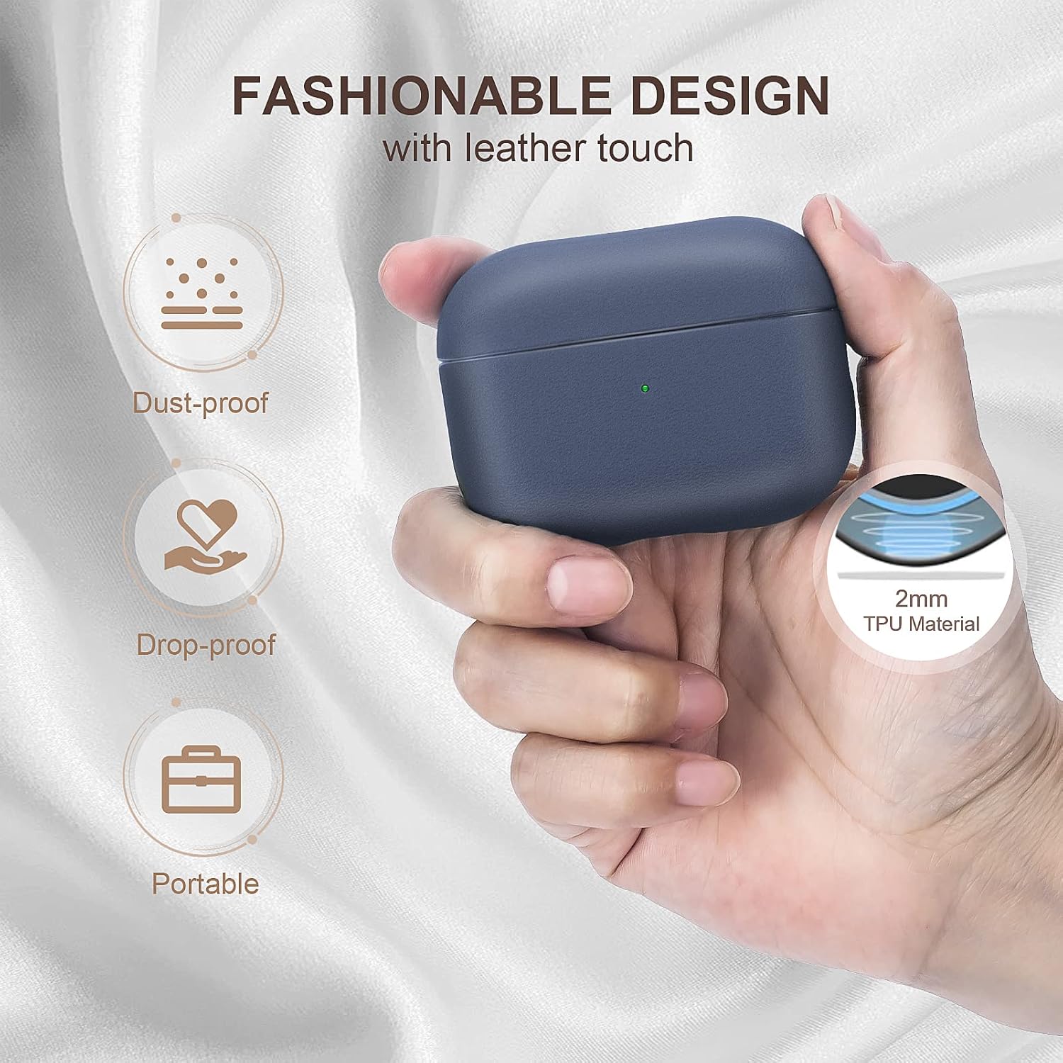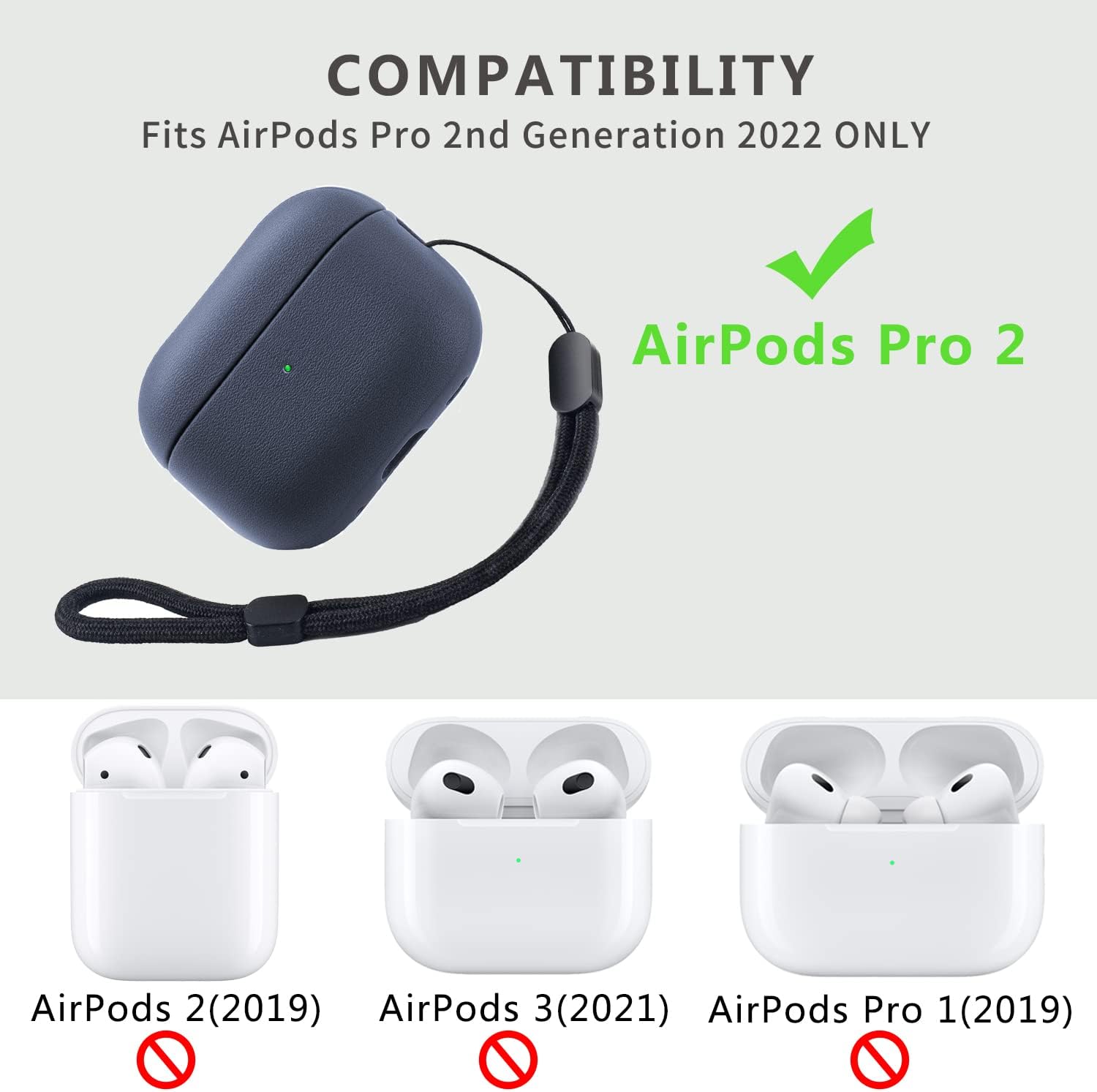 Teyomi TPU калъф за AirPods Pro 2-ро поколение, защитен калъф за Apple Airpods Pro 2 с каишка за ръка, кожен калъф с тъч дизайн за Airpods Pro 2 (полунощно син)