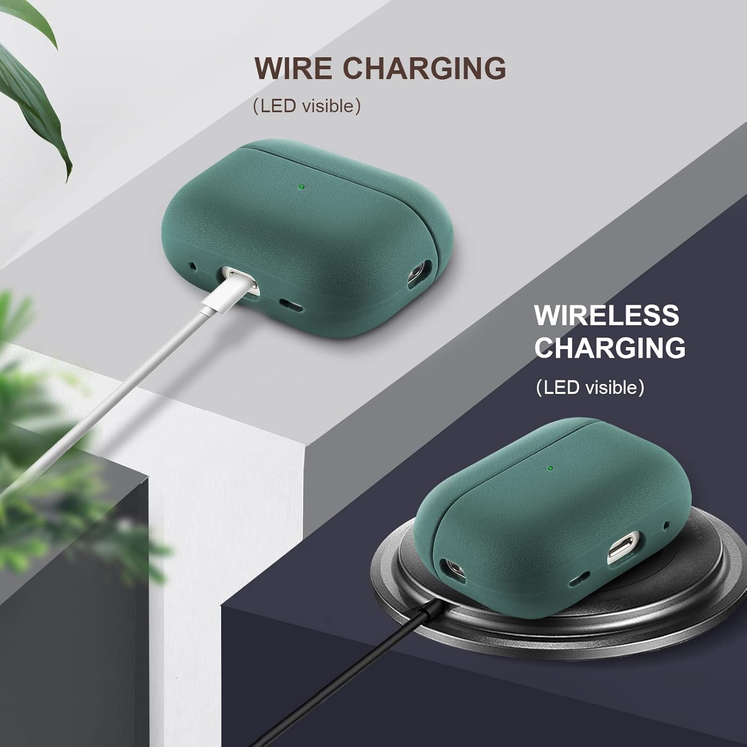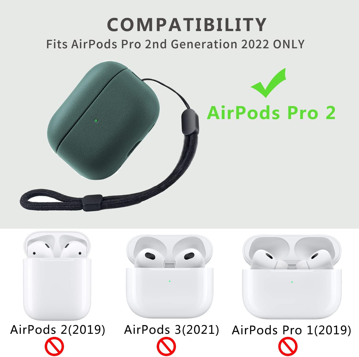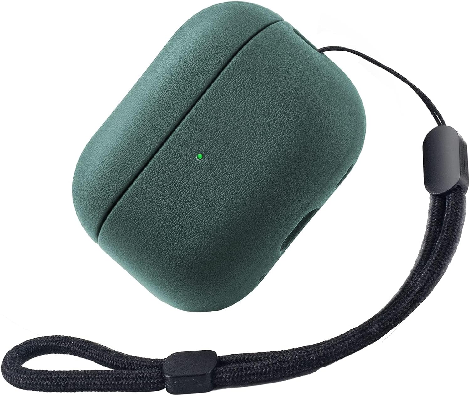 Teyomi TPU калъф за AirPods Pro 2-ро поколение, защитен калъф за Apple Airpods Pro 2 с каишка за ръка, кожен калъф с тъч дизайн за Airpods Pro 2 (тъмнозелен)