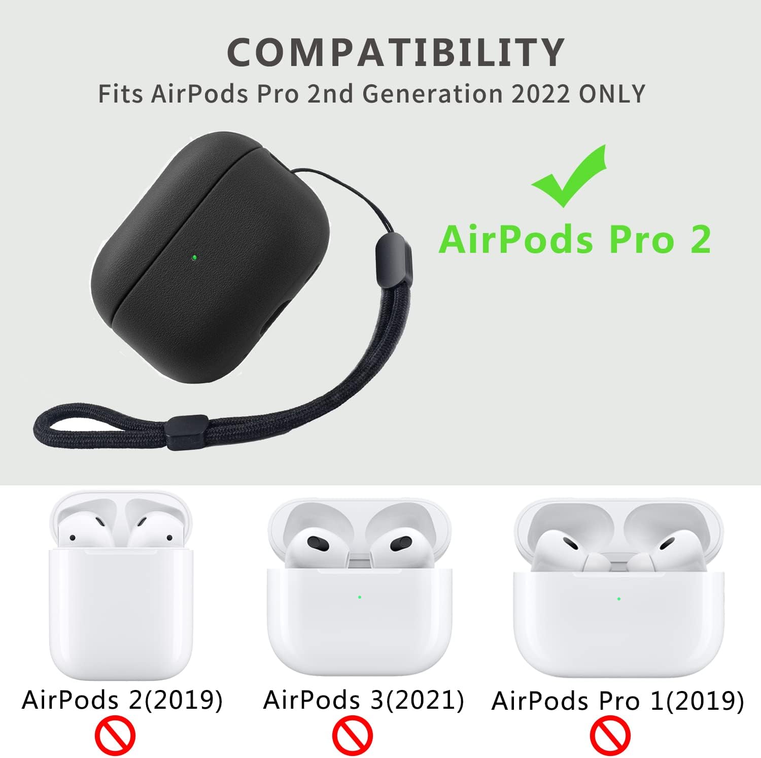 Teyomi TPU калъф за AirPods Pro 2-ро поколение, защитен калъф за Apple Airpods Pro 2 с каишка за ръка, кожен калъф за Airpods Pro 2 с тъч дизайн (черен)