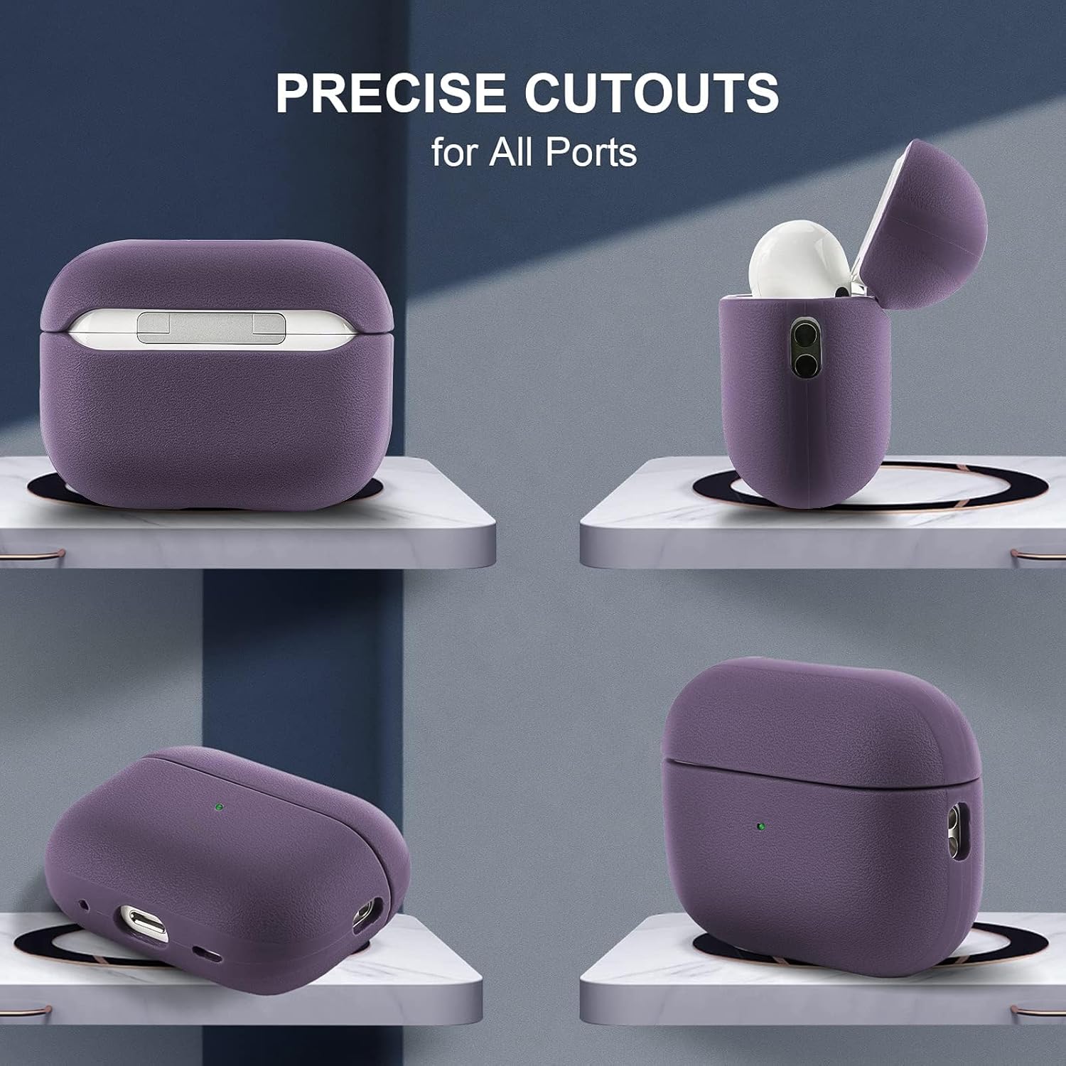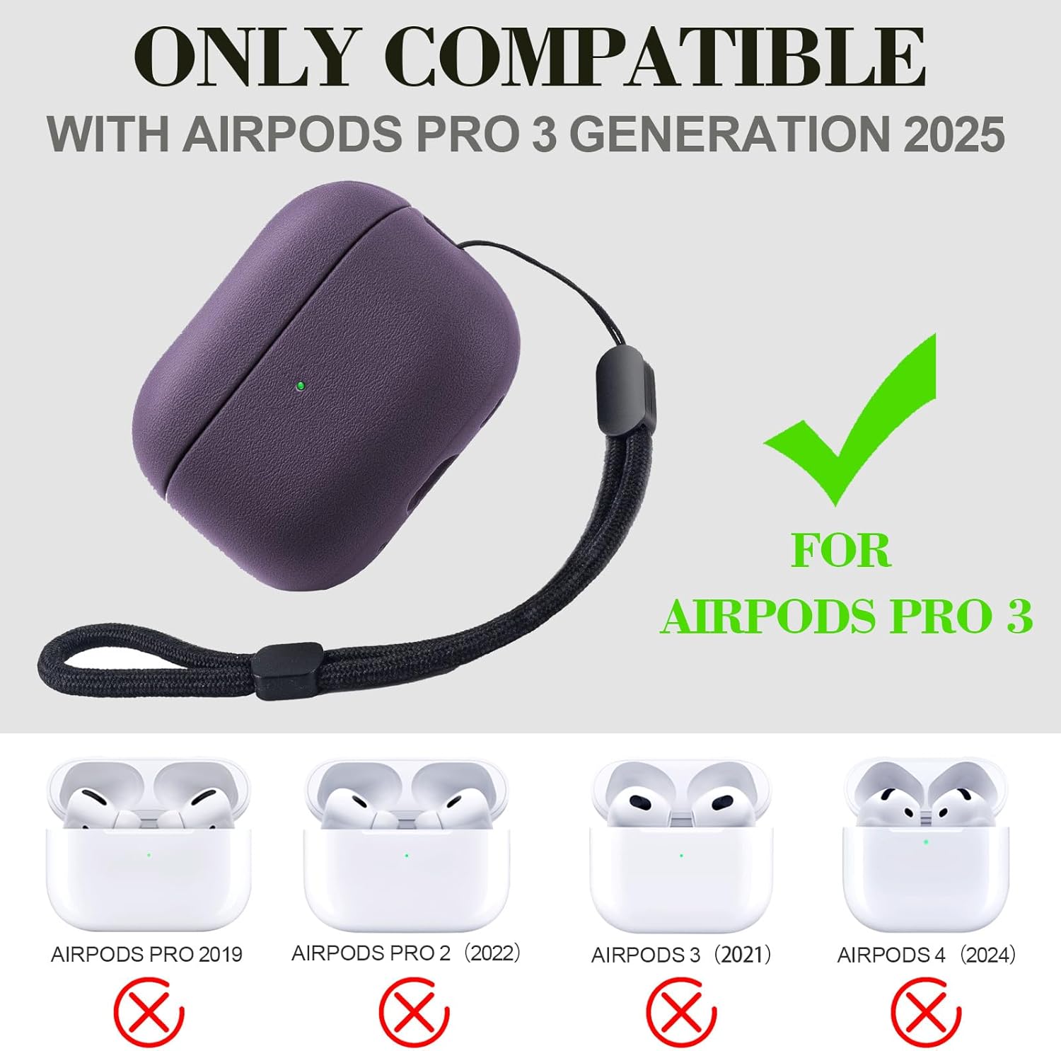 Teyomi TPU калъф за AirPods Pro 3-то поколение, защитен калъф за Apple Airpods Pro 3 с каишка за ръка, кожен калъф с тъч дизайн за Airpods Pro 3 (лилав)