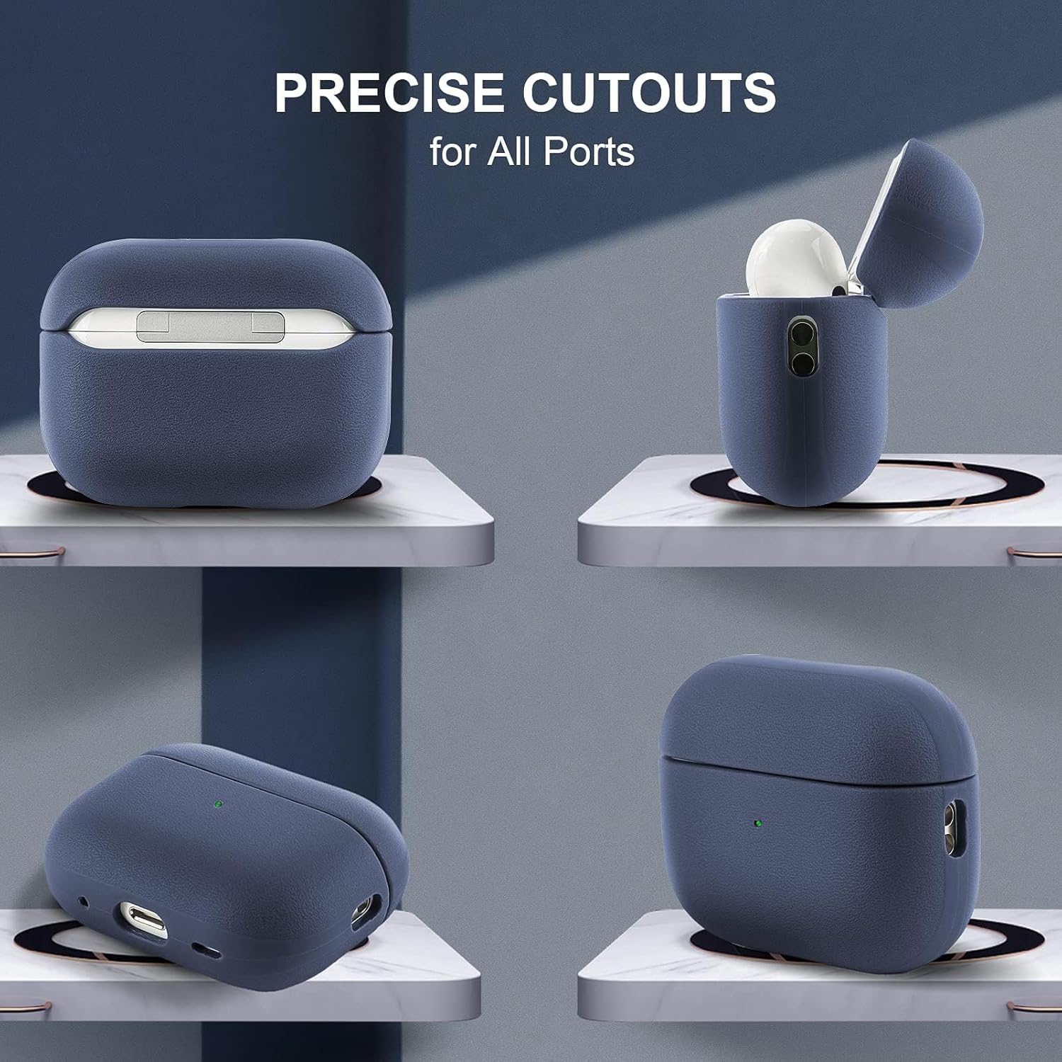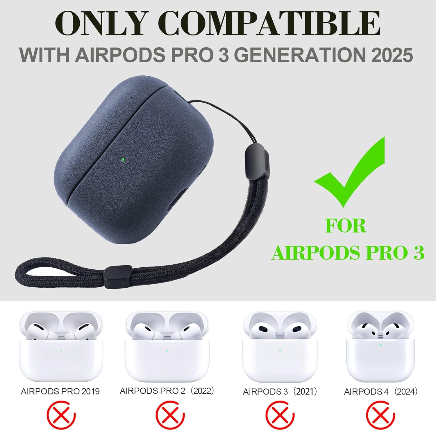 Teyomi TPU калъф за AirPods Pro 3-то поколение, защитен калъф за Apple Airpods Pro 3 с каишка за ръка, кожен калъф с тъч дизайн за Airpods Pro 3 (полунощно син)