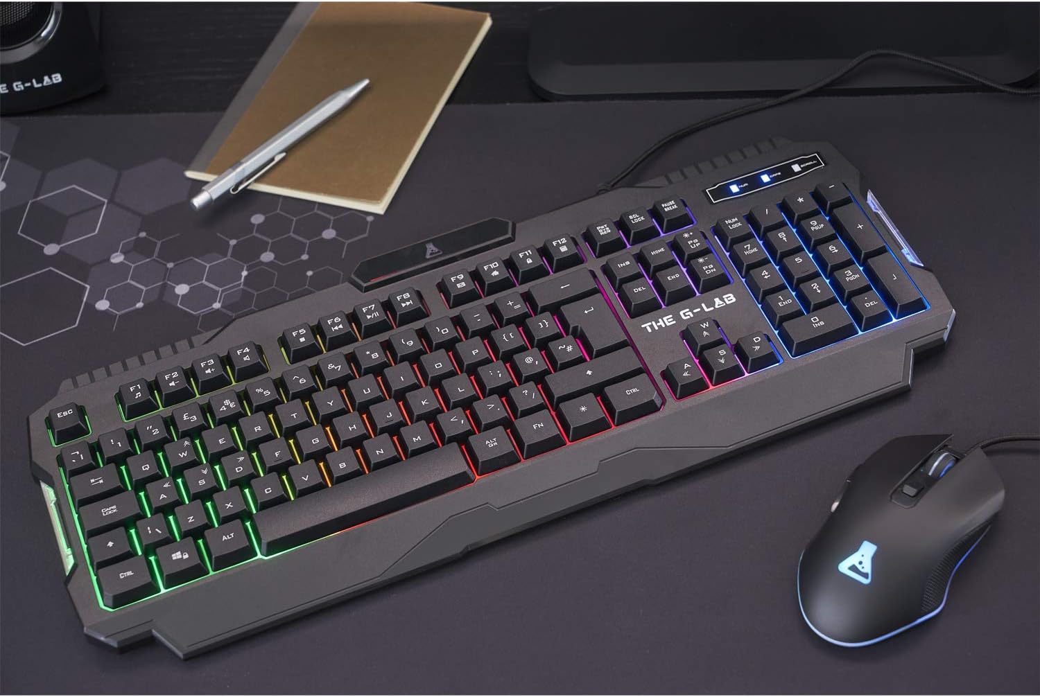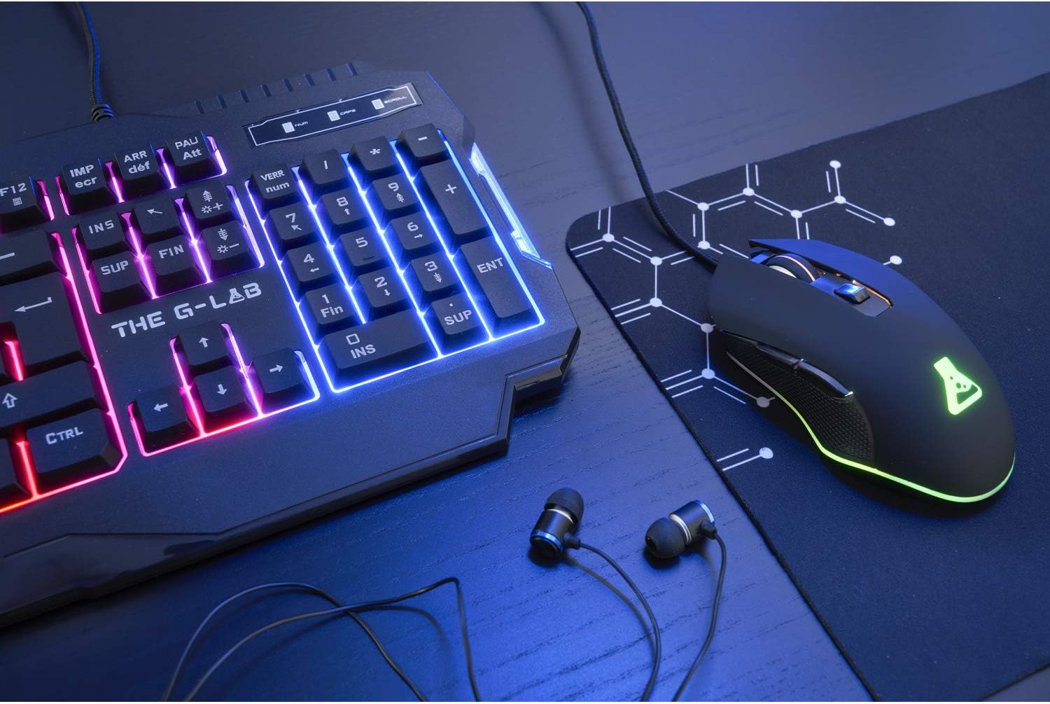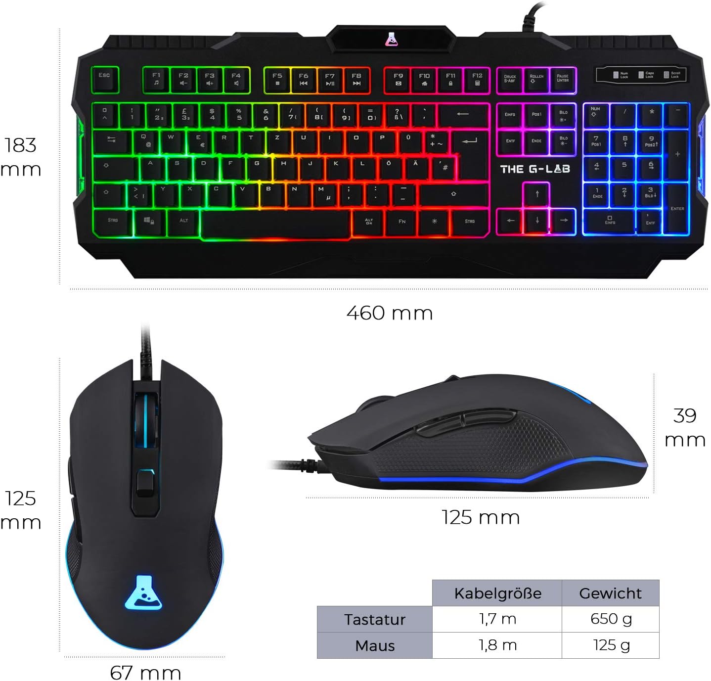 THE G-LAB - Combo Helium - Комплект геймърска клавиатура и мишка, осветена геймърска клавиатура с подложка за мишка, геймърски пакет с QWERTZ оформление и ергономична RGB геймърска мишка, PC PS4 PS5 Xbox One и X