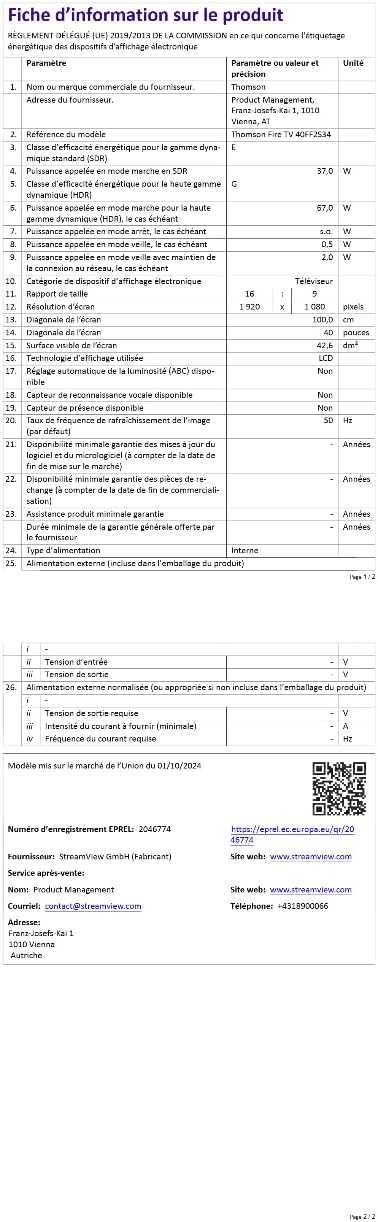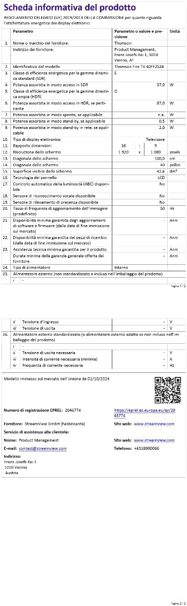 Потопете се в нов свят на домашното забавление с Thomson Fire TV 40" FHD – перфектната комбинация от полезни технологии и лесни за употреба функции. Благодарение на интуитивната операционна система Fire TV, имате лесен достъп до любимите си приложения, игри и стрийминг услуги. Персонализирайте телевизионното си изживяване с множество потребителски профили, които предлагат персонализирани препоръки и настройки. Управлявайте телевизора си с гласови команди Alexa, търсете съдържание и управлявайте устройствата си за интелигентен дом просто с гласа си. Стриймвайте съдържание директно от устройства на Apple чрез AirPlay и следете дома си благодарение на интегрираното табло за управление на интелигентен дом. Тройният тунер позволява приемане на кабелни, сателитни и ефирни сигнали за максимална гъвкавост. Насладете се на ясен звук с Dolby Audio и Dolby Digital Plus, както и на качество на картината в HD резолюция и HDR10. Всичко това с ясната и прецизна картина на FHD телевизор. Свържете устройствата си чрез HDMI и USB портове или използвайте CI+ връзката. Bluetooth дистанционното управление предлага директен достъп до Netflix, Prime Video и Amazon Silk Browser, плюс бутон Alexa за лесно гласово управление. Открийте свят на забавления с Thomson Fire TV.