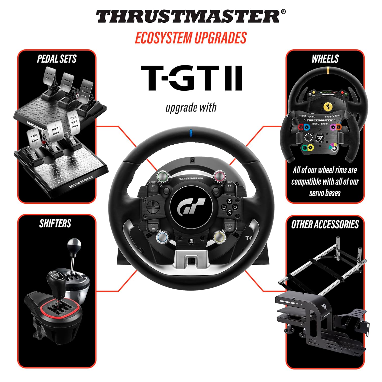 Състезателният волан T-GT II SERVOBASE е истинска сила, състояща се от изключително иновативни технологии. Той е резултат от много задълбочено проучване на всички ключови елементи, необходими за едно ултрареалистично състезателно изживяване. Проектиран като централен елемент от висок клас състезателната екосистема на Thrustmaster за PS5, PS4 и PC, T-GT II SERVO BASE е съвместим с всички сменяеми допълнителни волани на марката. T-GT II SERVOBASE е усъвършенстван и доразвит в повече от 23 000 часа интензивна изследователска и развойна работа, за да издигне невероятната производителност на обратната връзка със силата на своя предшественик (T-GT) на още по-високо ниво. С T-GT II SERVOBASE, геймърите на PlayStation 5, PlayStation 4 и PC могат да се насладят на съвсем ново ниво на прецизност и издръжливост. Официално лицензиран за PlayStation 5 и Gran Turismo, състезателният волан T-GT II SERVOBASE предлага решаващите конкурентни предимства и реалистичното шофиране от GT Sport благодарение на новаторски технологии като T-LIN, T-DCC и особено T-DFB (3D възприятие на ефектите на силова обратна връзка).