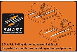 Уникална система от плъзгащи релси осигурява плавно плъзгащо се движение и прецизност. Дълбокото позициониране на плъзгача TWCS предлага уникален комфорт по цялата 80-милиметрова плъзгаща се площ, позволявайки плавен и прецизен контрол. Винтът за опъване позволява на потребителите да регулират съпротивлението на дросела според желанията си.