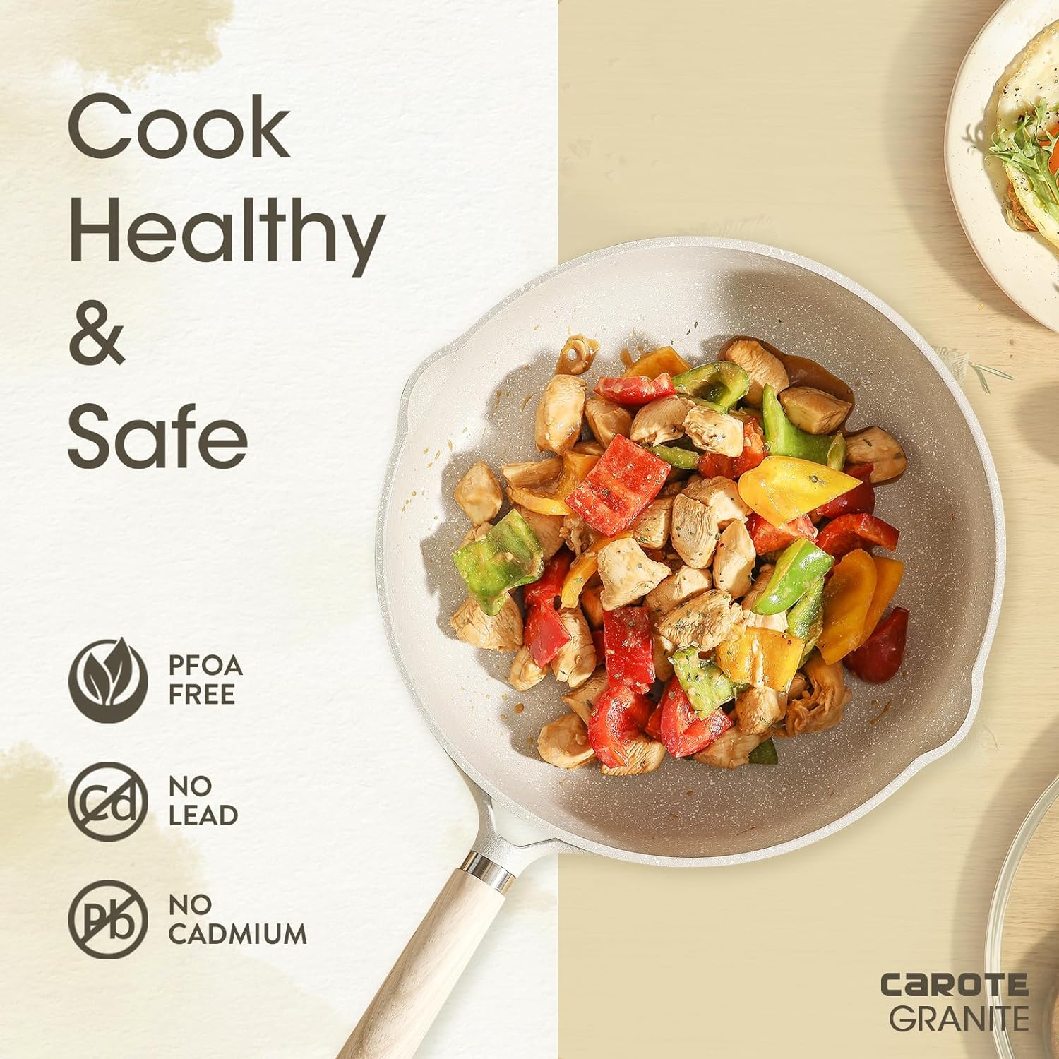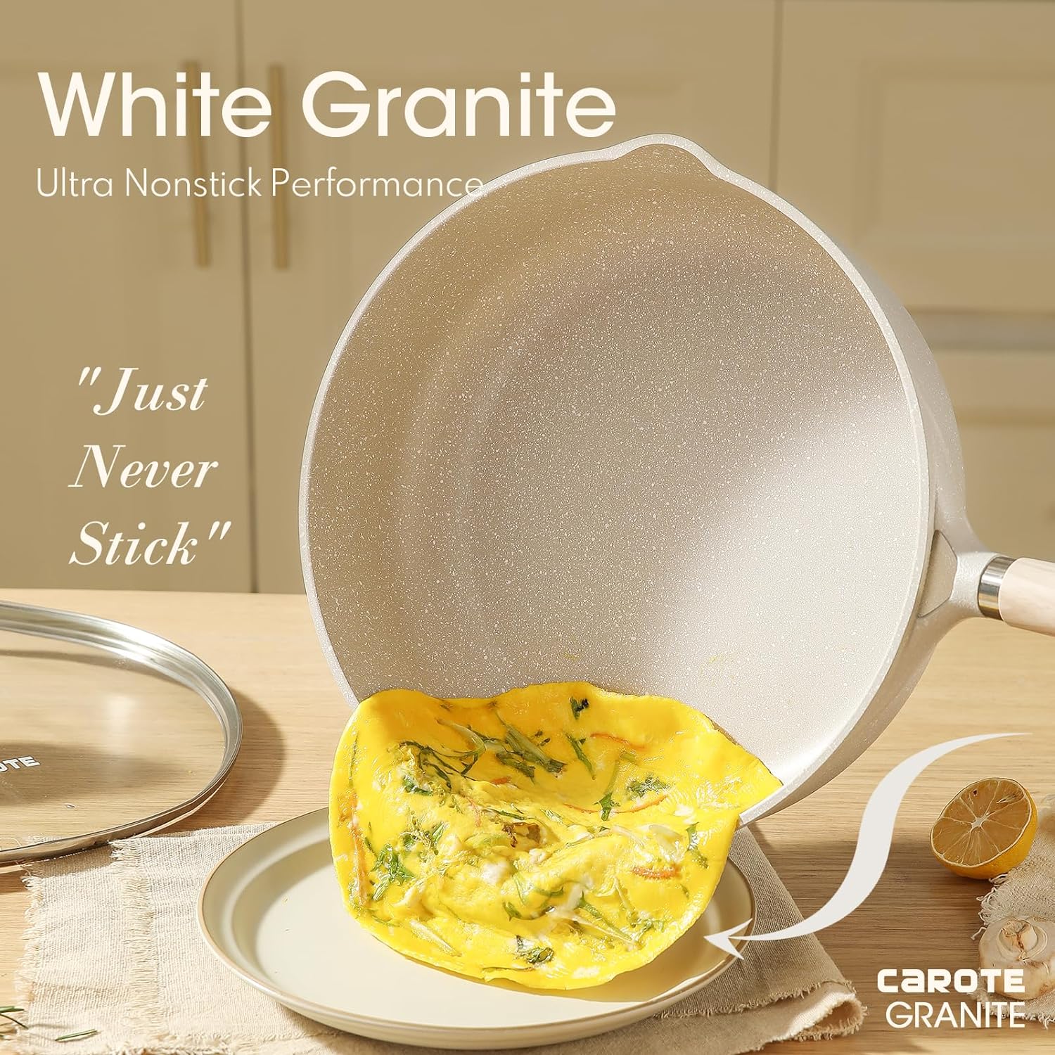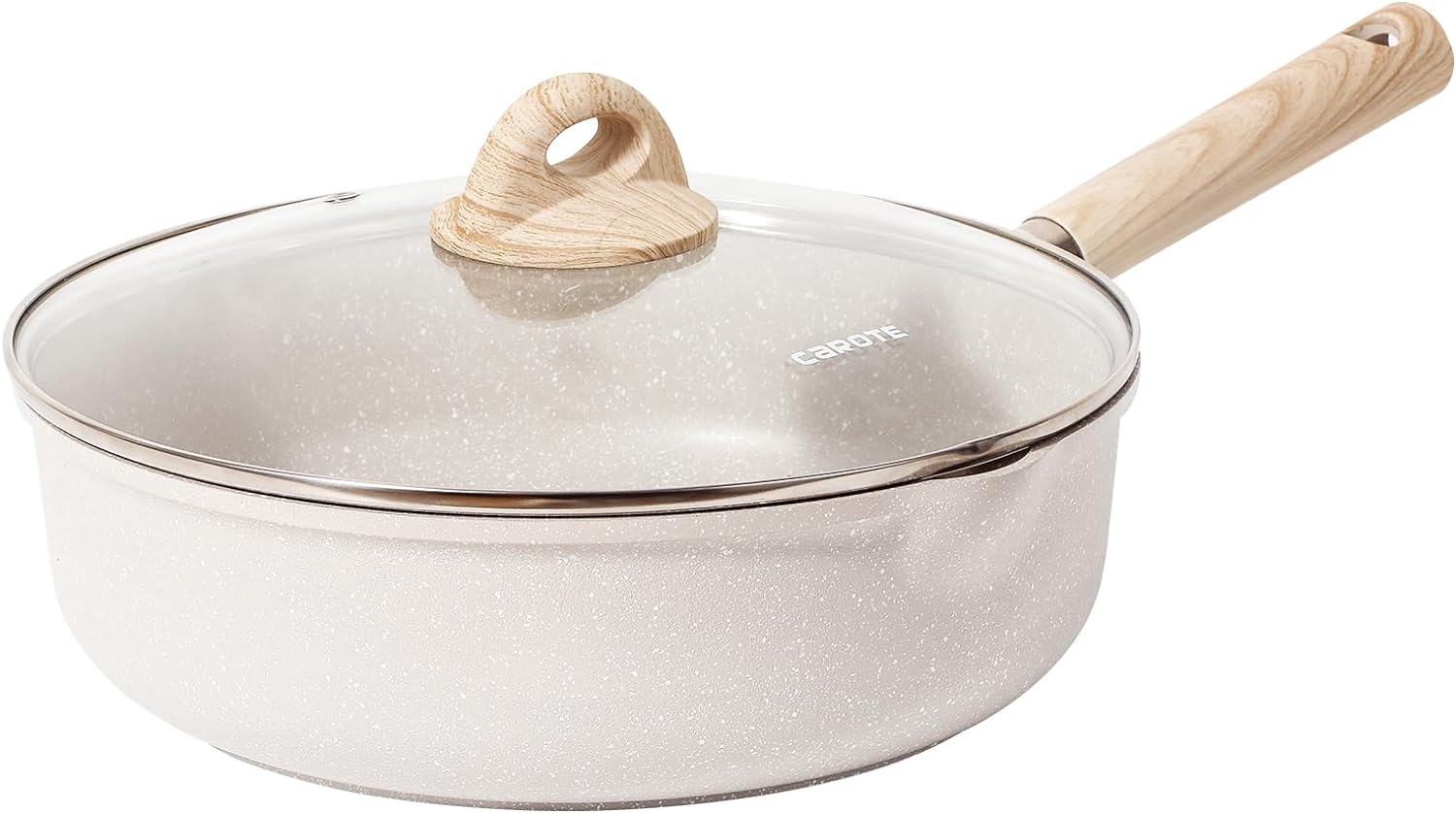• Дизайн с вдлъбнатина Тиганът е по-дълбок от обикновения тиган, така че може да се използва за пържене, грил, печене, задушаване и сотиране, за да заситите стомаха си. Тиганът CAROTE е перфектен партньор за готвене.