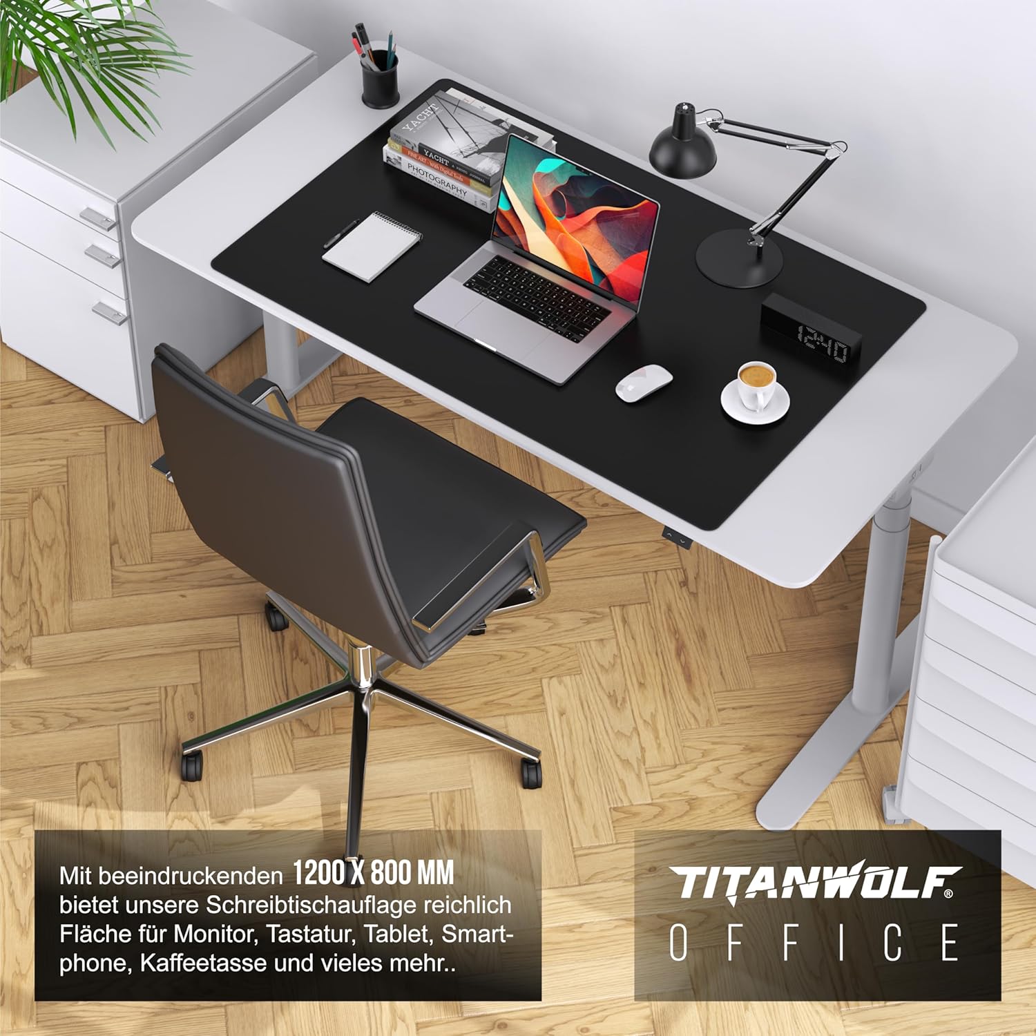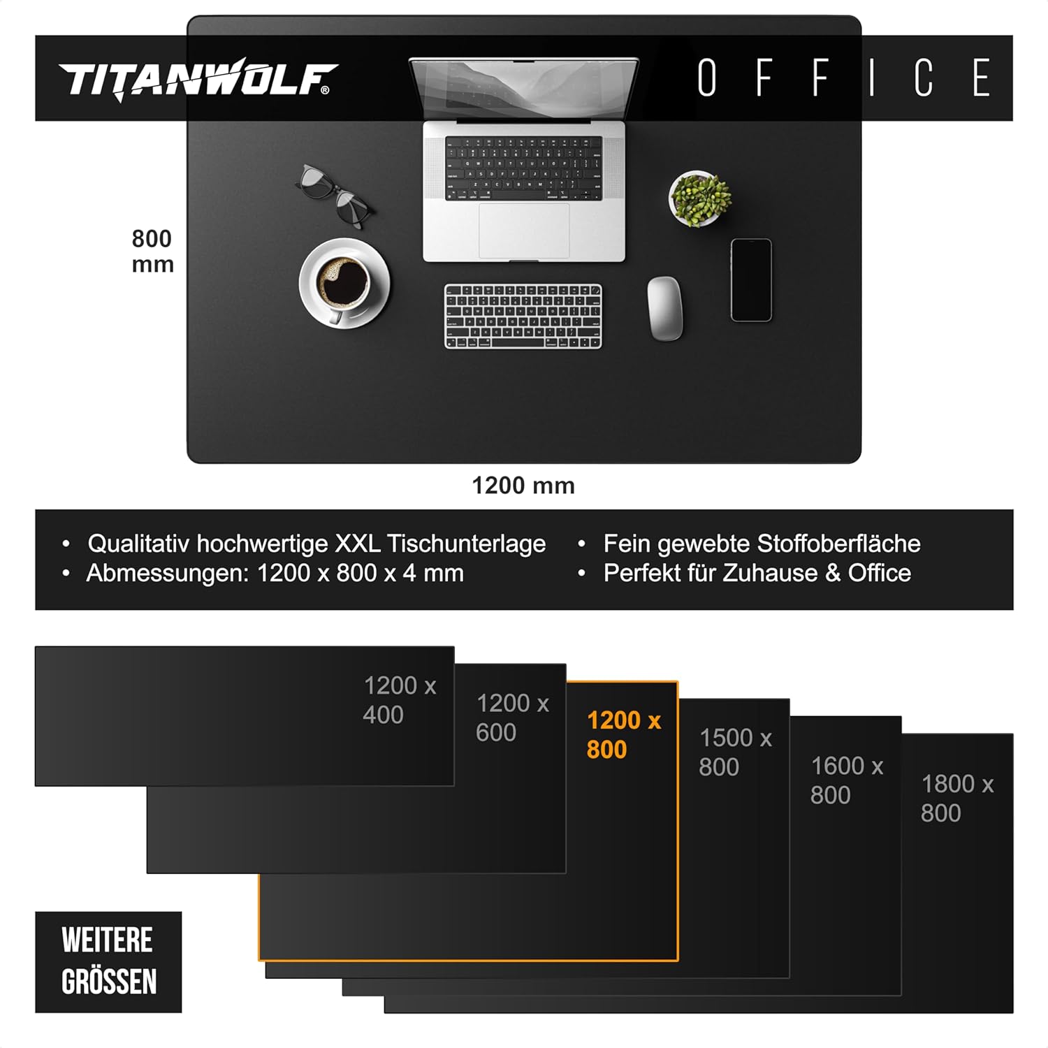 Titanwolf Огромна подложка за мишка 1200 x 800 мм, XXXL Подложка за мишка за дома и офиса, Голяма, Подложка за клавиатура и мишка за бюро 120 x 80 см - Черна
