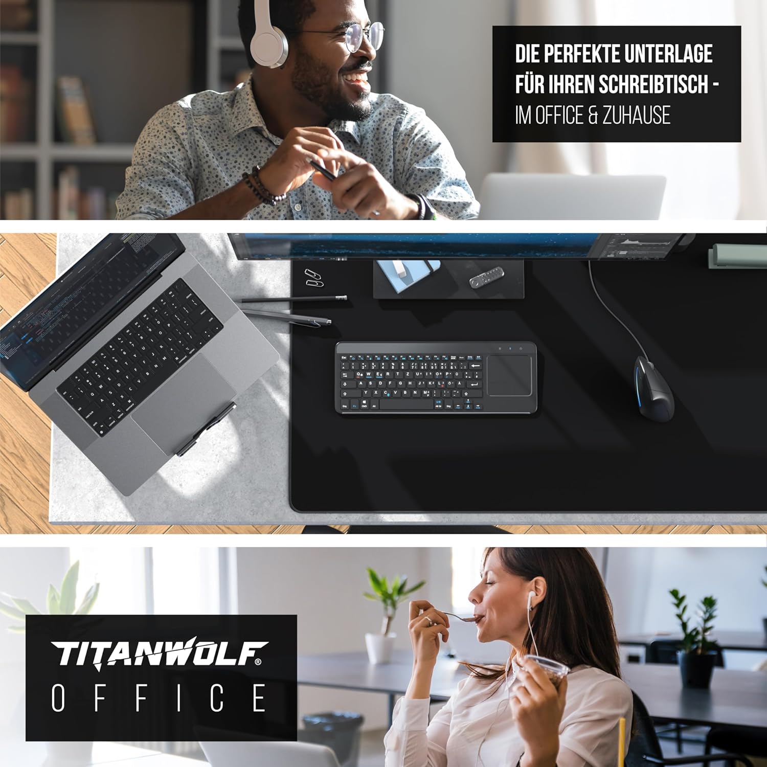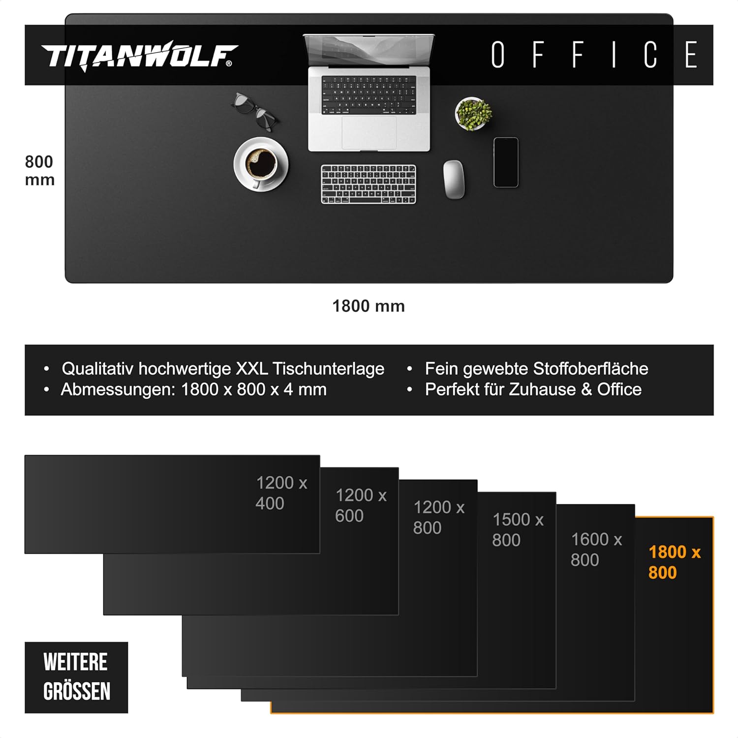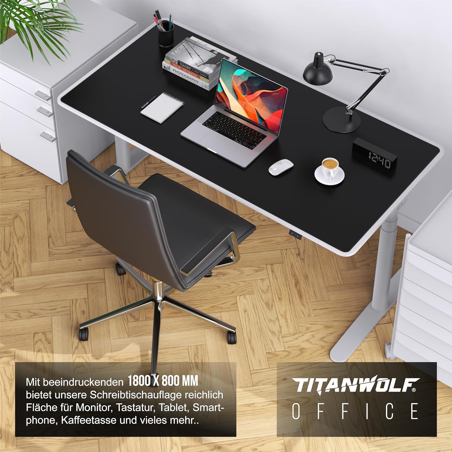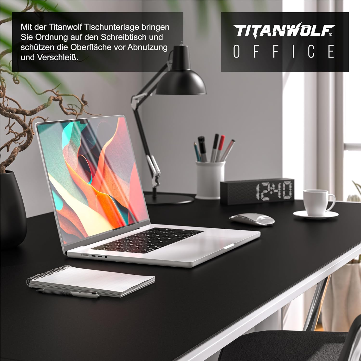 • Луксозна подложка за маса: изживейте ново ниво, когато работите у дома и в офиса. С подложката за маса Titanwolf можете да подредите бюрото и да предпазите повърхността от износване. Насладете се на качество, функционалност и елегантност в един продукт! | 304432
