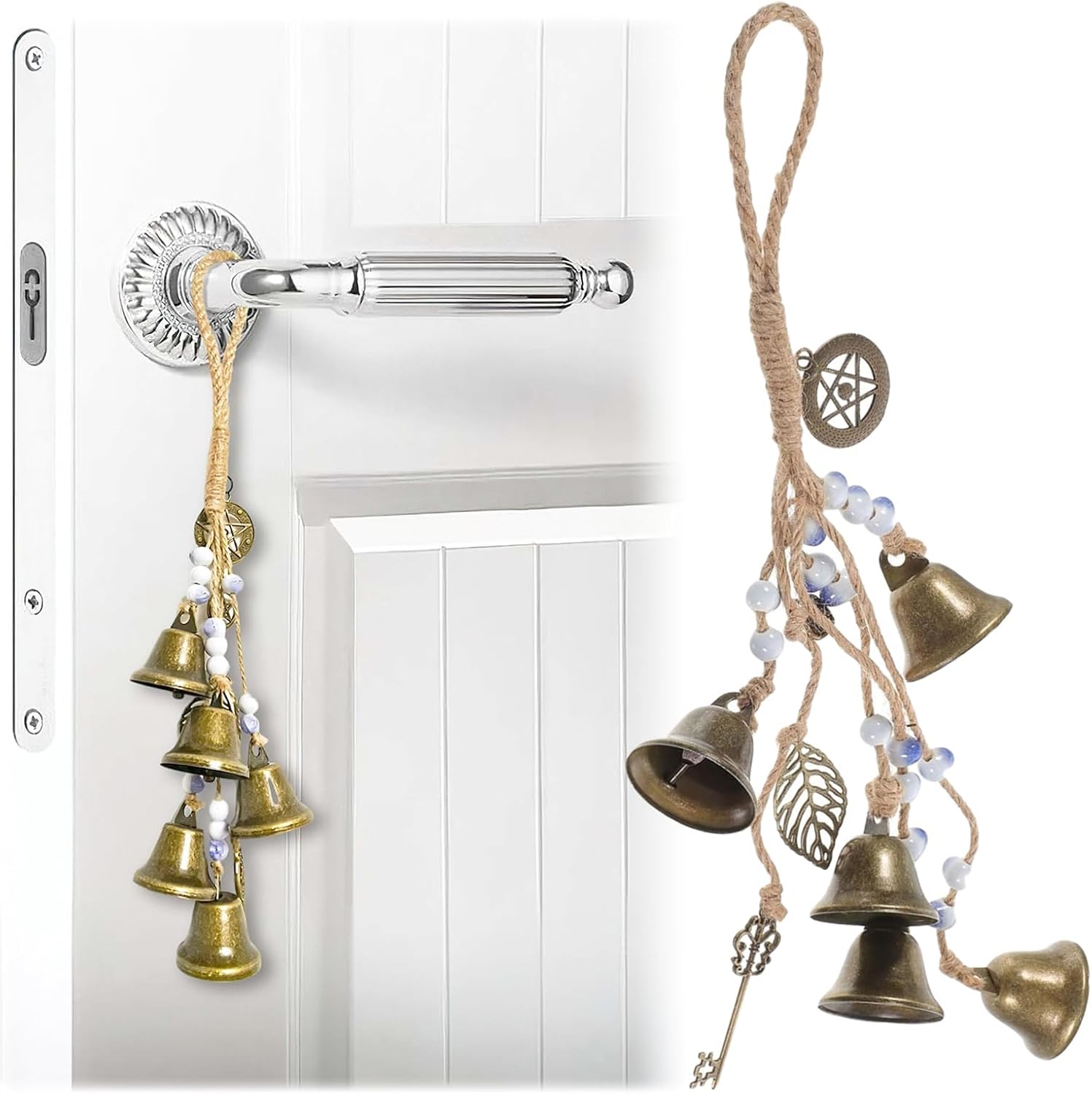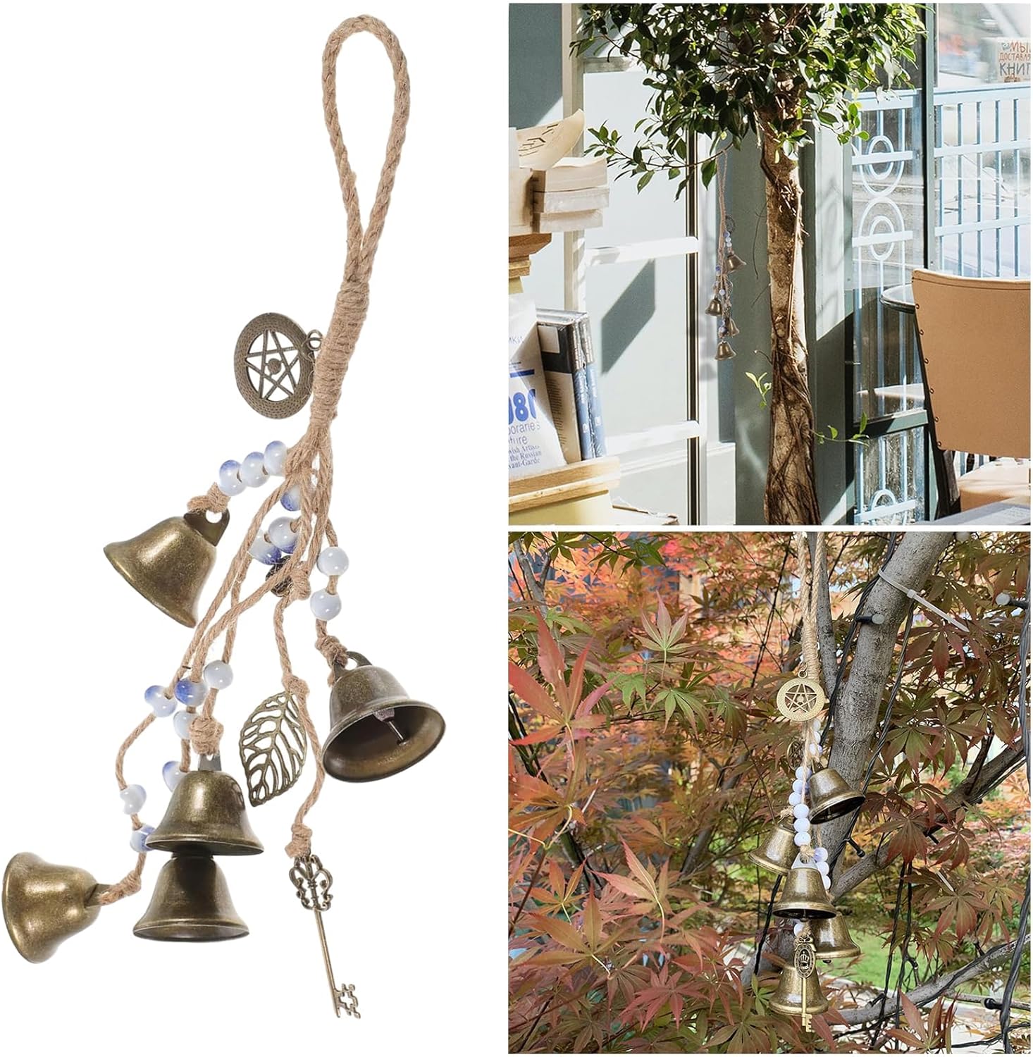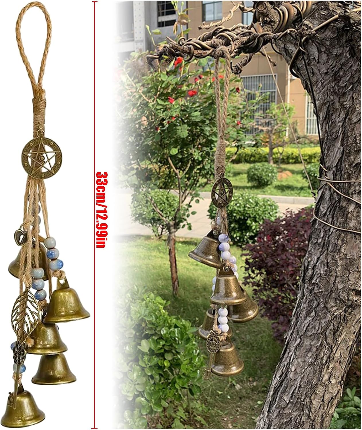 Градинска вятърна камбанка с вещически камбанки Материал: Изработена от висококачествена сплав и въже. Вятърни камбанки с ясен звук. Количество: 5 камбанки. Градинска вятърна камбанка с вещически камбанки Размер: 34 см дължина. Градинска вятърна камбанка с вещически камбанки Цвят: Винтидж. Градинска вятърна камбанка с вещически камбанки. Идеален подарък за приятели, колеги, семейство или роднини. Вятърни камбанки с ясен звук. Може да се използва за декорация на стаи, защита на дома, вещически партита, Хелоуин партита и др.