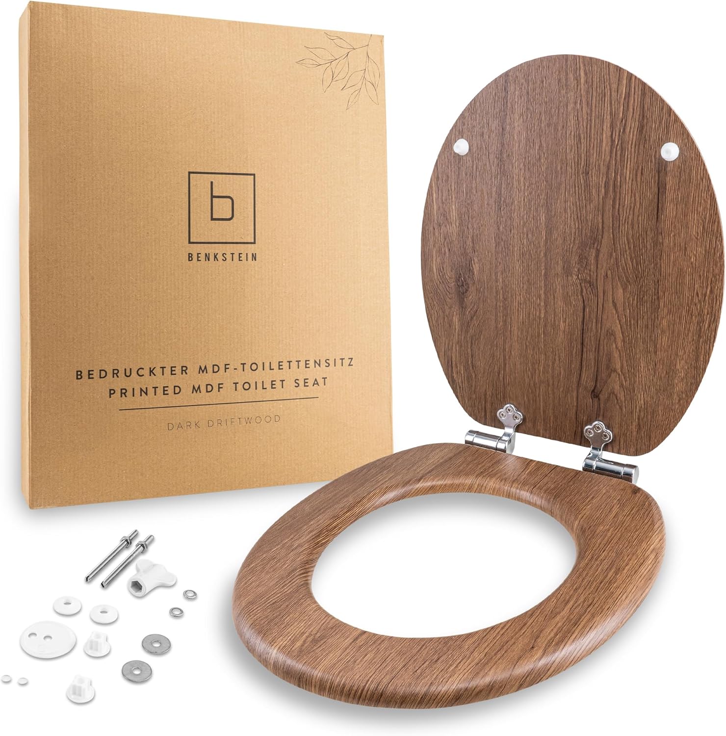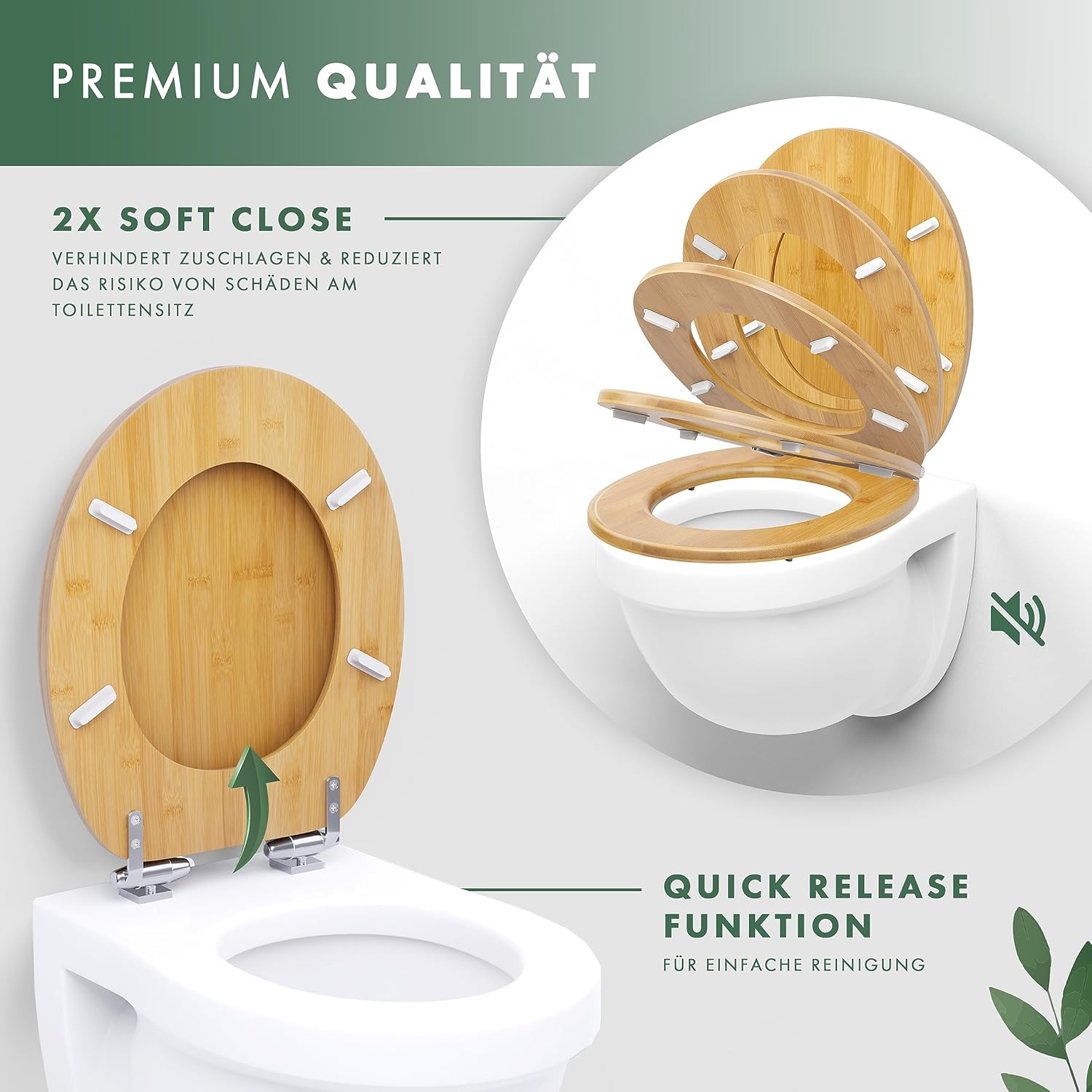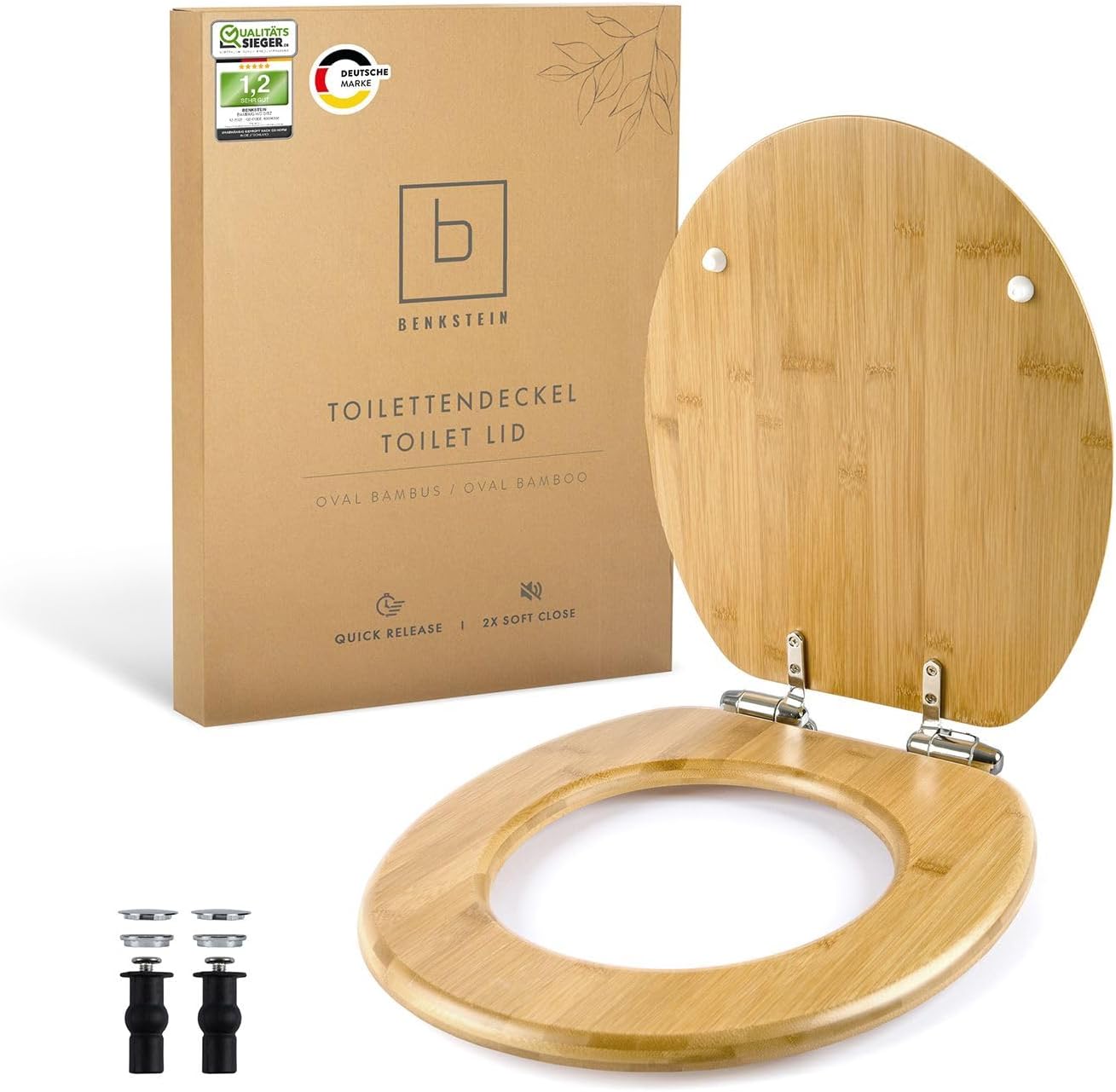 Тоалетна чиния Benkstein® Premium Bamboo с механизъм за плавно затваряне, функция за бързо освобождаване, висококачествен дървен капак за тоалетна чиния, здрава, антибактериална, устойчива, лесен монтаж
