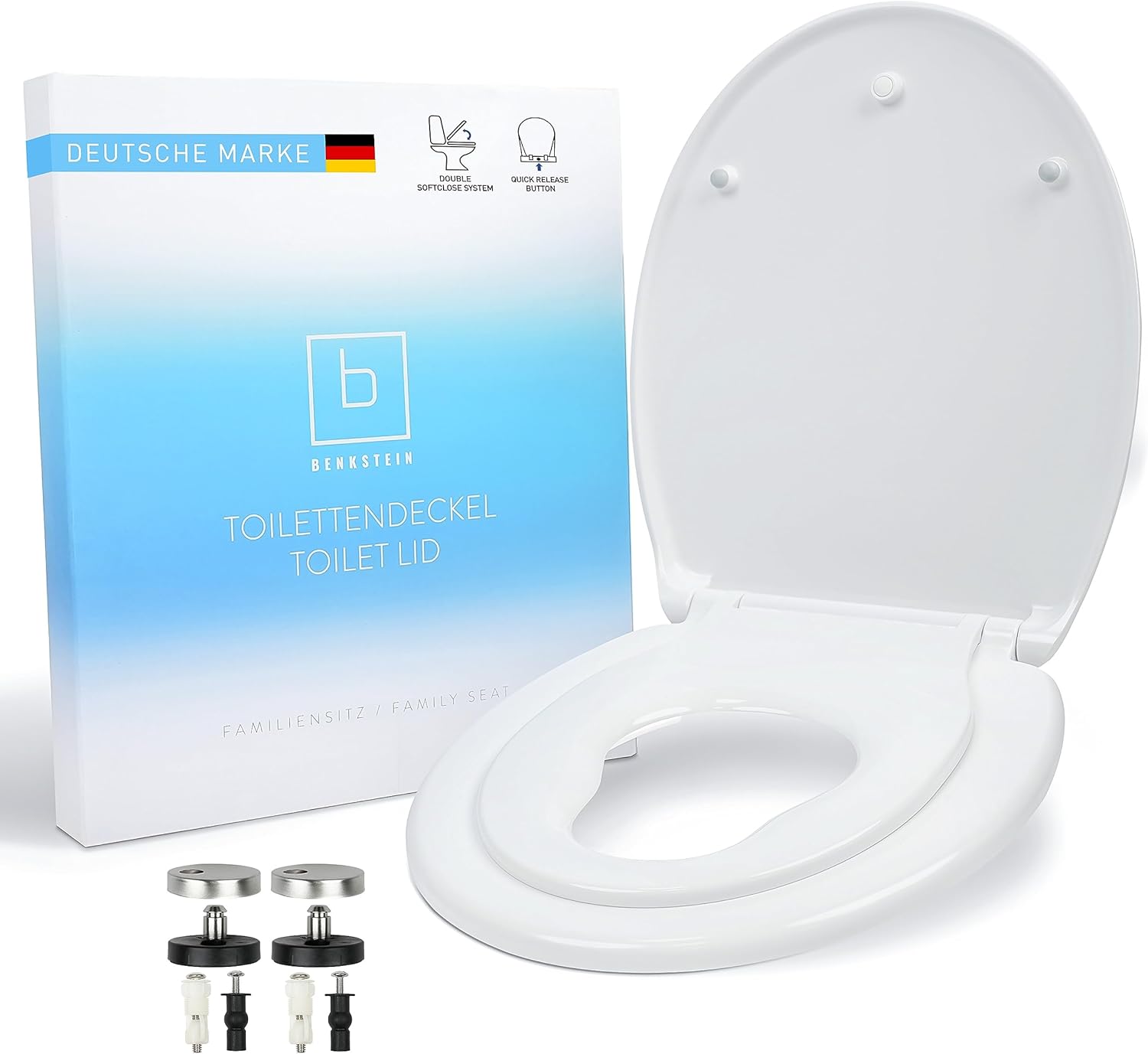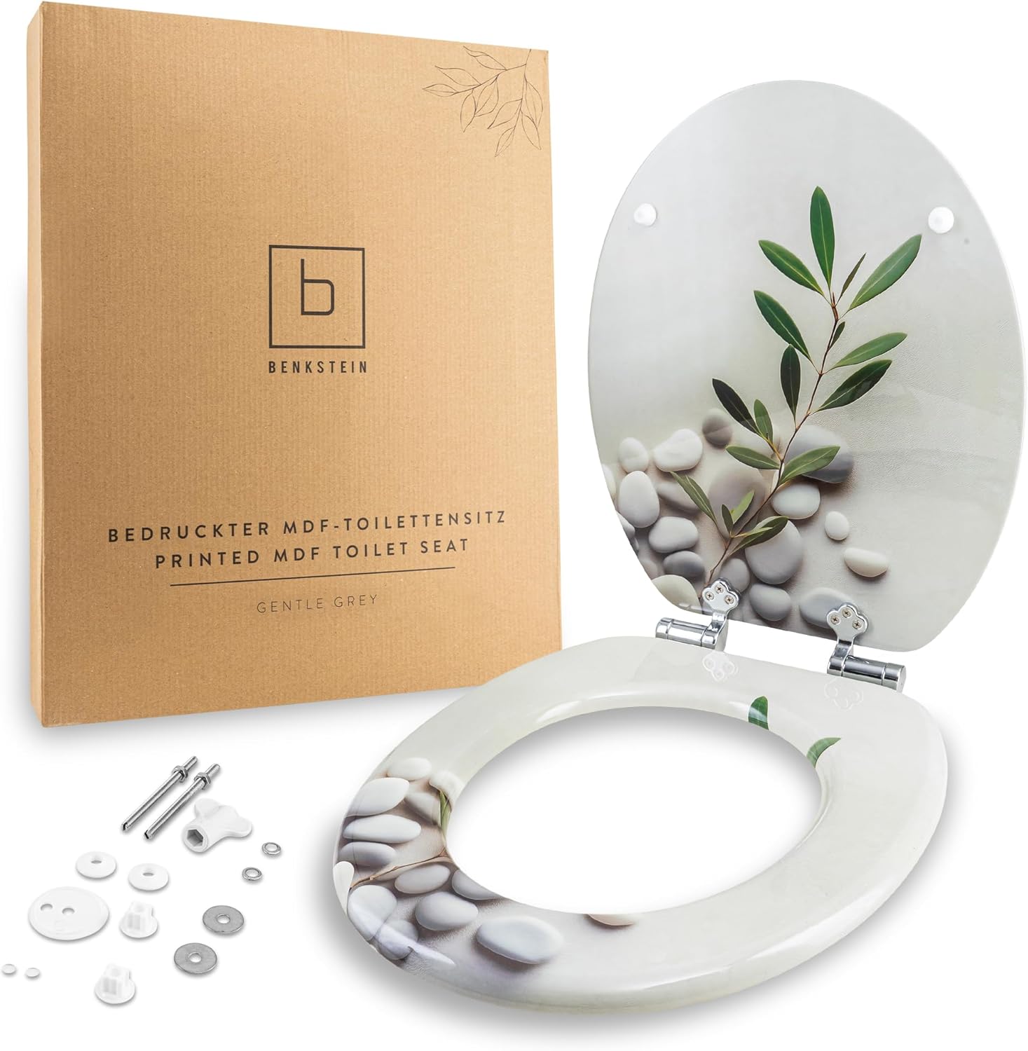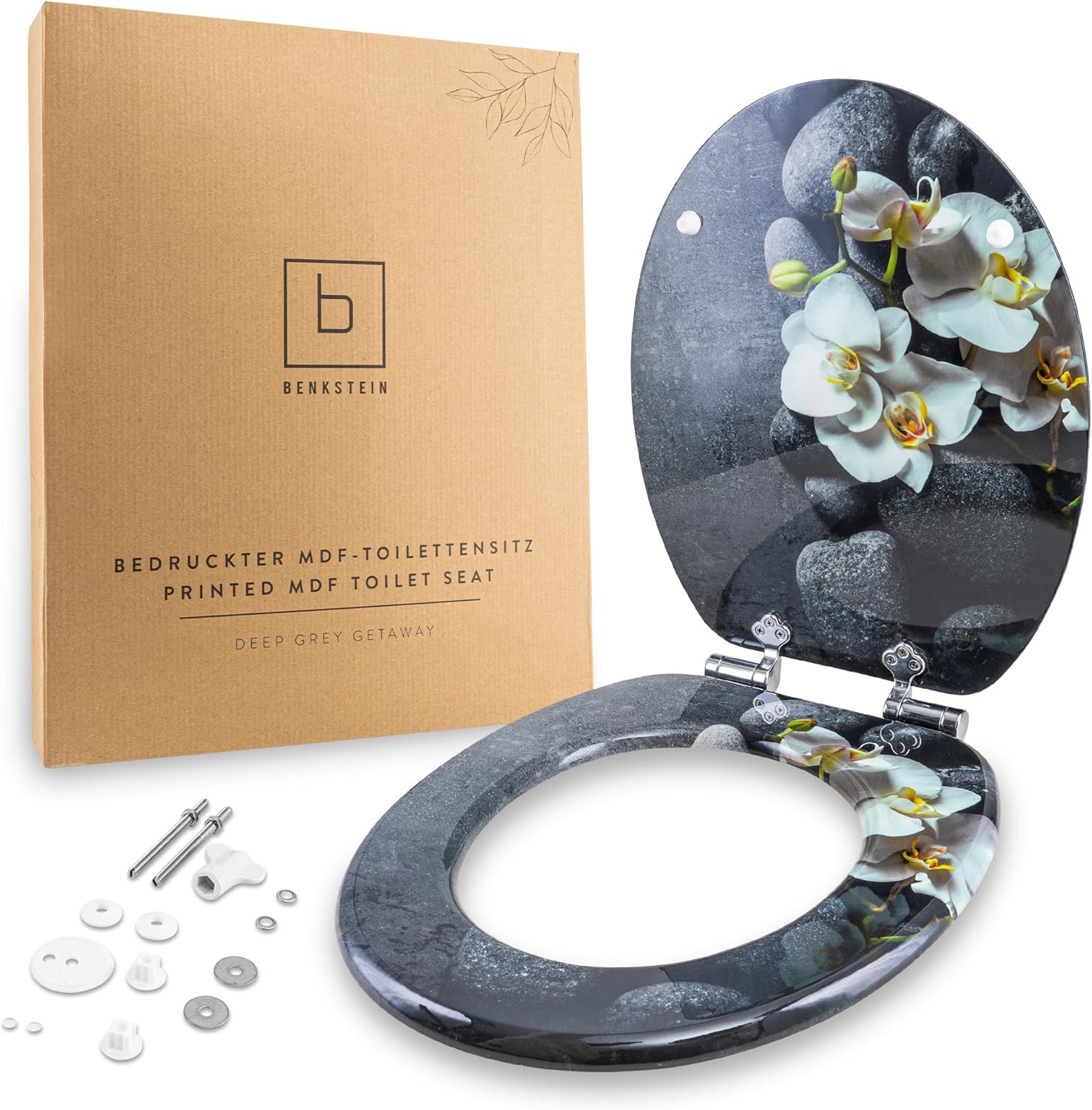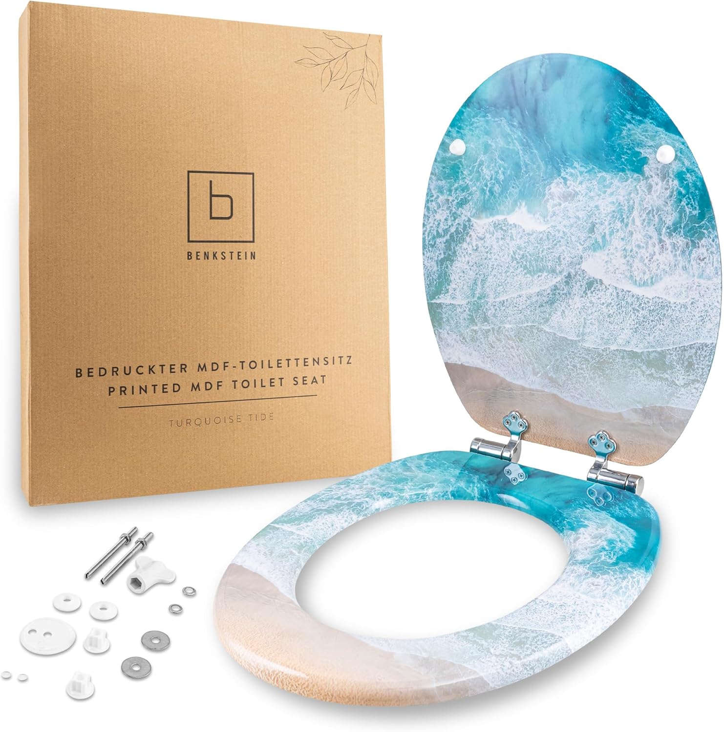 Тоалетна чиния Benkstein® Premium Bamboo с механизъм за плавно затваряне, функция за бързо освобождаване, висококачествен дървен капак за тоалетна чиния, здрава, антибактериална, устойчива, лесен монтаж