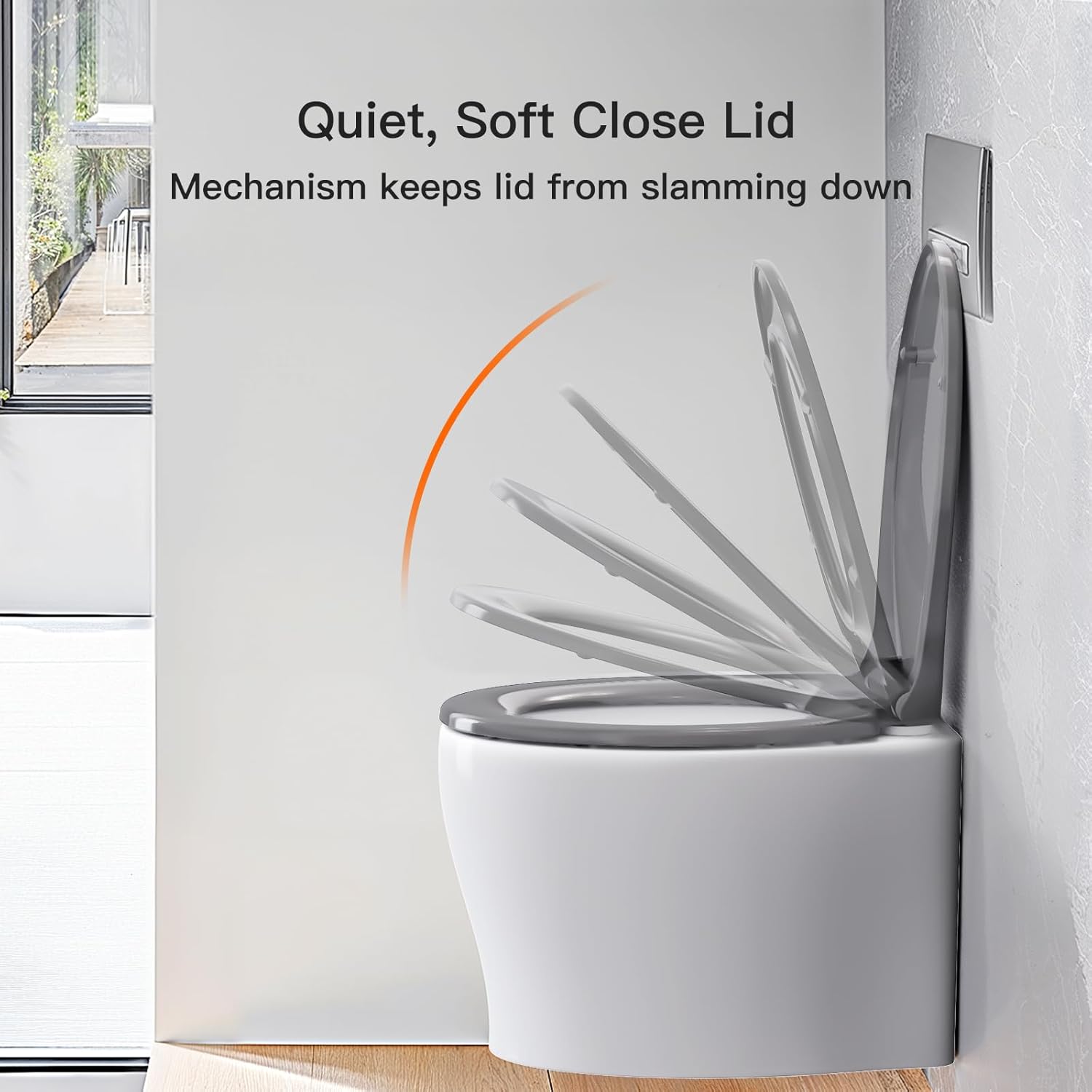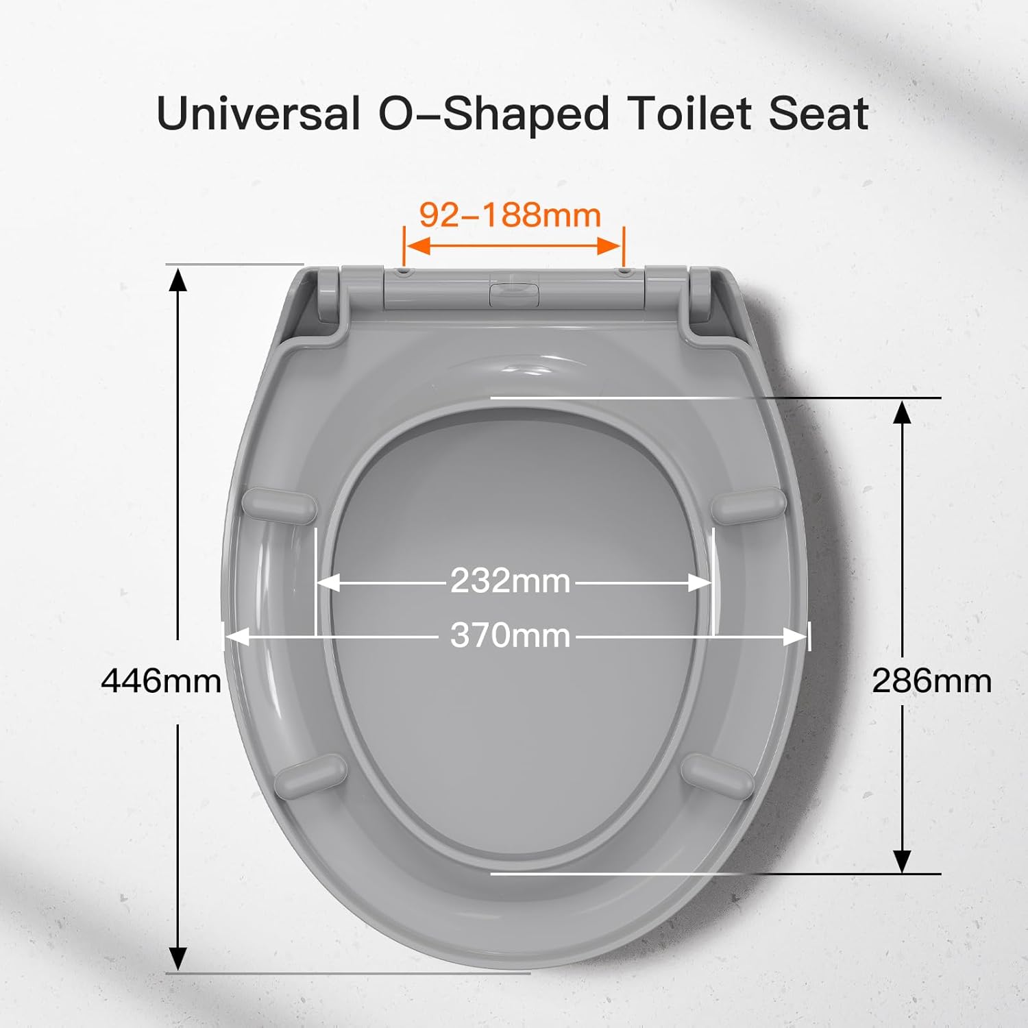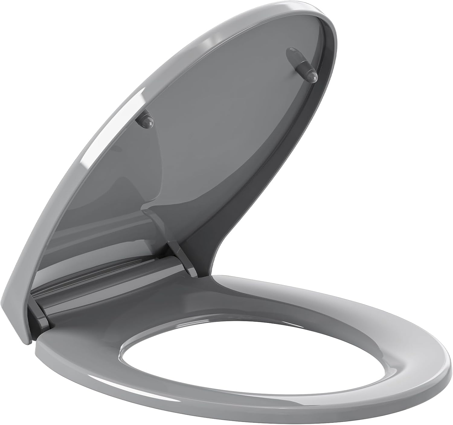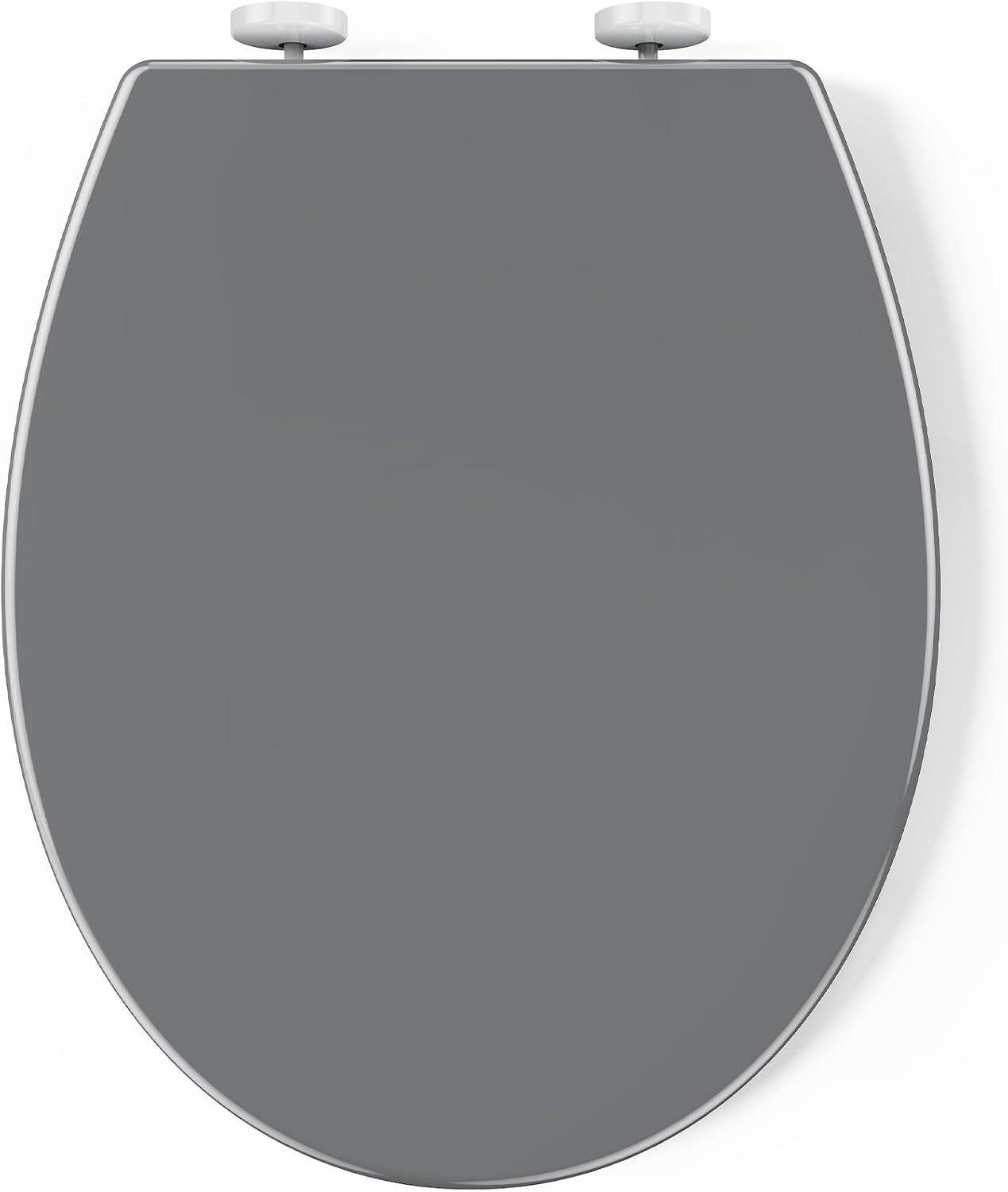 Тоалетна чиния Pipishell с механизъм за плавно затваряне, функция за бързо освобождаване за лесно почистване, O-образна бяла тоалетна чиния с регулируеми панти, пластмасова версия (сива)