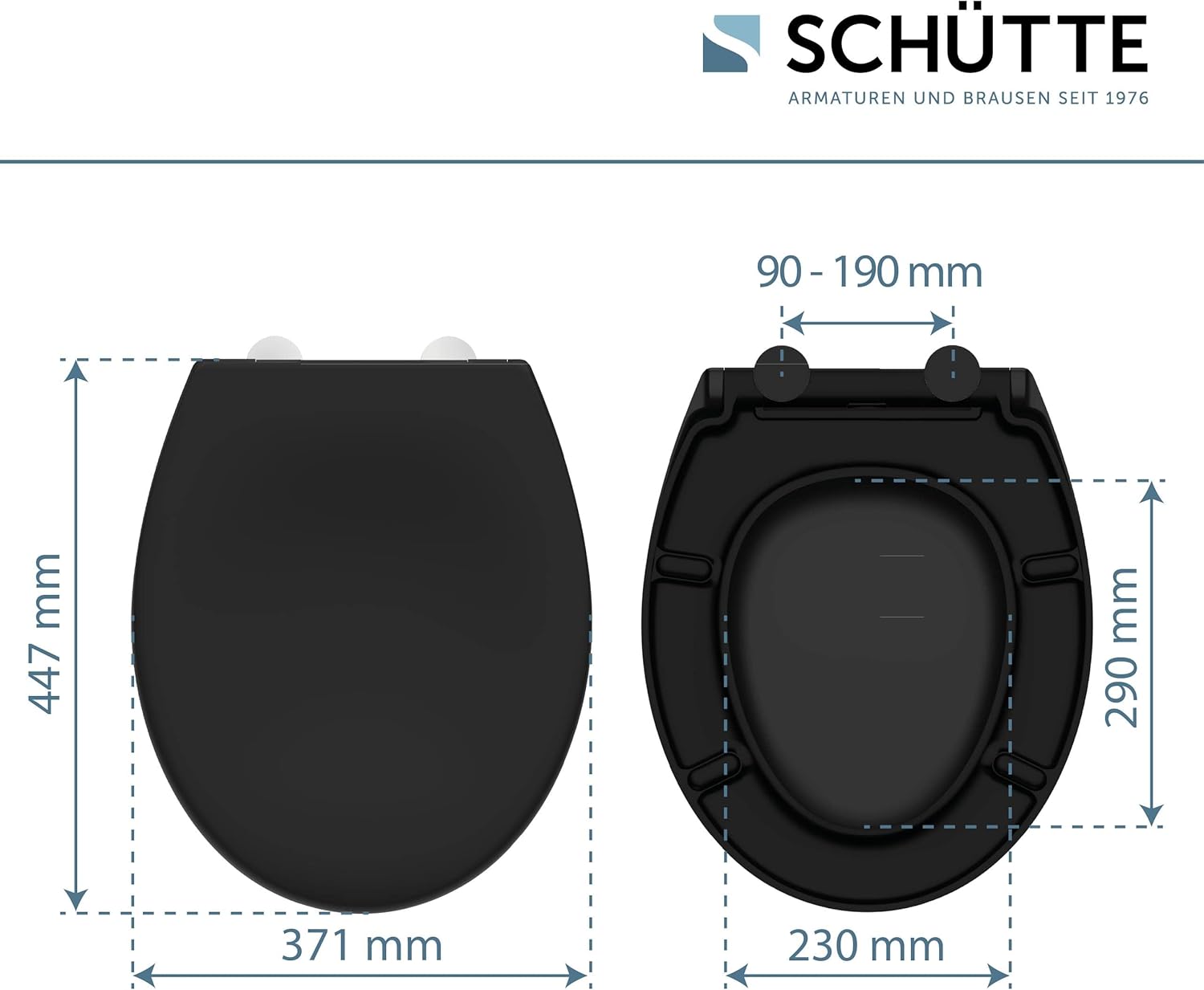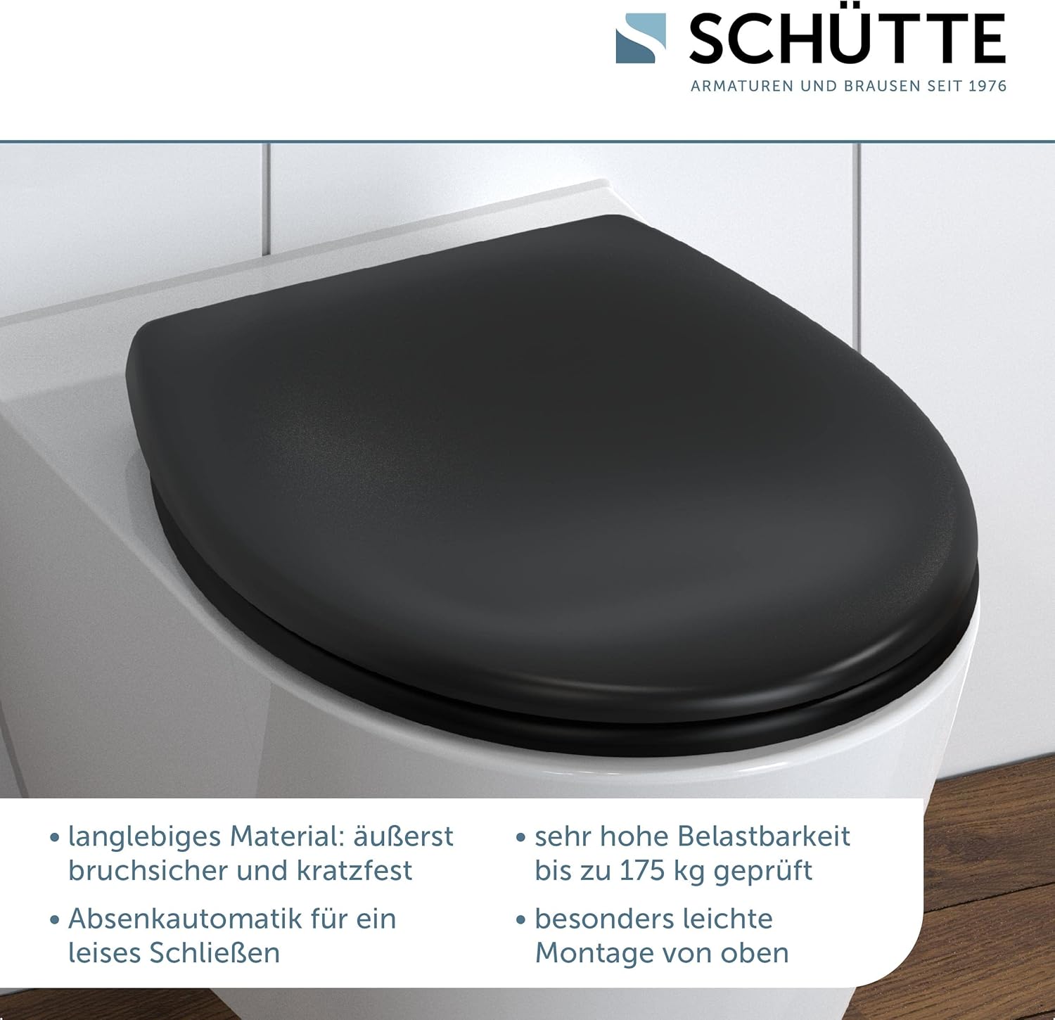 Тоалетна чиния SCHÜTTE, черна, с механизъм за плавно затваряне и бързо освобождаване | Капак за тоалетна чиния с метални панти | Капак за тоалетна чиния и чиния до 150 кг | Универсален размер | Черна