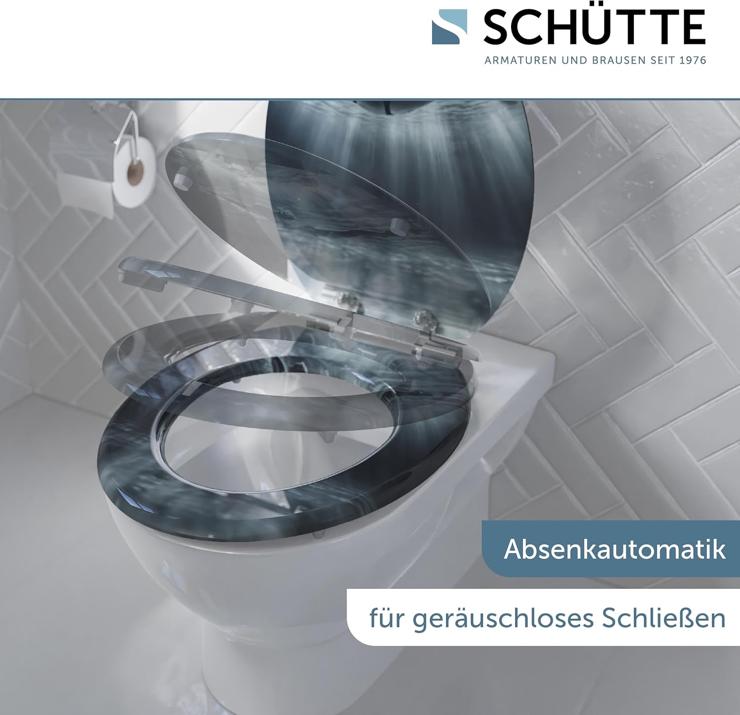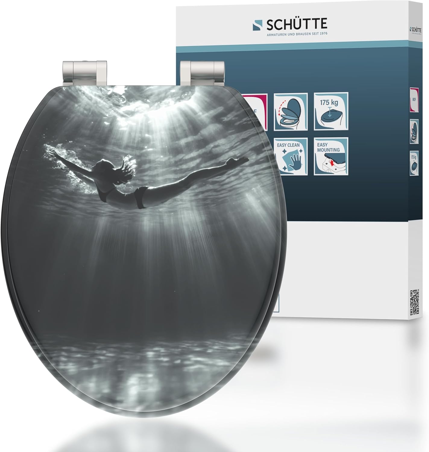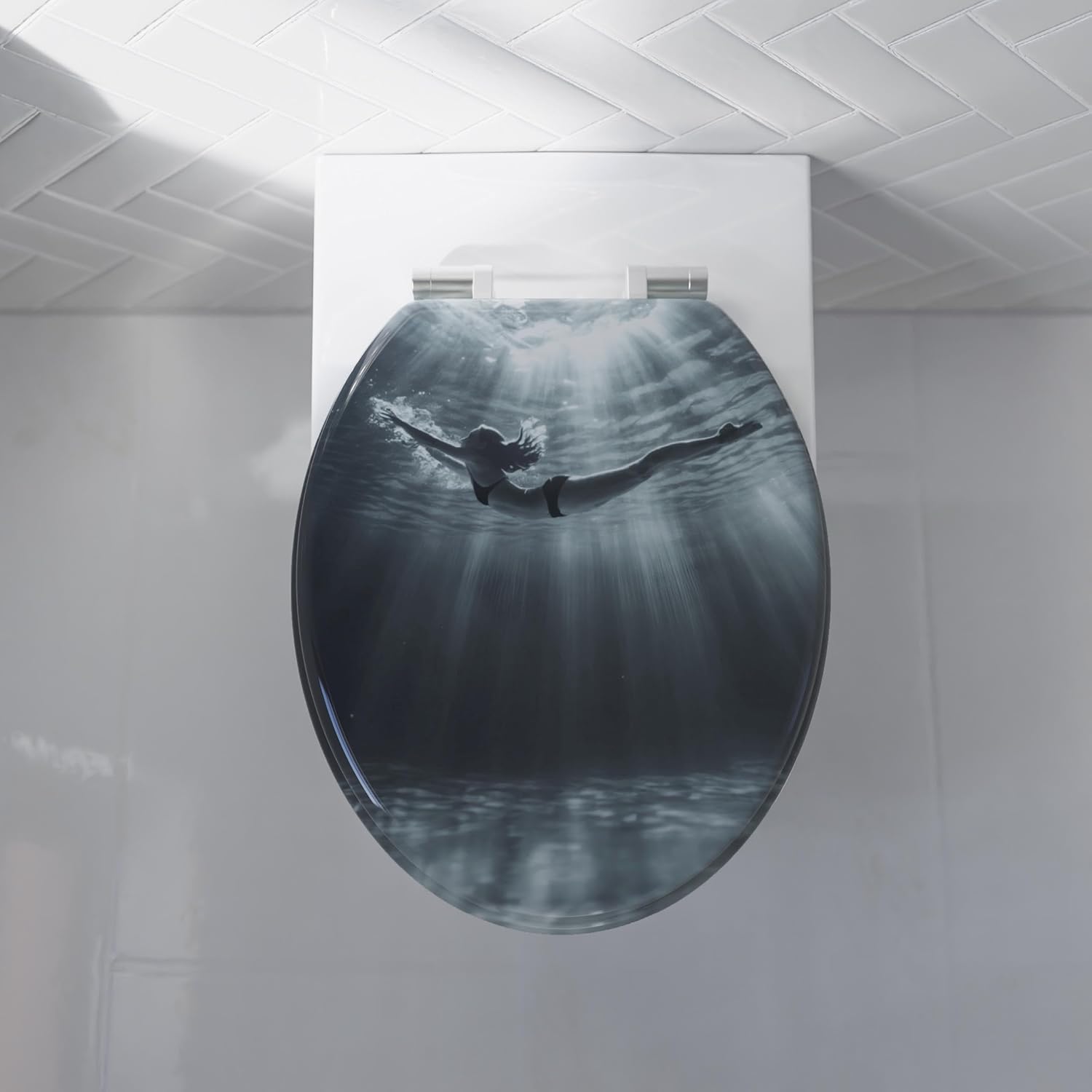 Тоалетна чиния SCHÜTTE Dive с механизъм за плавно затваряне, изработена от дърво, тоалетна чиния с капак, капак за тоалетна чиния с дървена сърцевина и мотив (максимално натоварване на тоалетната чиния 175 кг) цветна