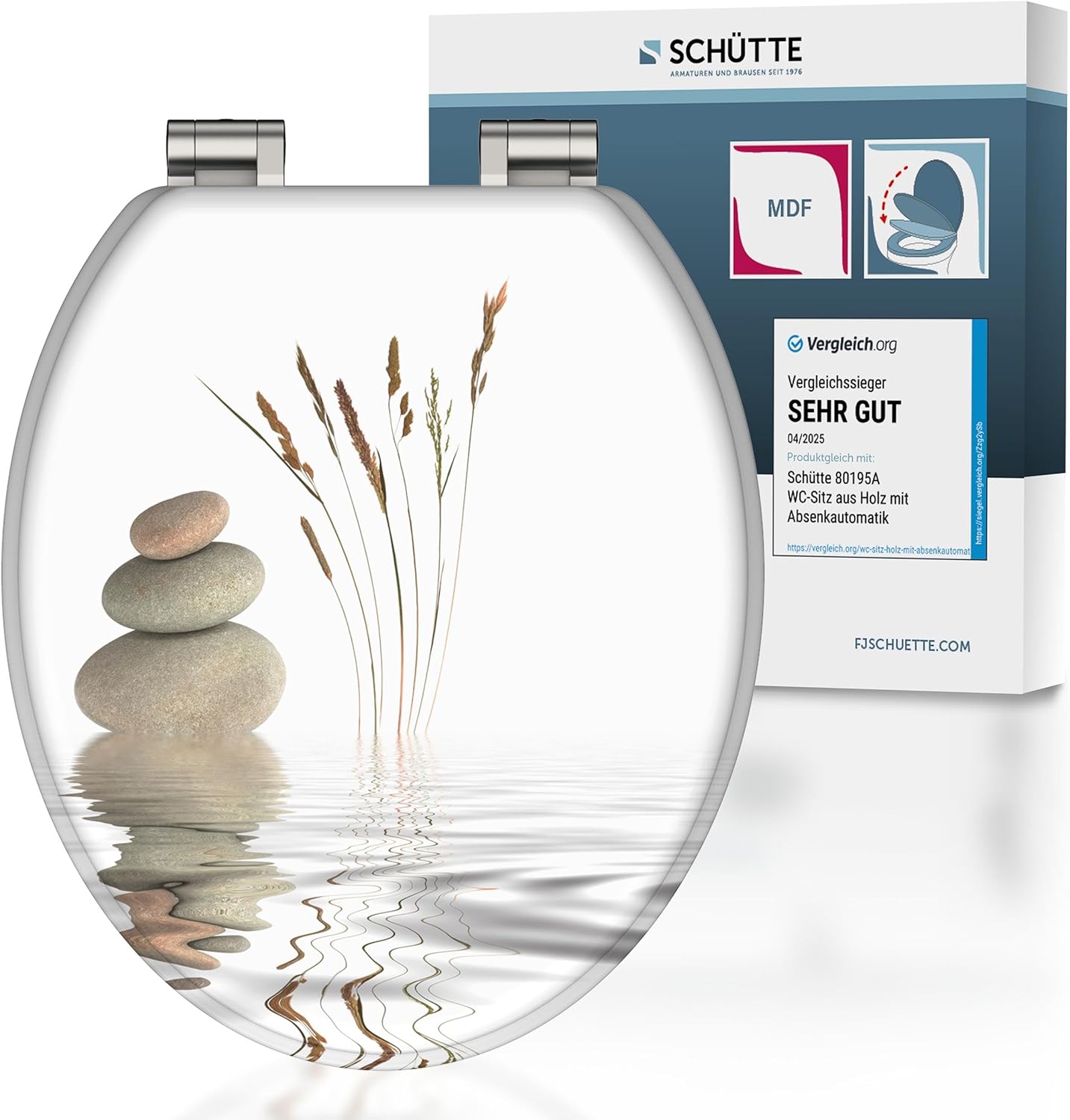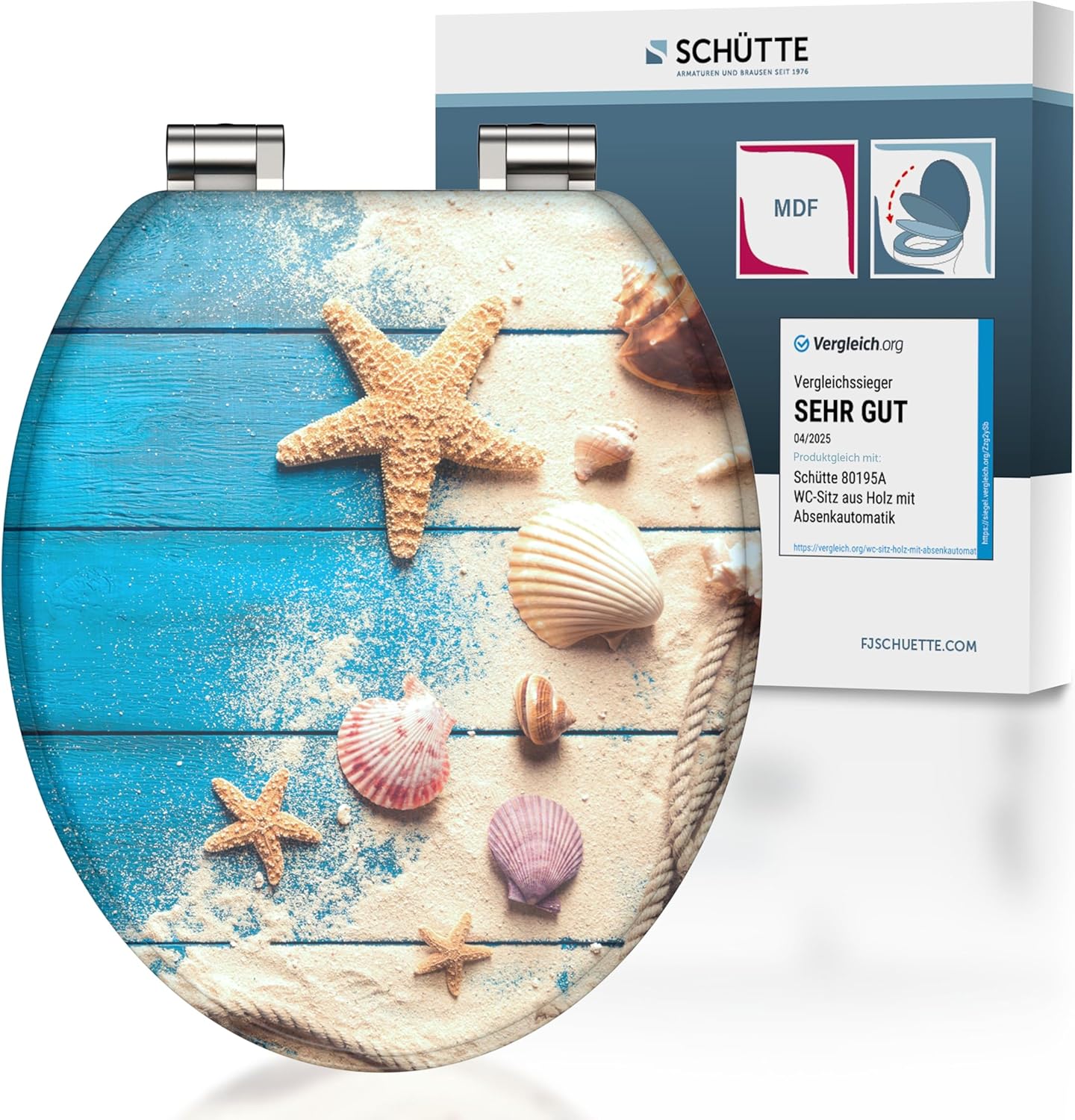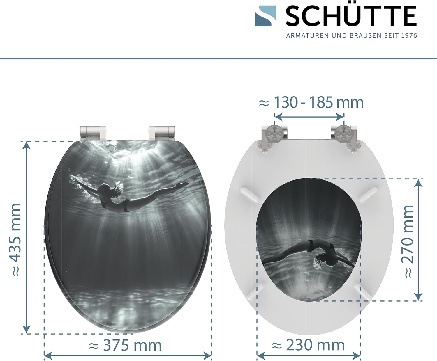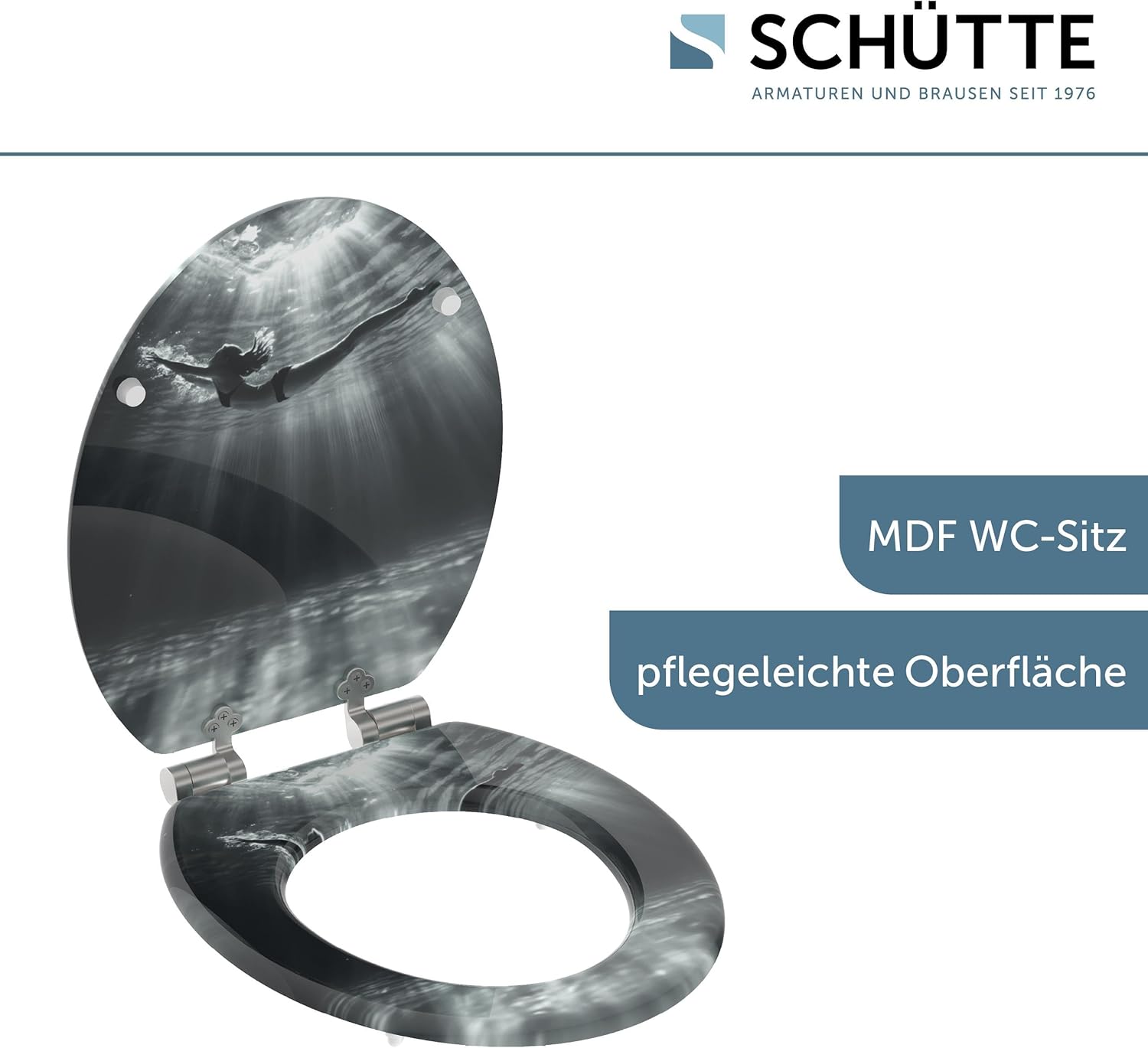 Тоалетна чиния SCHÜTTE Dive с механизъм за плавно затваряне, изработена от дърво, тоалетна чиния с капак, капак за тоалетна чиния с дървена сърцевина и мотив (максимално натоварване на тоалетната чиния 175 кг) цветна