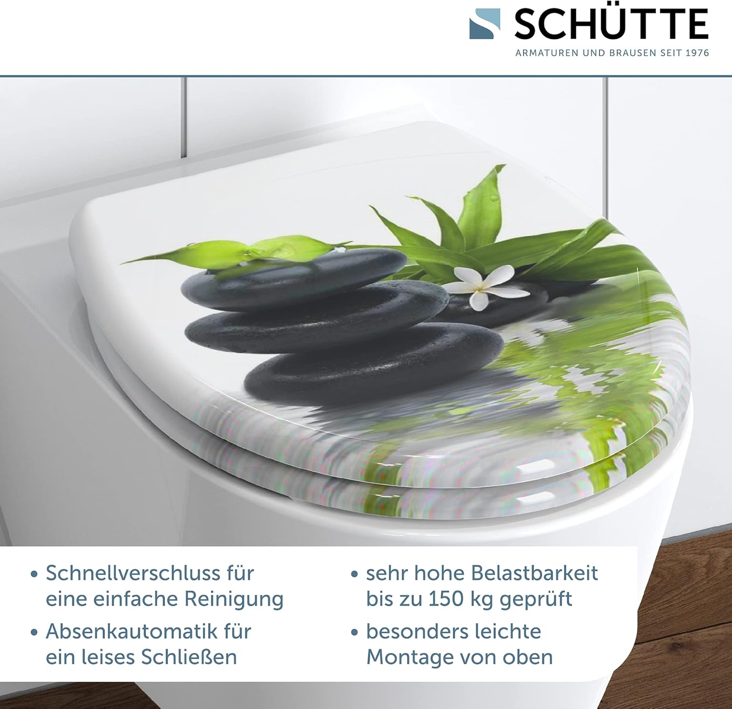 Тоалетна чиния SCHÜTTE Jasmin с механизъм за плавно затваряне и бързо освобождаване, изработена от дуропласт, капак за тоалетна чиния с товароносимост 175 кг, тоалетна чиния с стъкла, капак за тоалетна чиния, тоалетна чиния с мотив