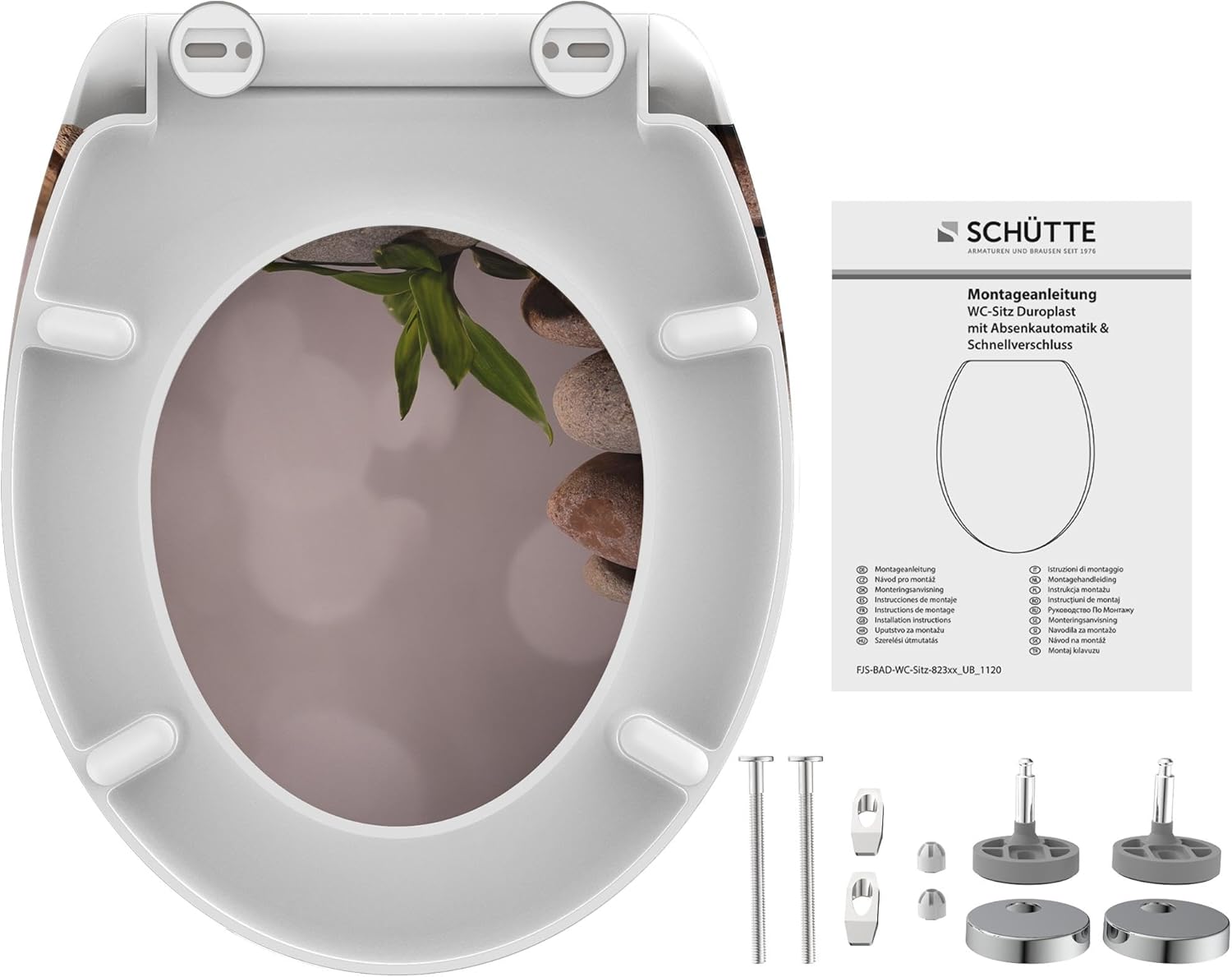 Тоалетна чиния SCHÜTTE Pyramid с механизъм за плавно затваряне и бързо освобождаване, изработена от дуропласт, с товароносимост 175 кг, тоалетна чиния с очила, капак за тоалетна чиния