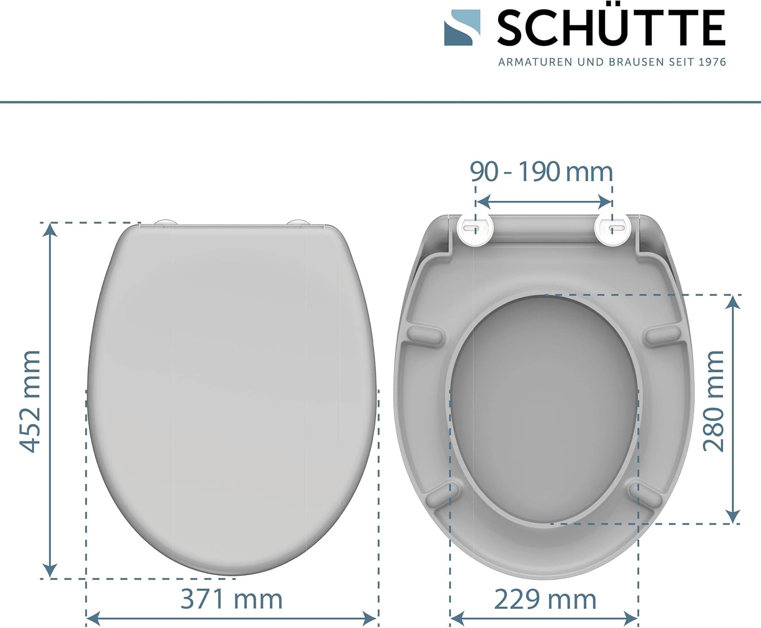 Тоалетна чиния SCHÜTTE сива с механизъм за плавно затваряне и бързо освобождаване, изработена от дуропласт, подвижен капак за тоалетна чиния с товароносимост 175 кг, тоалетна чиния с очила, капак за тоалетна чиния, тоалетна чиния