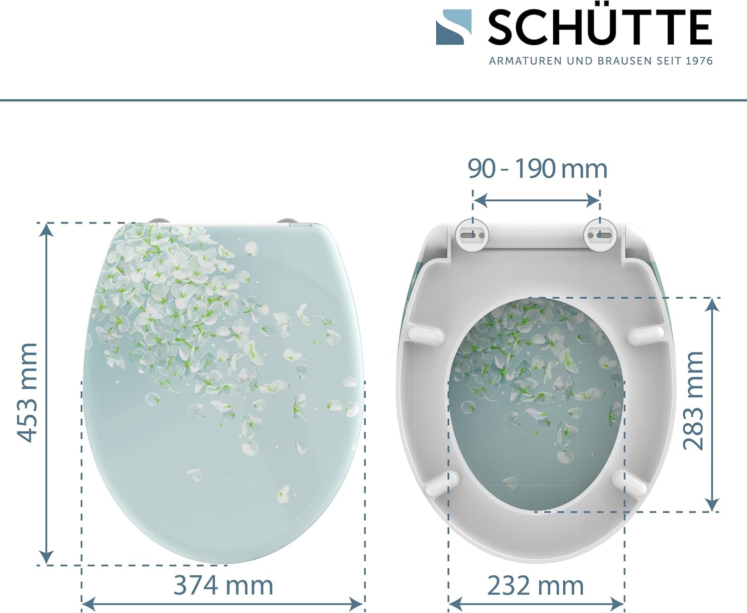 Тоалетна чиния SCHÜTTE Wind Flower с механизъм за плавно затваряне и бързо освобождаване, изработена от дуропласт, капак за тоалетна чиния с товароносимост 175 кг, тоалетна чиния с стъкла, капак за тоалетна чиния, тоалетна чиния с