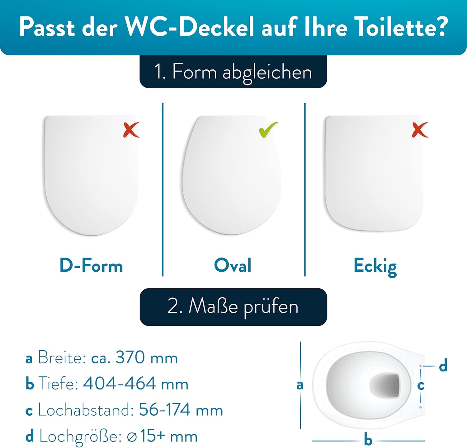 • Лесен за сглобяване и издръжливост до 150 кг: Висококачественото покритие на пантите от неръждаема стомана позволява бърз и безклатещ се монтаж отгоре. За монтажа е необходима само стандартна отвертка. Капакът има тестван капацитет на натоварване от 150 кг (DIN 19516) и по този начин винаги ви предлага сигурно захващане.