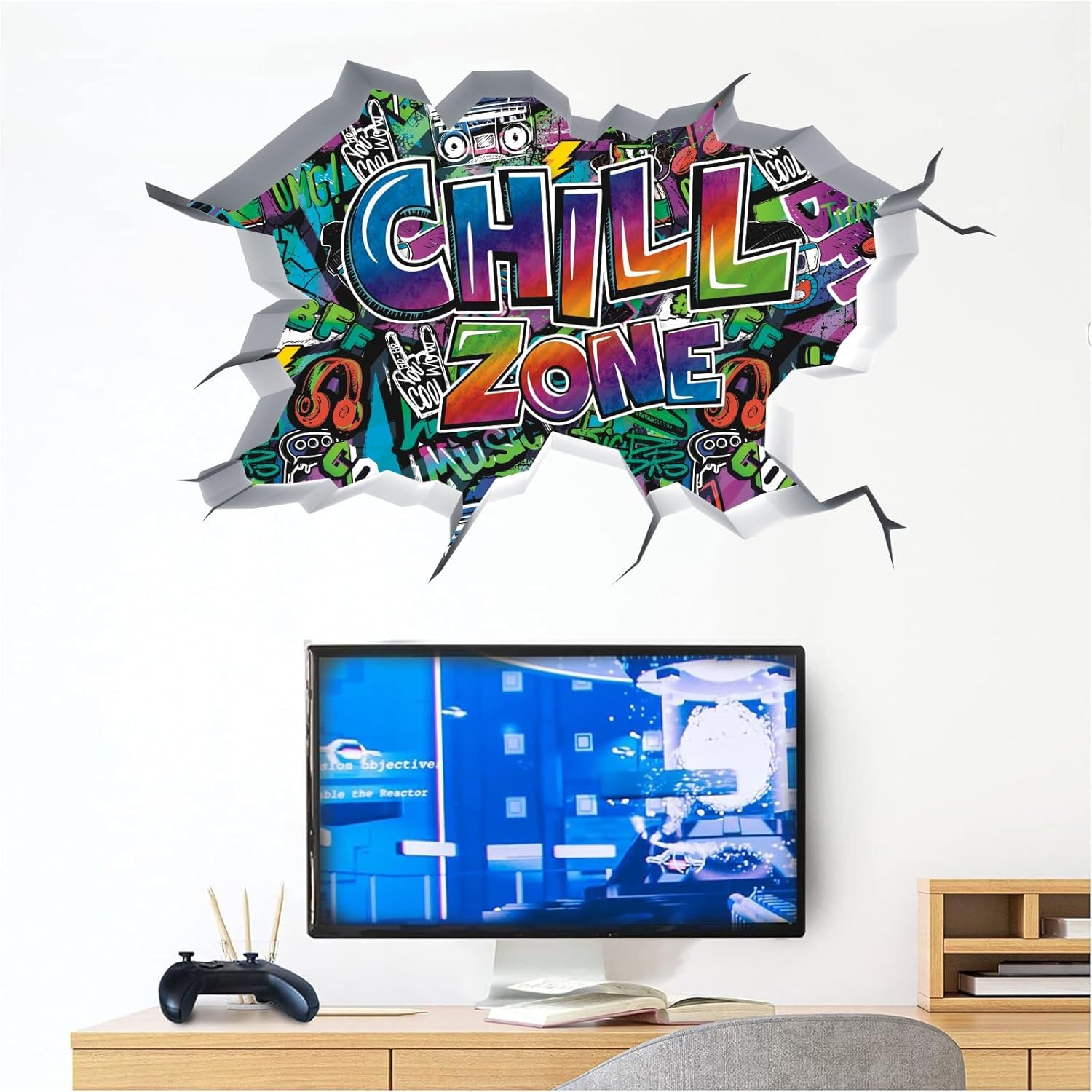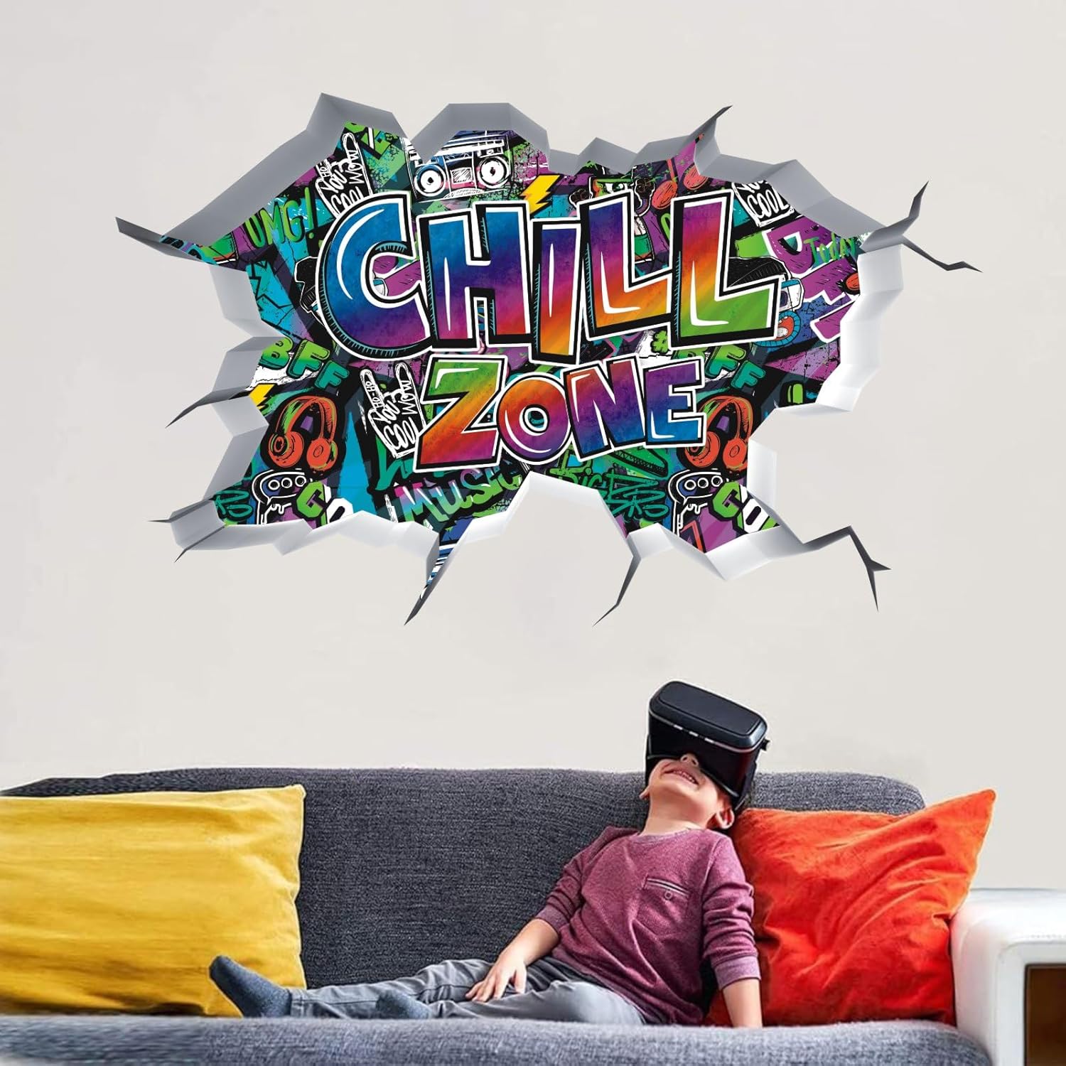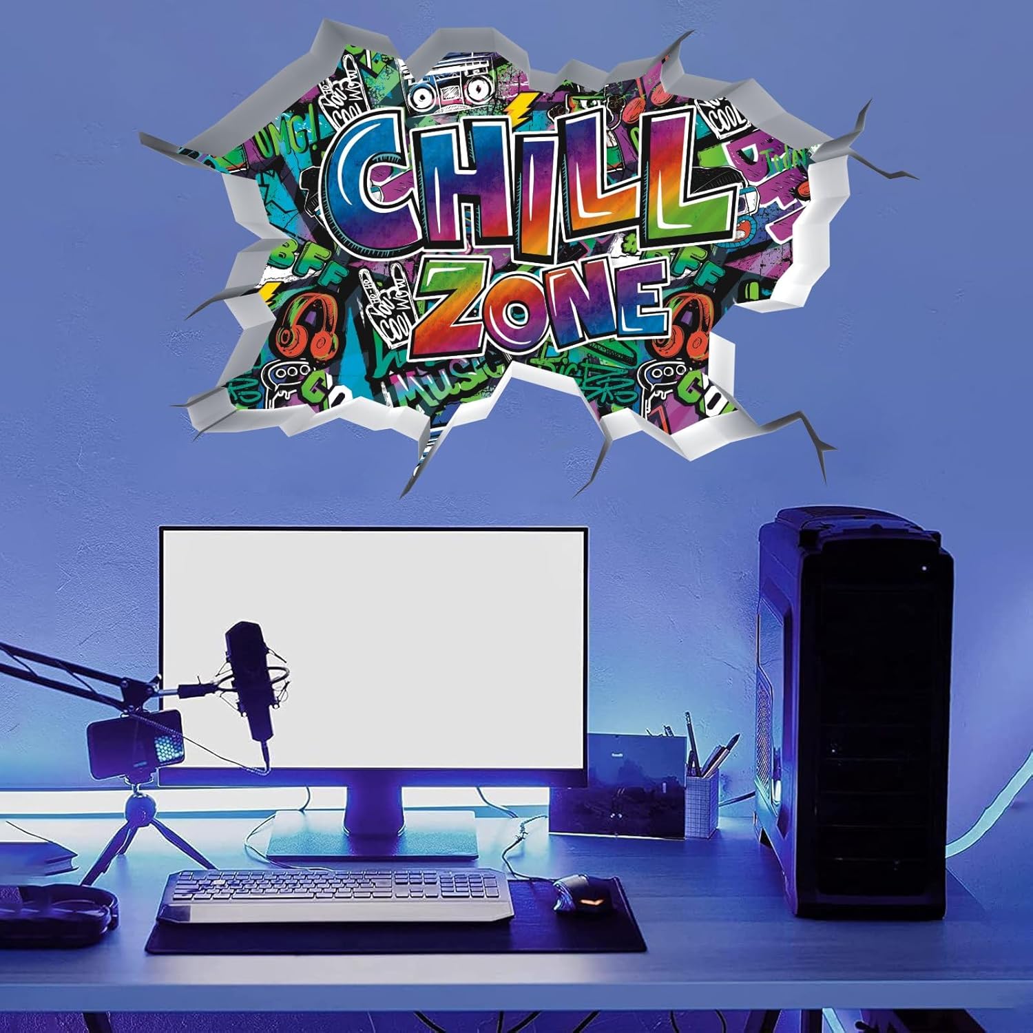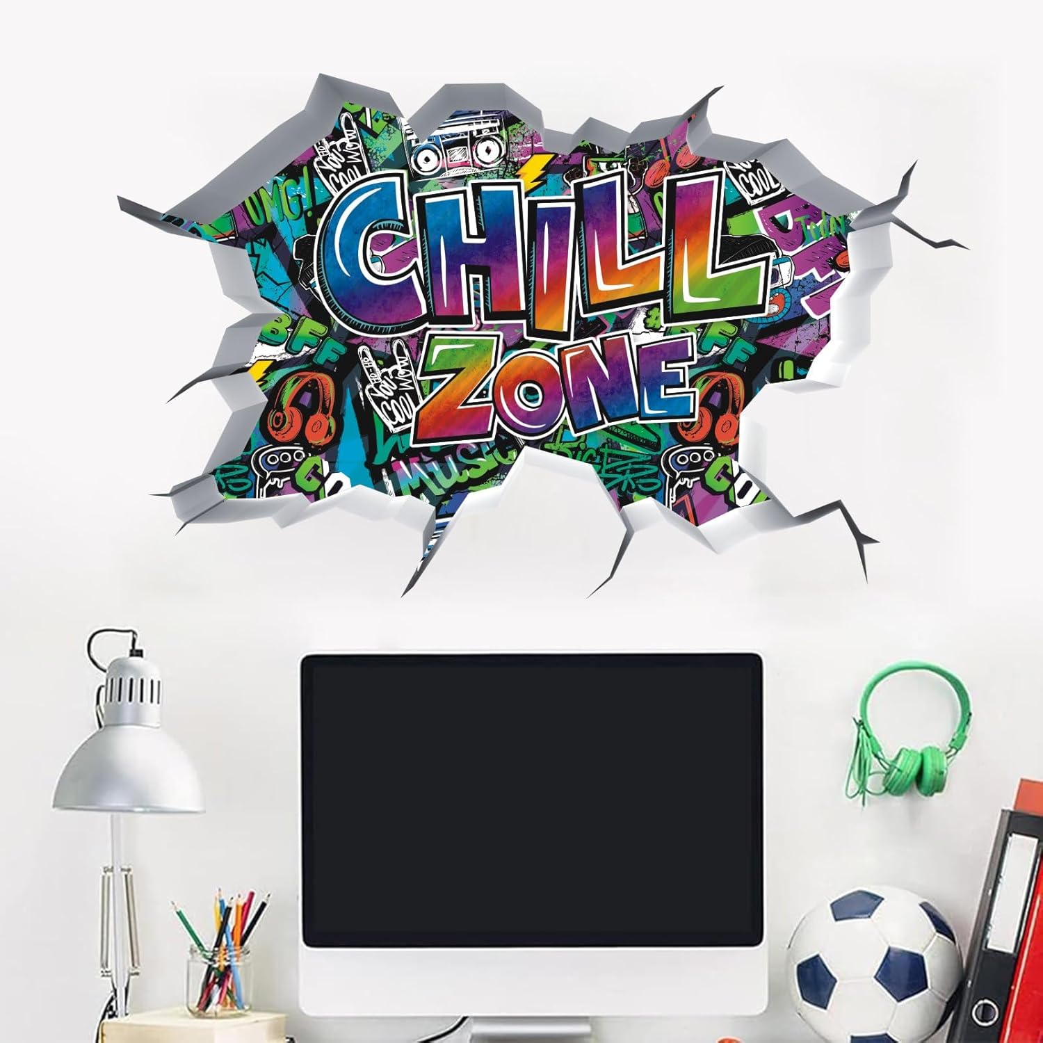 TOARTI 3D стикер за стена Chill Zone, улично изкуство, стикер за стена, стикер за стена за тийнейджърска стая, графити, стикер за стена за детска стая, стикер за стена за геймърска зона, стикер за стена с видео игра за декорация на стая за тийнейджъри, подарък
