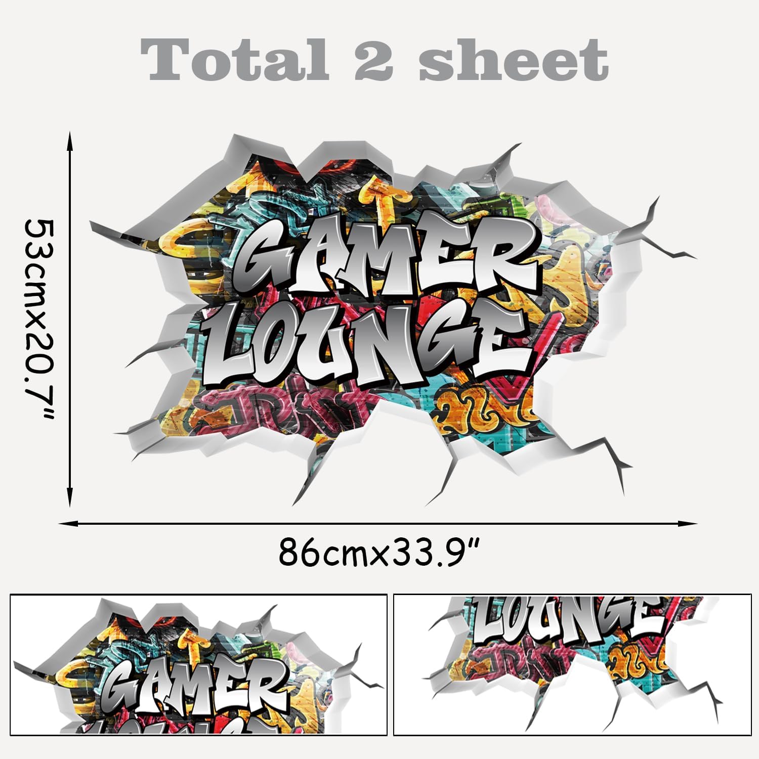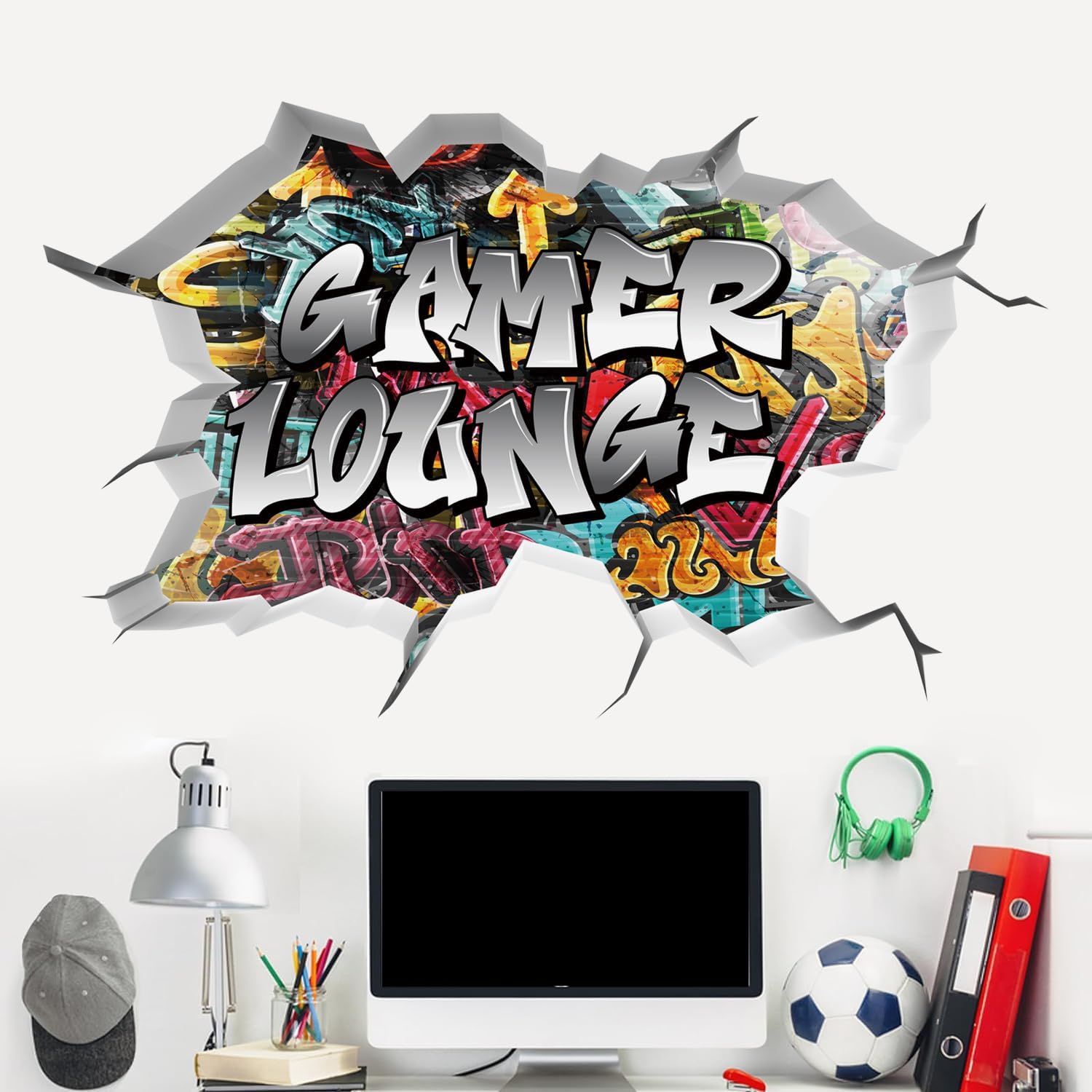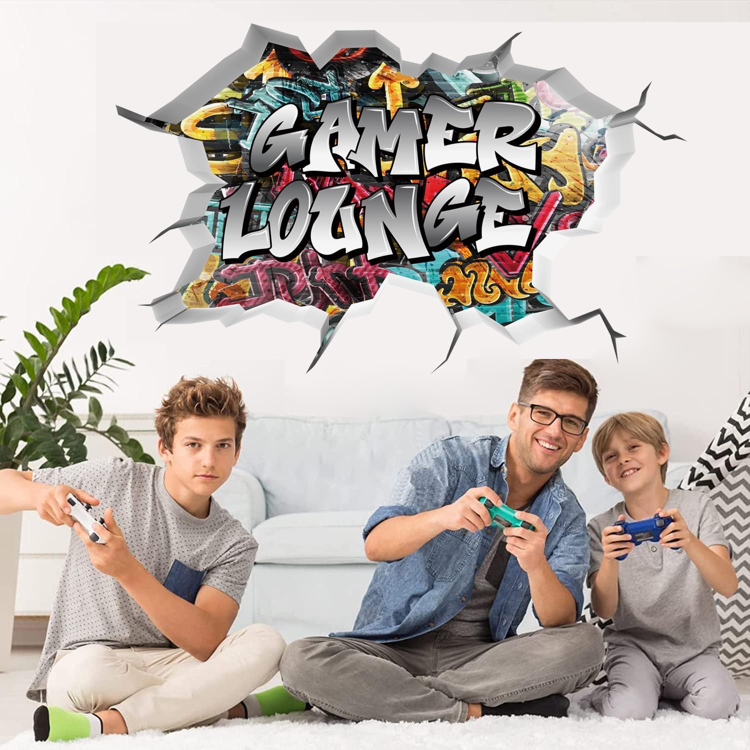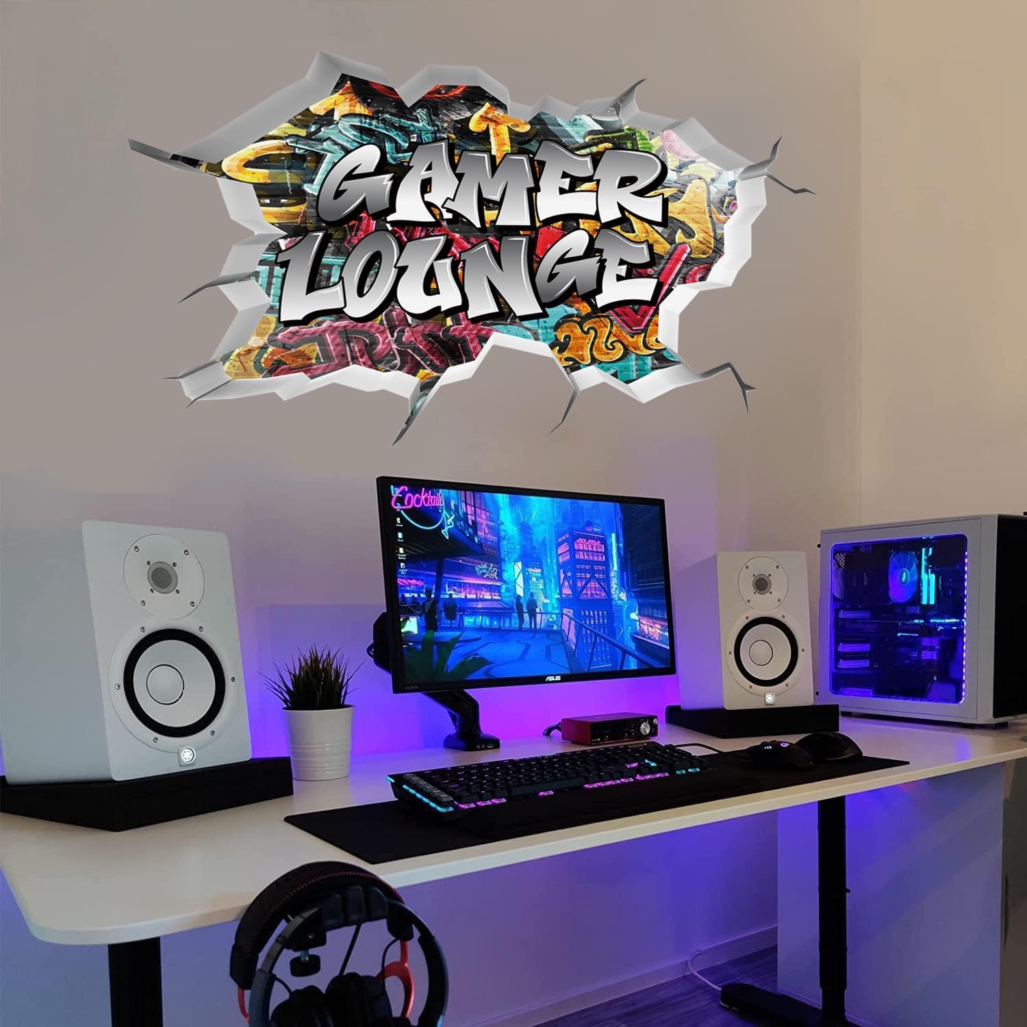 TOARTi 3D стикер за стена Геймър, 86 x 52 см, Цветен плакат за игрална зона, Стикер за стена за детска стая, Момчета, Тийнейджъри, Стикер за стена с видеоигри за стаята на тийнейджърите, Декоративен подарък