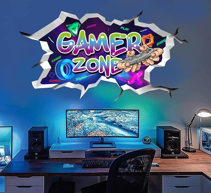 TOARTI 3D стикер за стена за геймъри, стикер за стена за момчета, цветни снимки с игри, стикер за спалня с игри, стикер за стена с игри за стая за тийнейджъри, момчета, тийнейджъри,