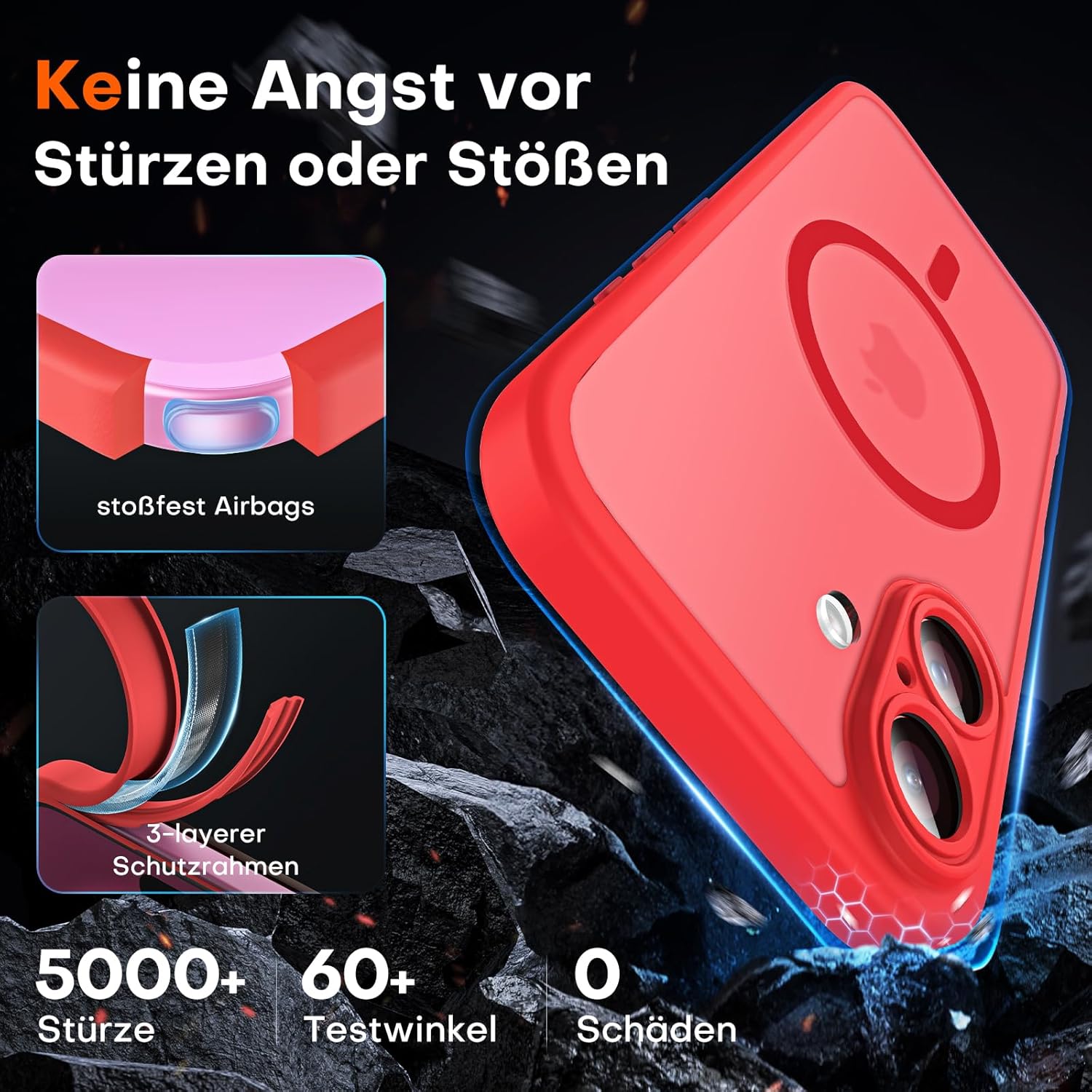 • Максимална безопасност при падане: Този калъф за iPhone 17 е изработен от термопластичен полиуретан (TPU), абсорбиращ ударите, с 4-слойна система и 360° въздушна възглавница, която ефективно намалява щетите от падане.