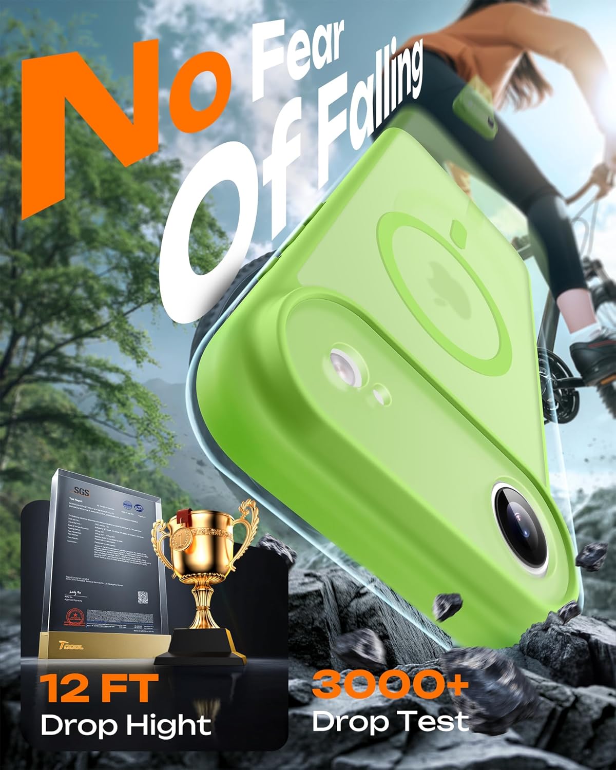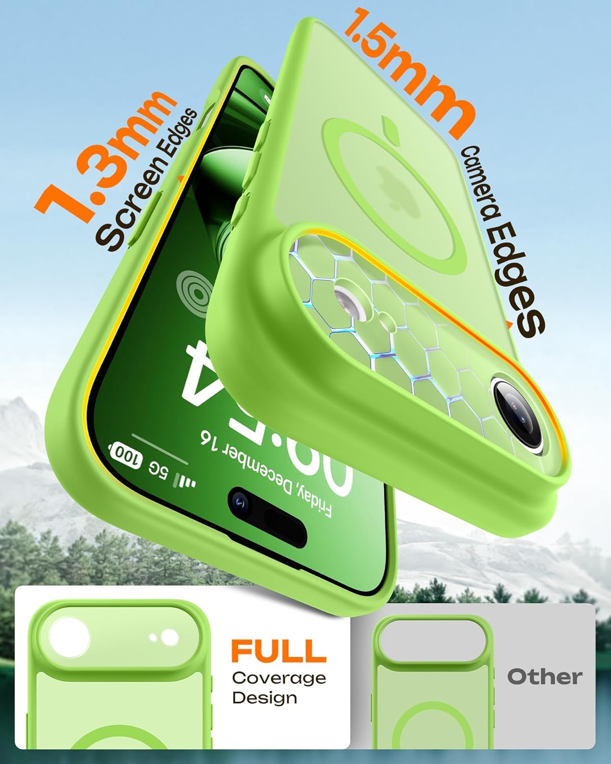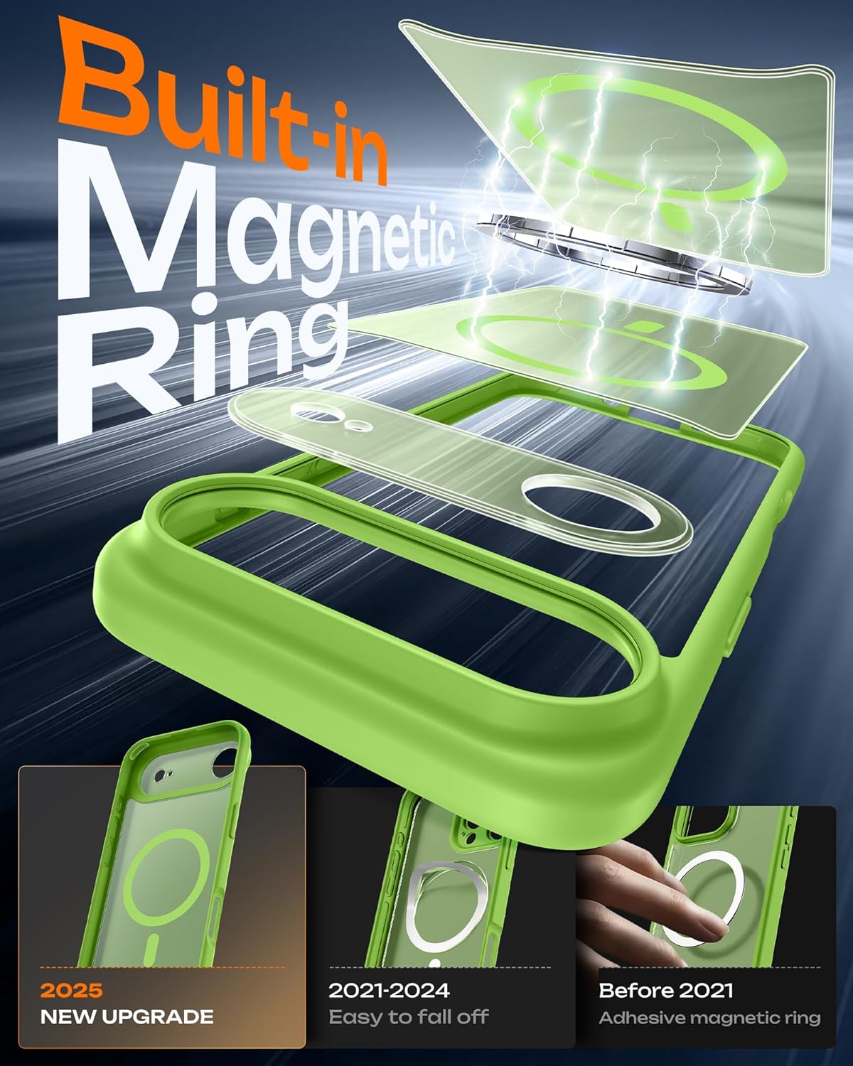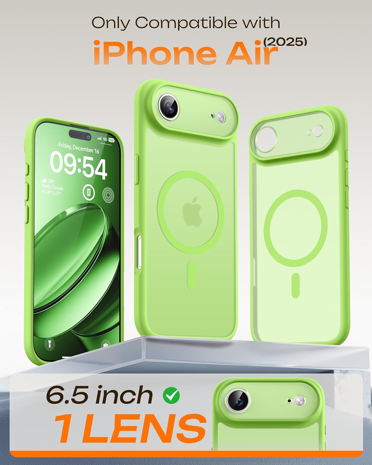 TOCOL Air Case за Magnetic 2025, Пълна защита на камерата, Вграден магнитен пръстен, Удароустойчив, Устойчив на надраскване, Прозрачен матов калъф за мобилен телефон Air Case 6.6 инча, Зелен