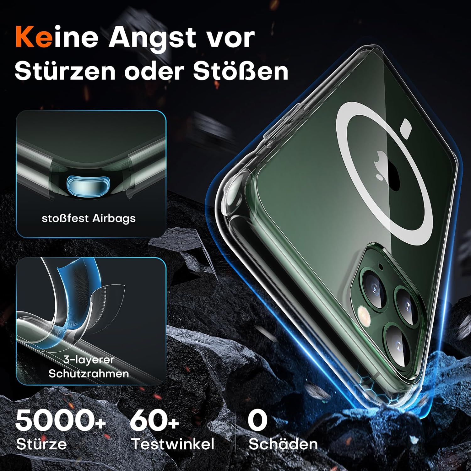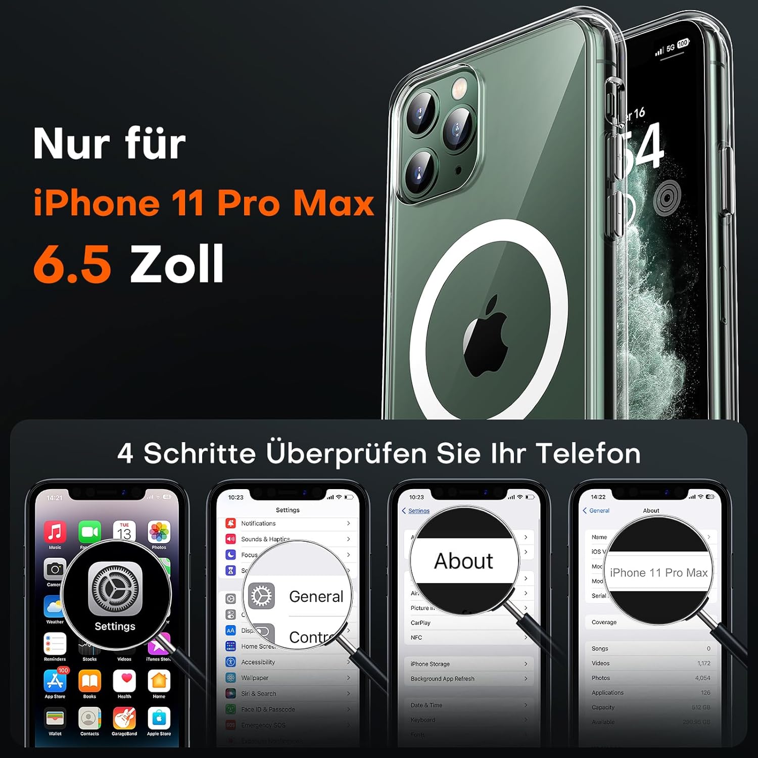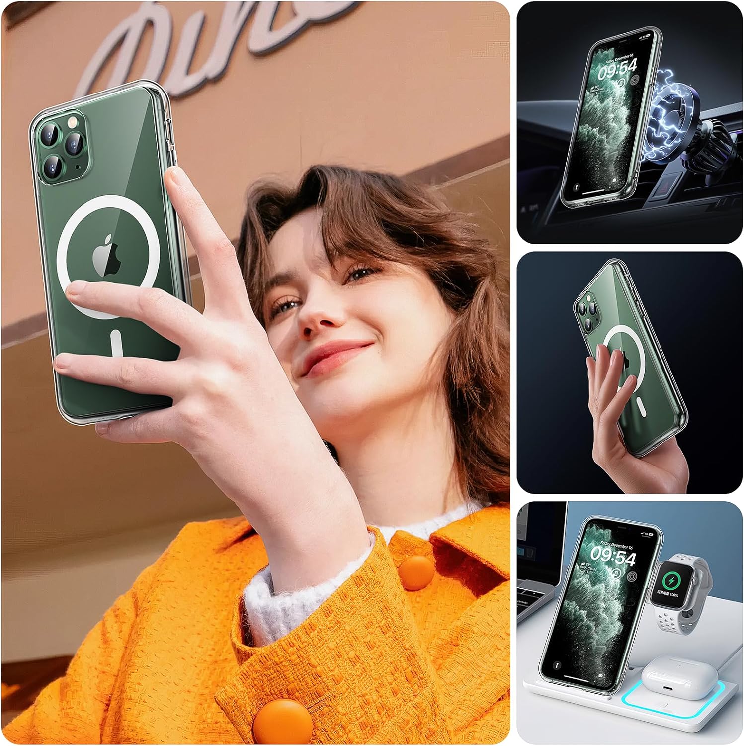 TOCOL Калъф за iPhone 11 Pro Max с Magsafe, никога не пожълтява, удароустойчив, против пръстови отпечатъци, устойчив на надраскване, неплъзгащ се, магнитен калъф за мобилен телефон за iPhone 11 Pro Max, прозрачен