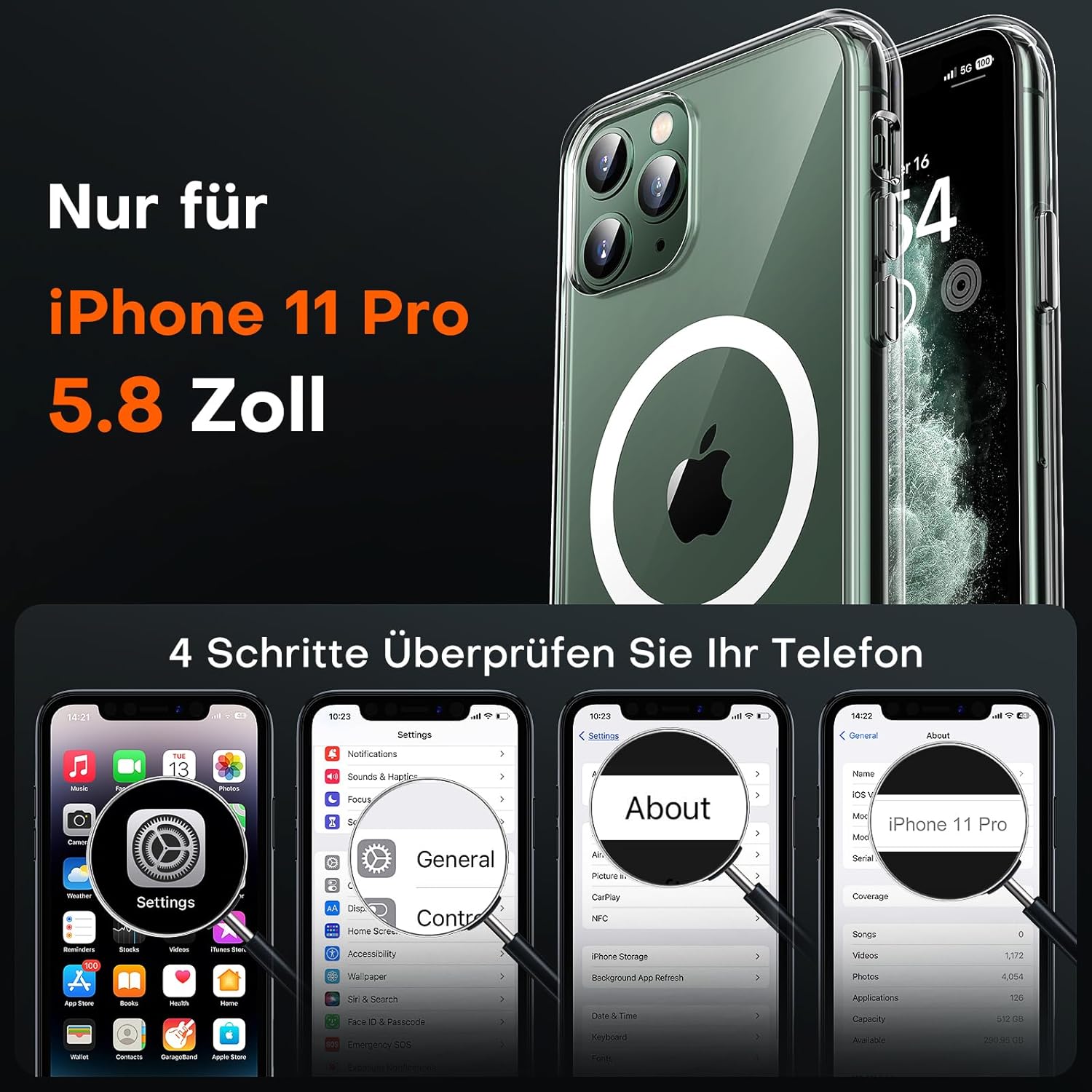 TOCOL Калъф за iPhone 11 Pro с Magsafe, Непожълтяващ, Удароустойчив, Против Отпечатъци от Пръсти, Устойчив на Надраскване, Неплъзгащ се, Магнитен Калъф за Мобилен Телефон за iPhone 11 Pro, Прозрачен
