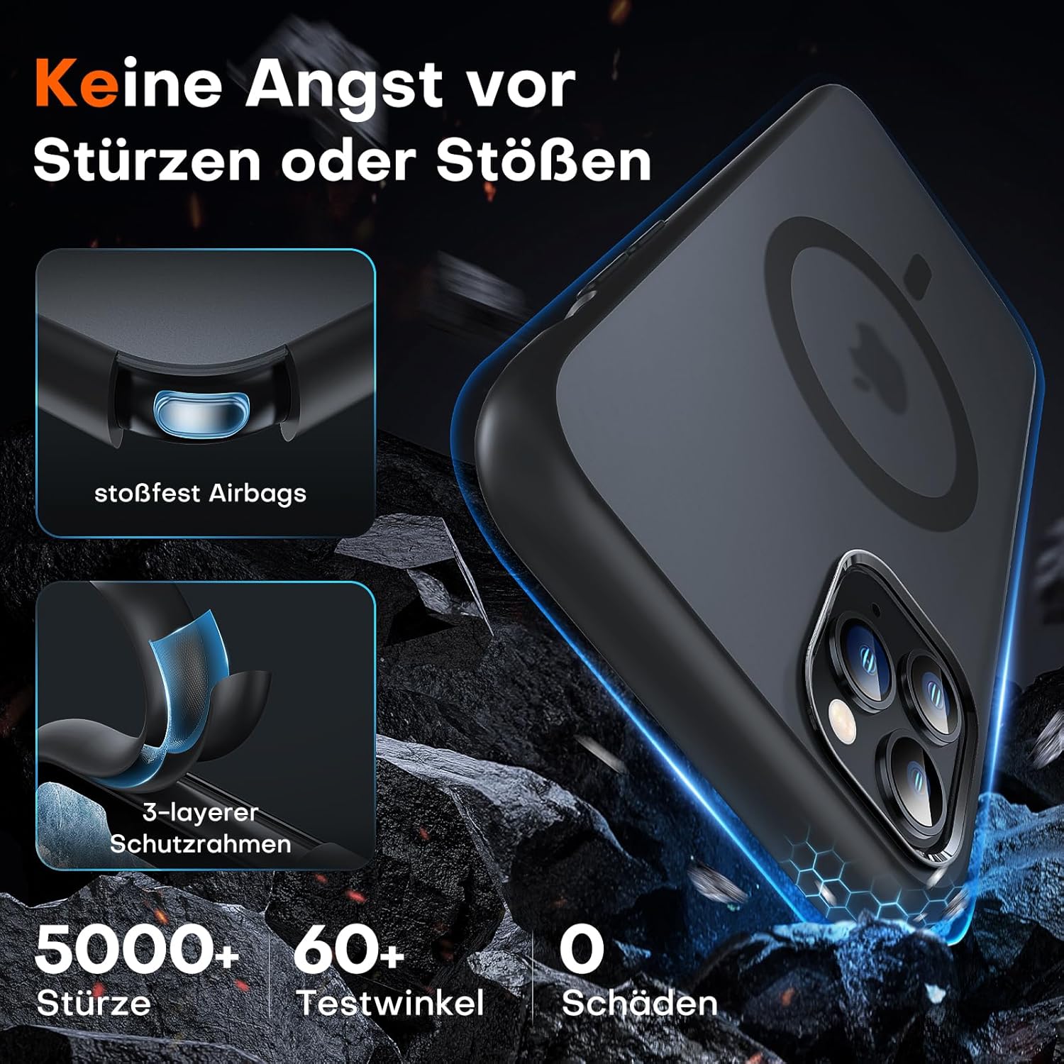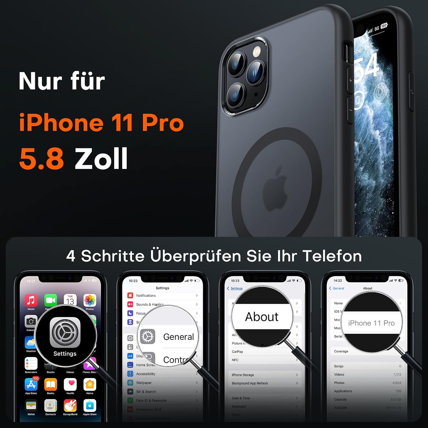 TOCOL Калъф за iPhone 11 Pro с Magsafe покритие, Удароустойчив, Против пръстови отпечатъци, Устойчив на надраскване, Прозрачен гръб, Неплъзгащ се, Матов, Магнитен Калъф за Мобилен Телефон за iPhone 11 Pro, Черен
