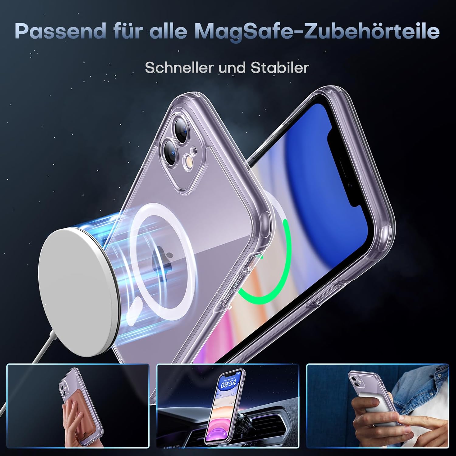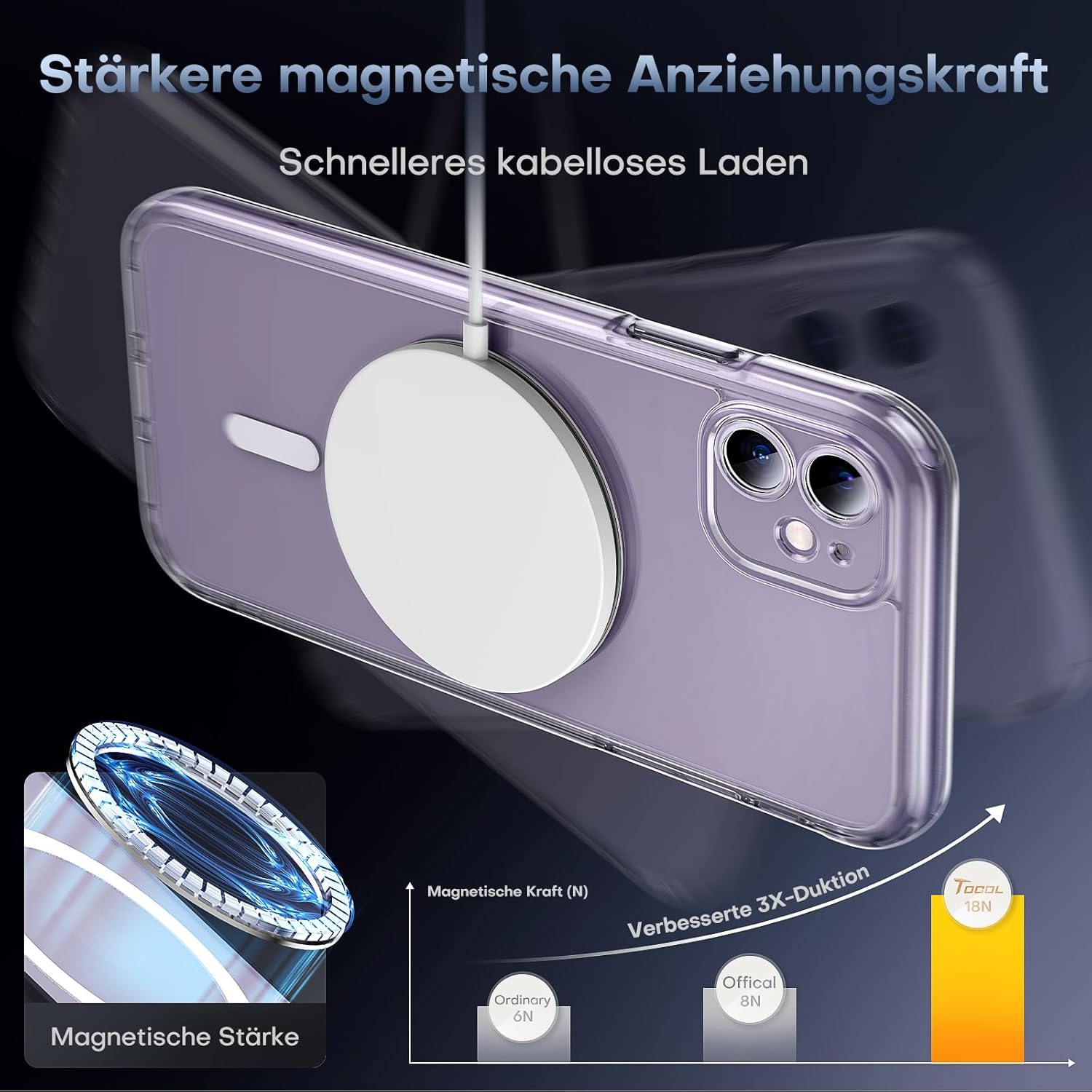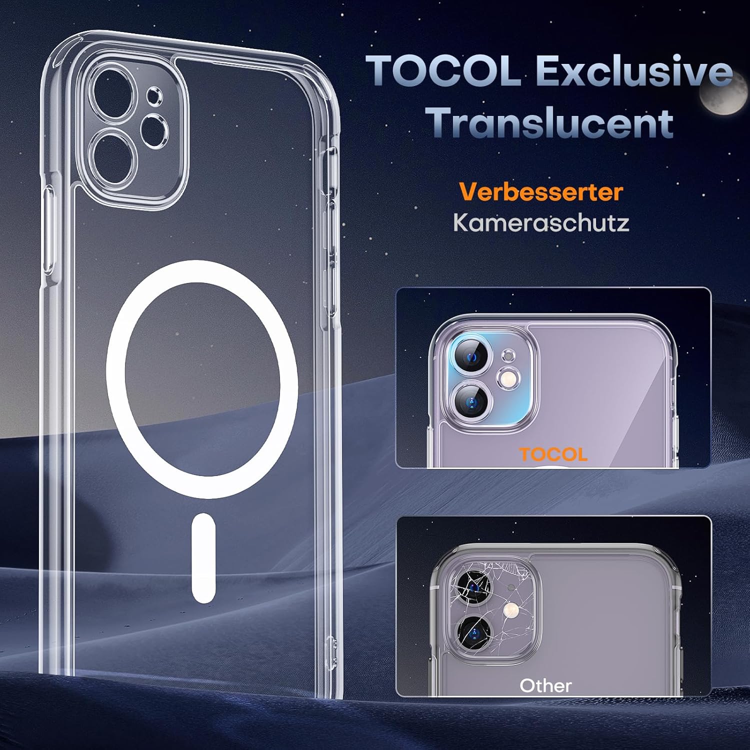 TOCOL Калъф за iPhone 11 с Magsafe, пълна защита на камерата, никога не пожълтява, удароустойчив, устойчив на надраскване, магнитен калъф за мобилен телефон за iPhone 11, прозрачен