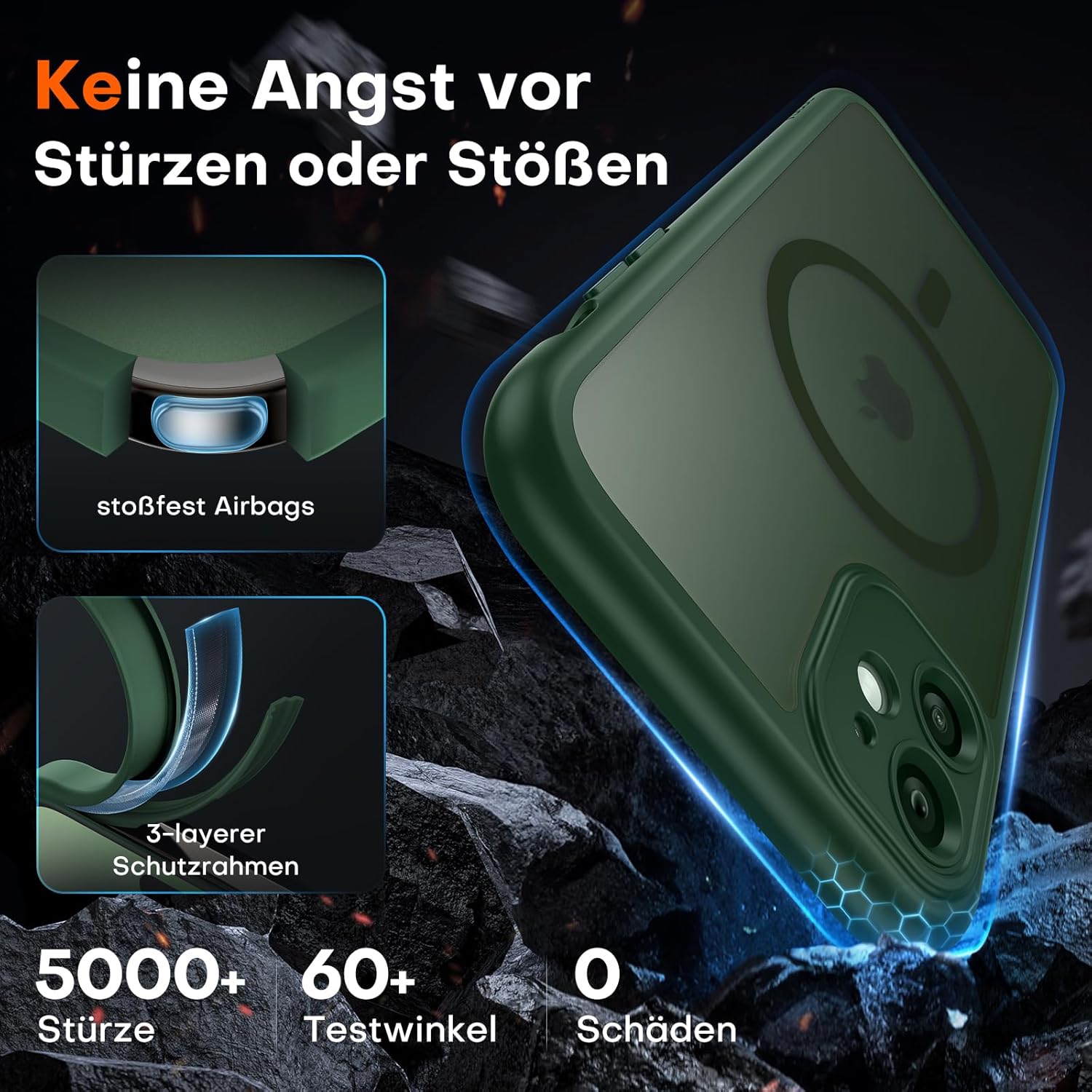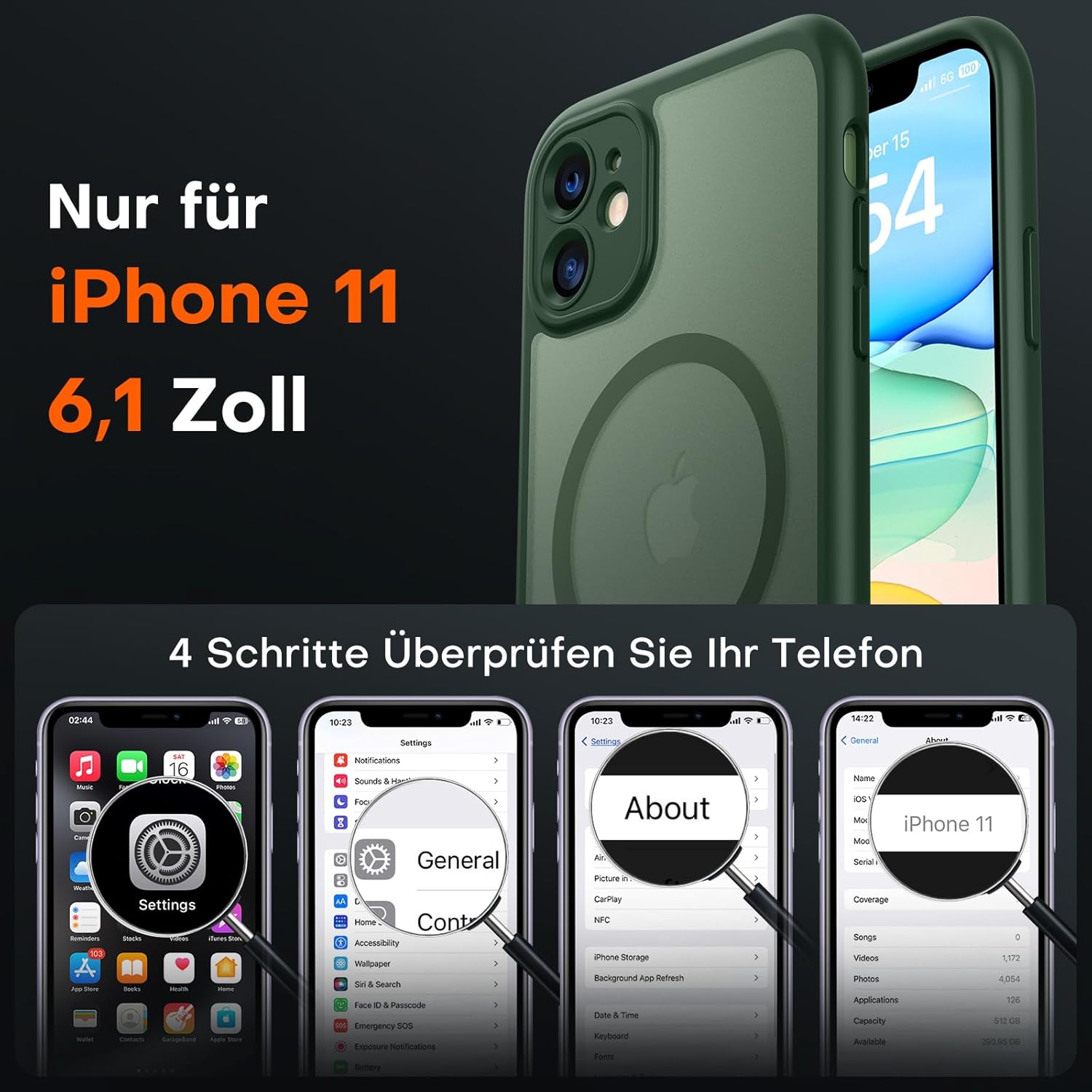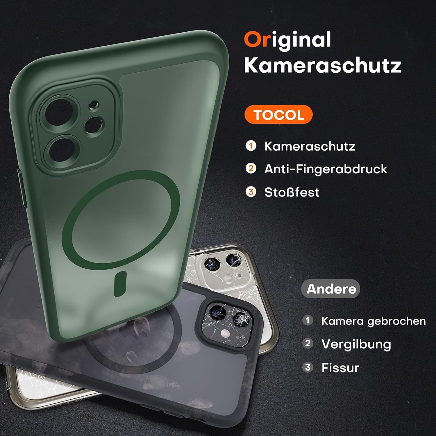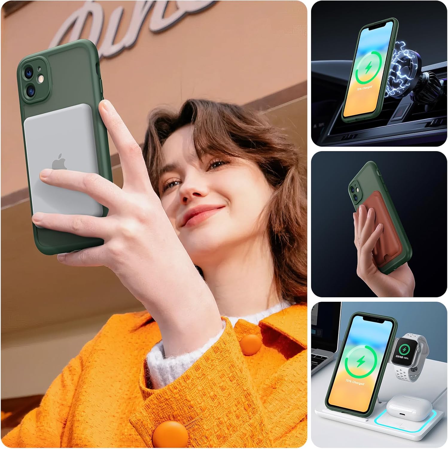 TOCOL Калъф за iPhone 11 с Magsafe, пълна защита на камерата, удароустойчив, устойчив на надраскване, прозрачен гръб, магнитен калъф за мобилен телефон за iPhone 11, алпийско зелено