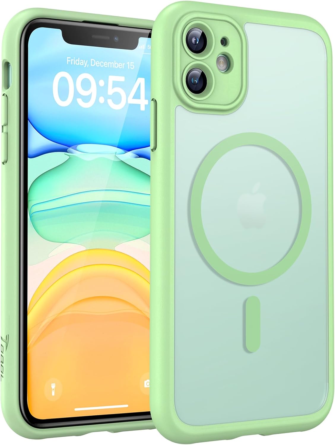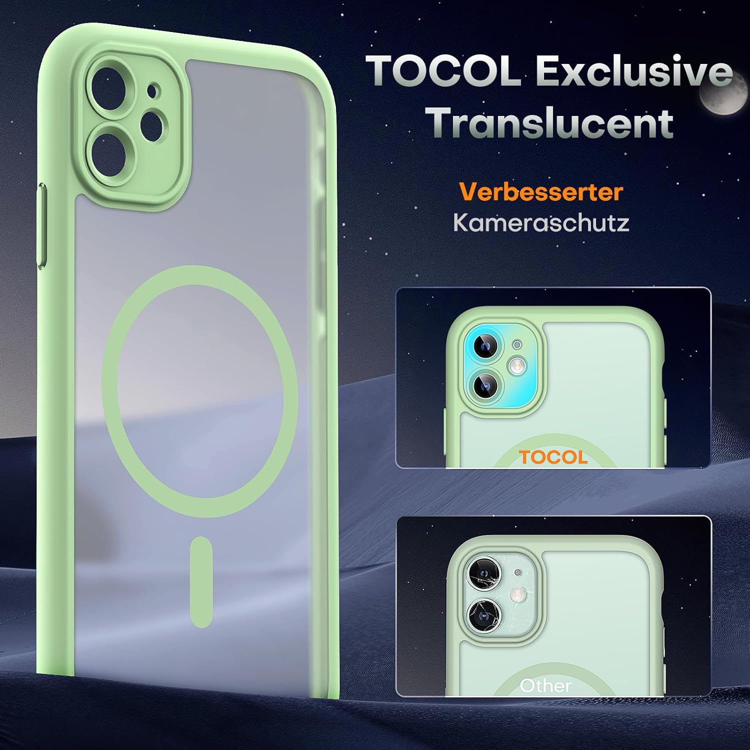 TOCOL Калъф за iPhone 11 с Magsafe, пълна защита на камерата, удароустойчив, устойчив на надраскване, прозрачен гръб, магнитен калъф за мобилен телефон за iPhone 11, зелен